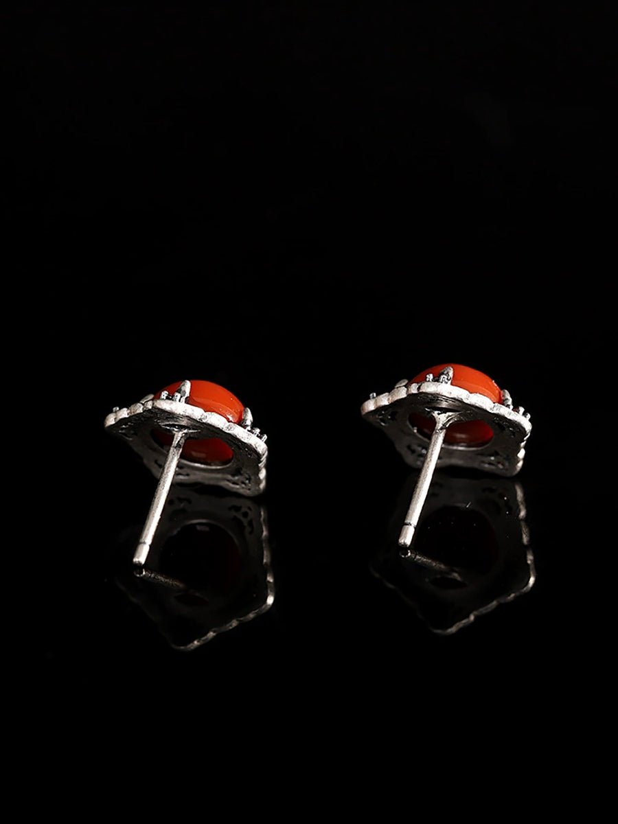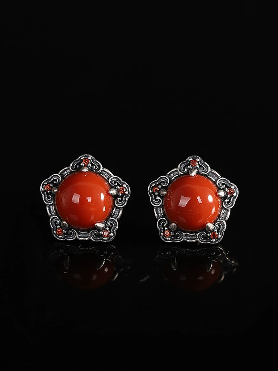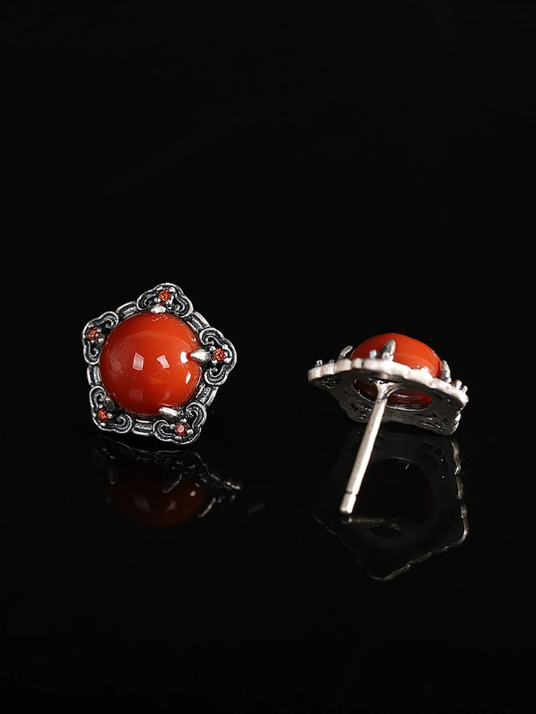 レディース ヴィンテージ S925シルバー レッドアゲート イヤリング