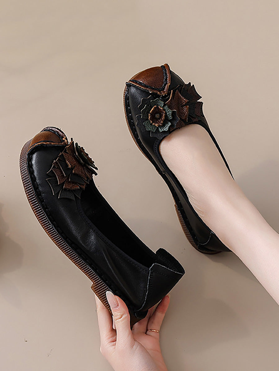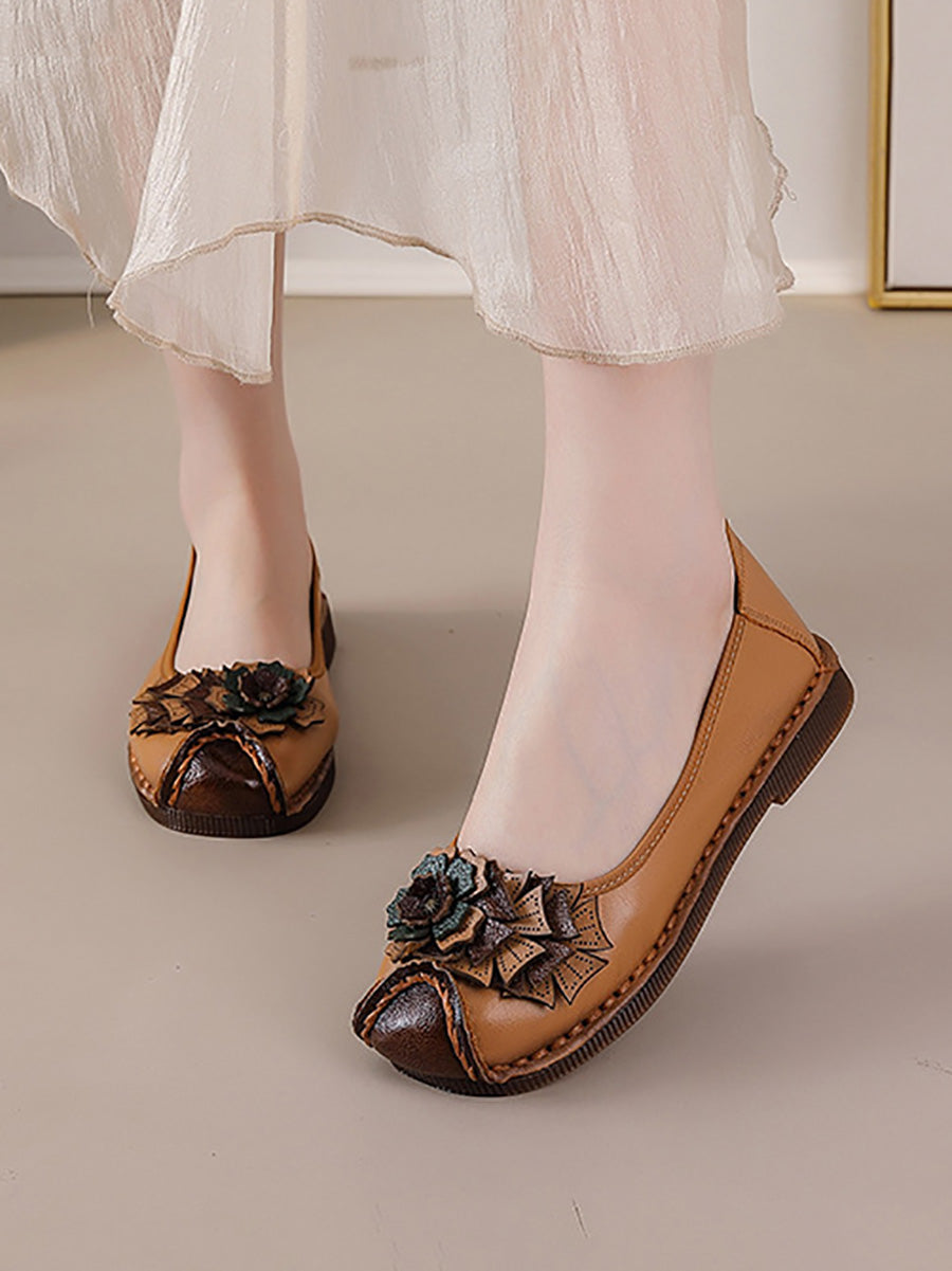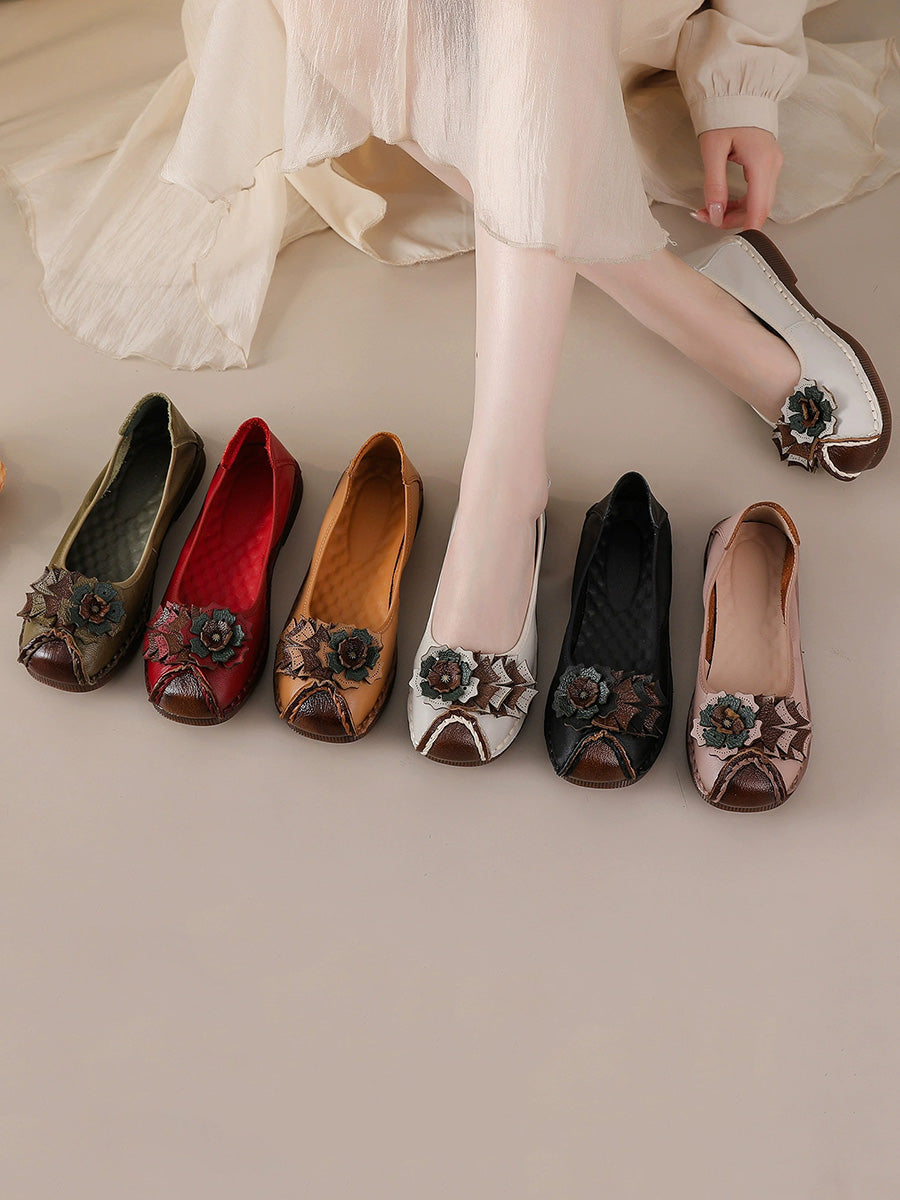 レディース ヴィンテージ ソフトレザー フラワー スプライス シューズ