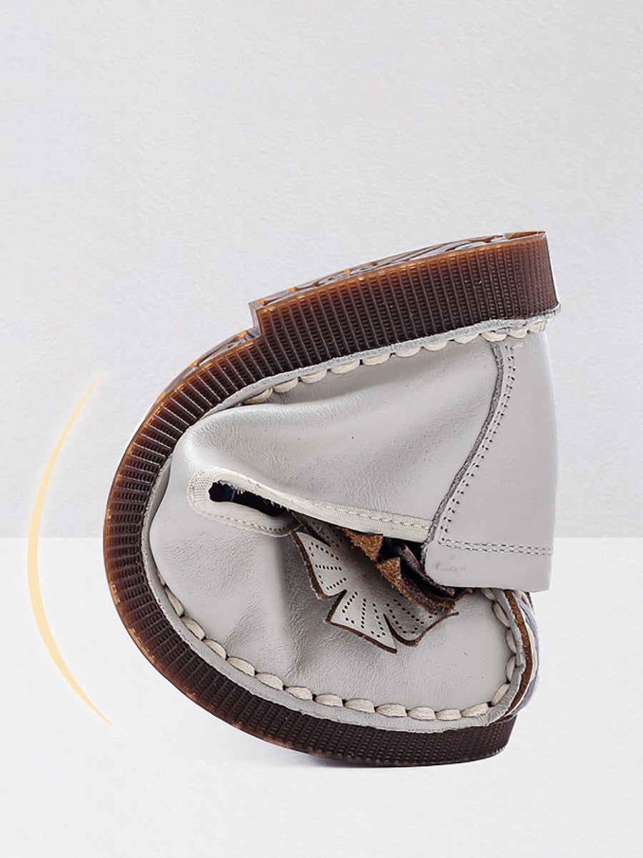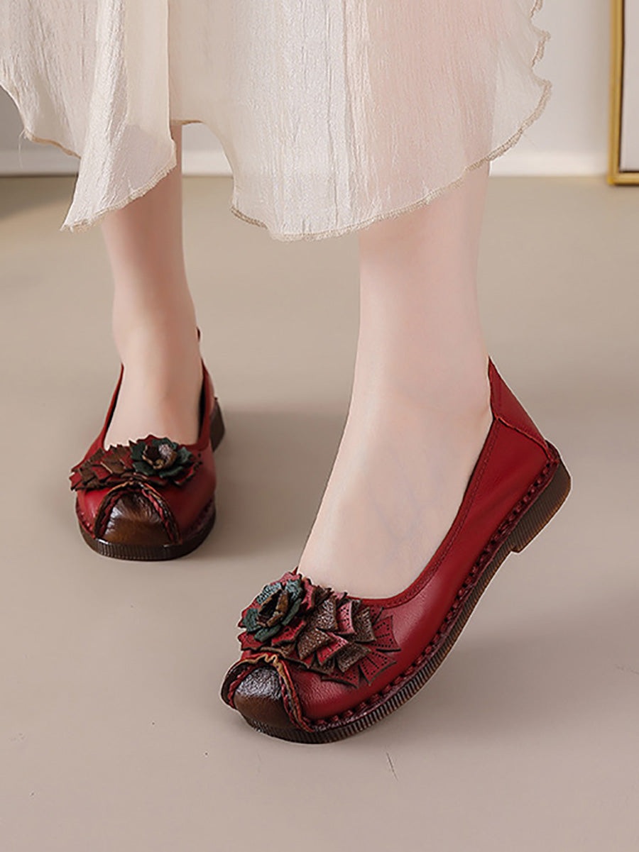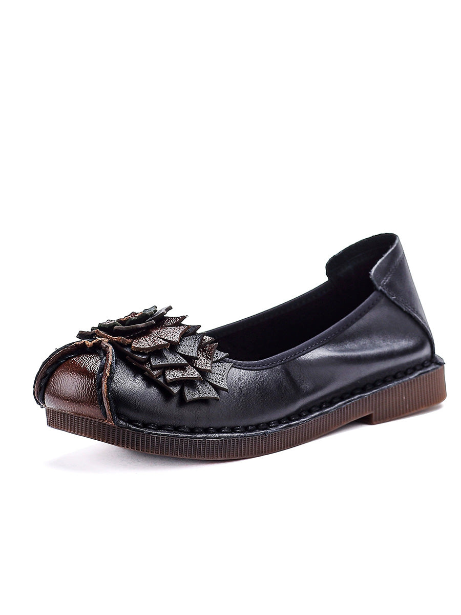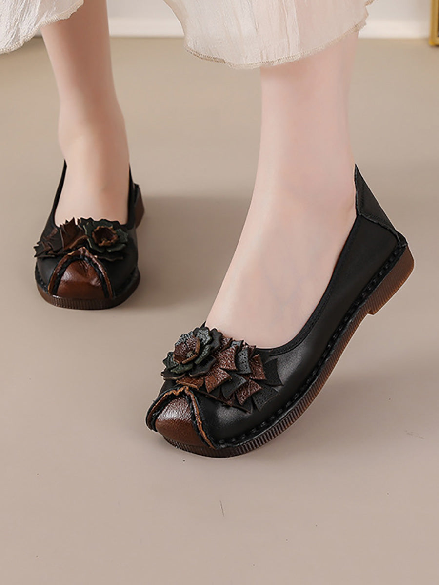 レディース ヴィンテージ ソフトレザー フラワー スプライス シューズ