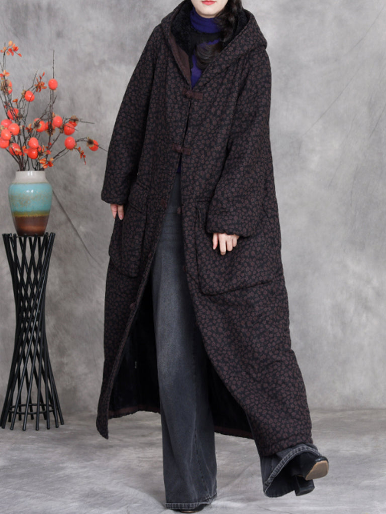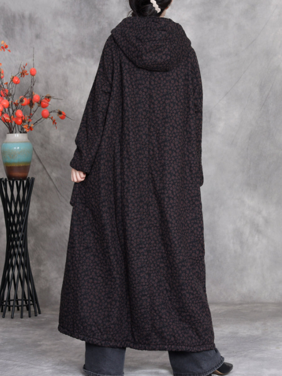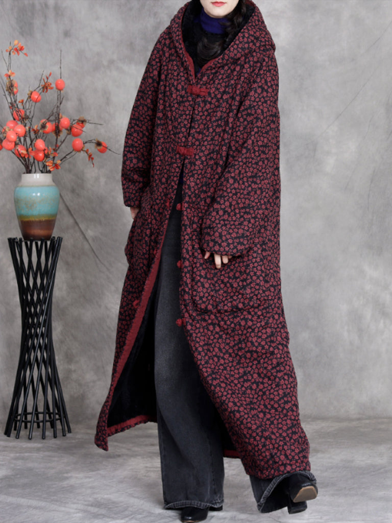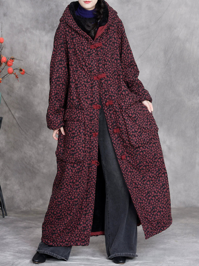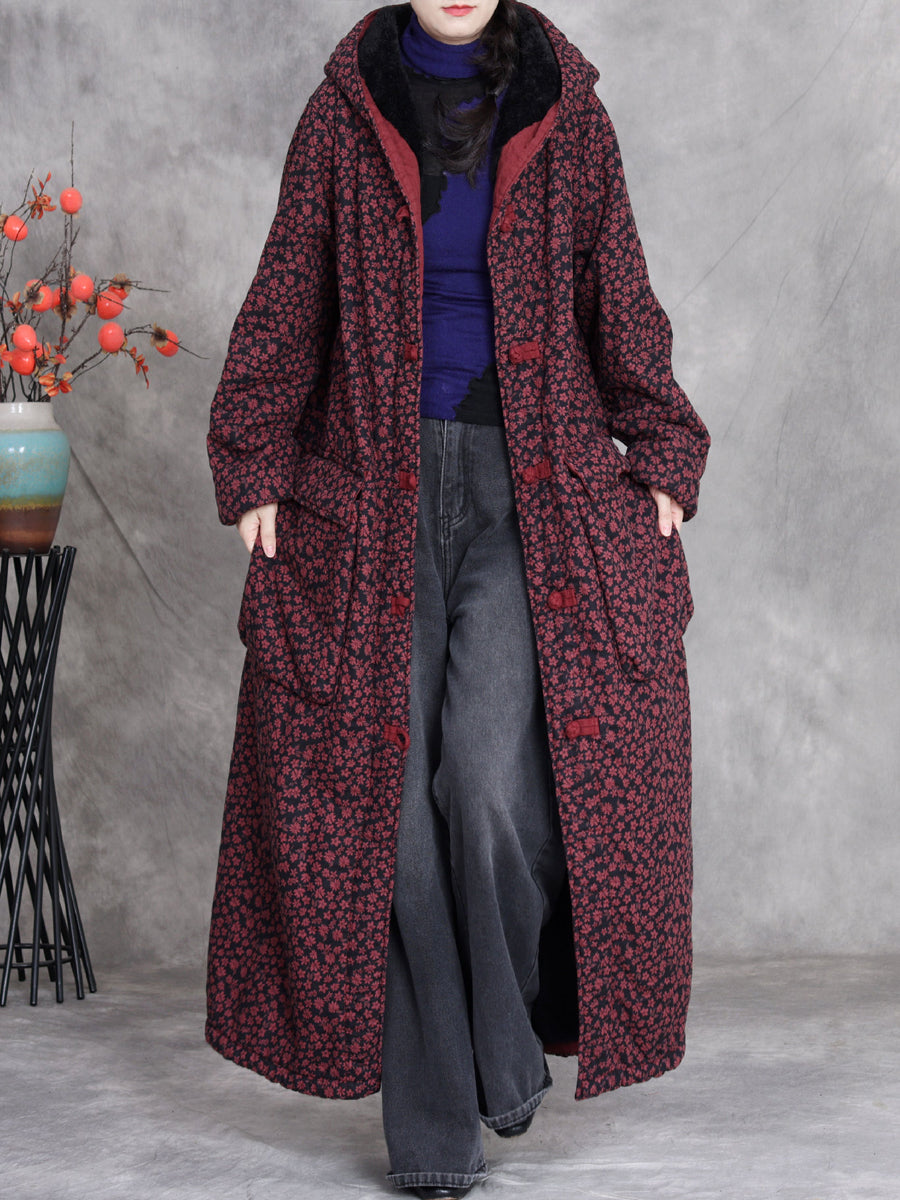 レディース ヴィンテージ 冬 アーティスティック 花柄 フリース フード付きコート