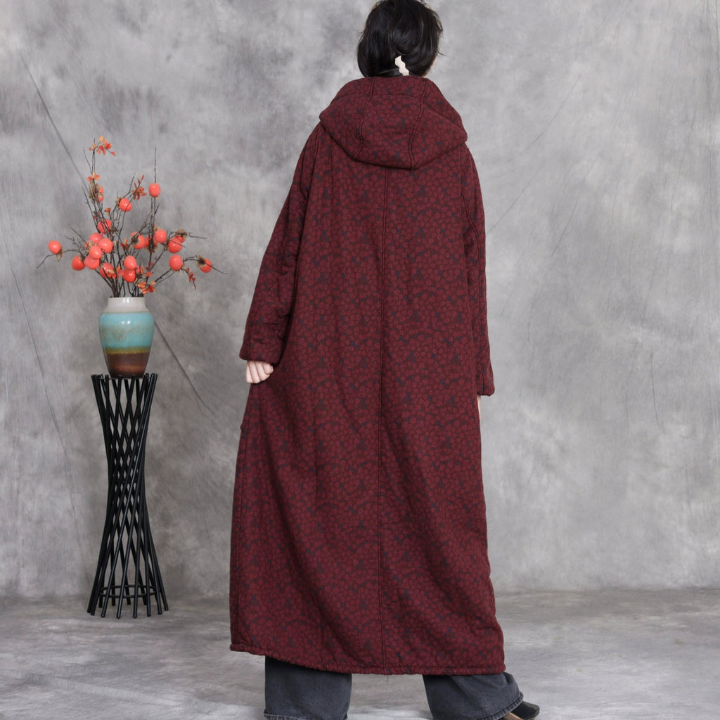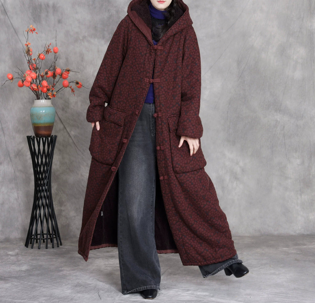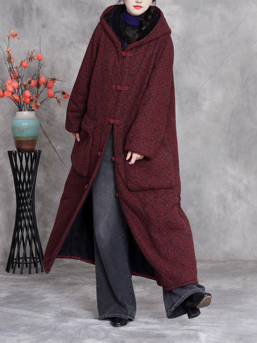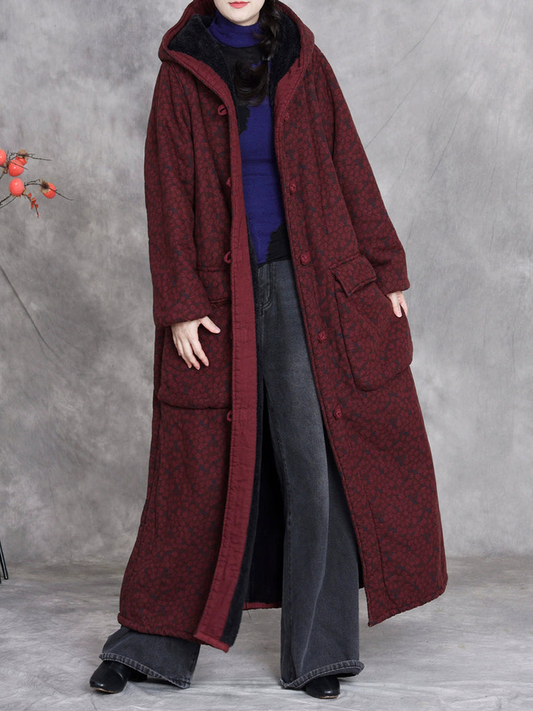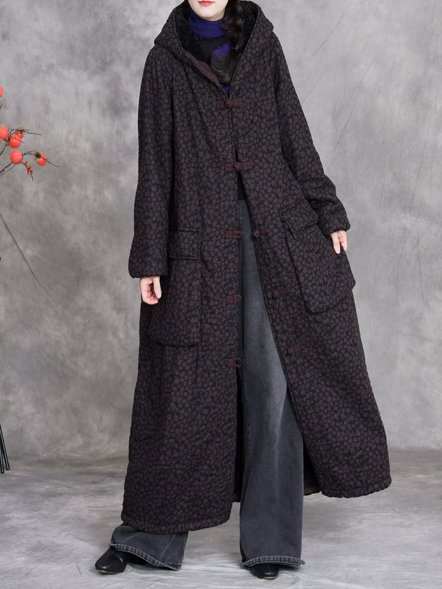 レディース ヴィンテージ 冬 アーティスティック 花柄 フリース フード付きコート