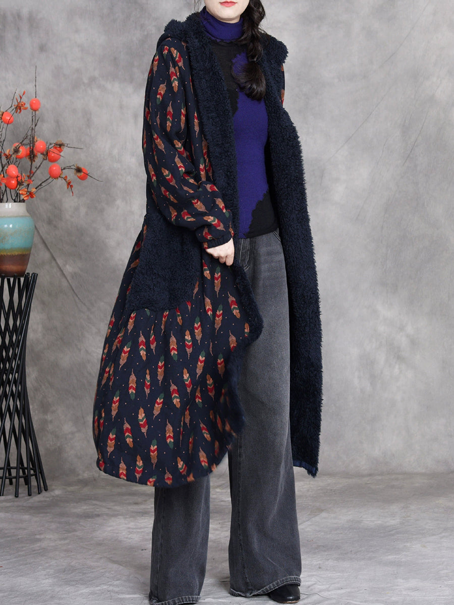 レディース ヴィンテージ 冬 フェザーフリース フード付きコート