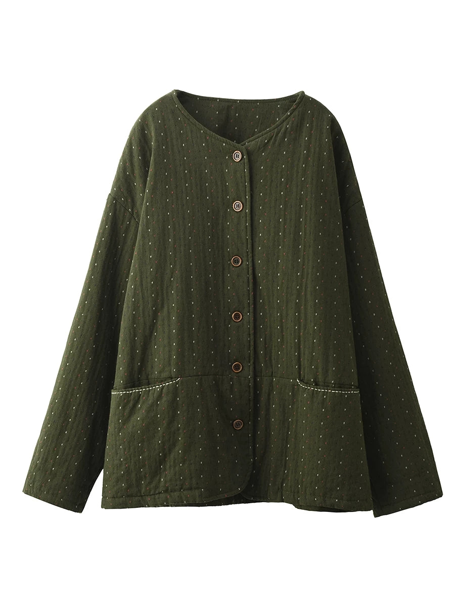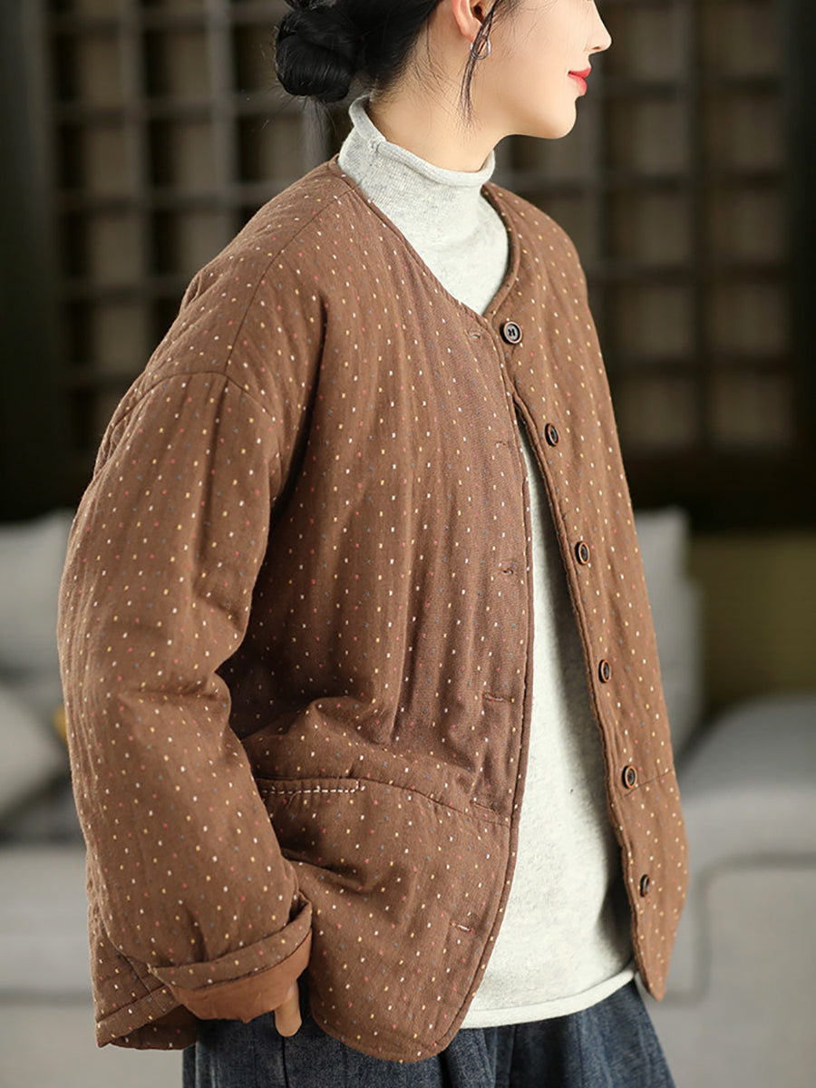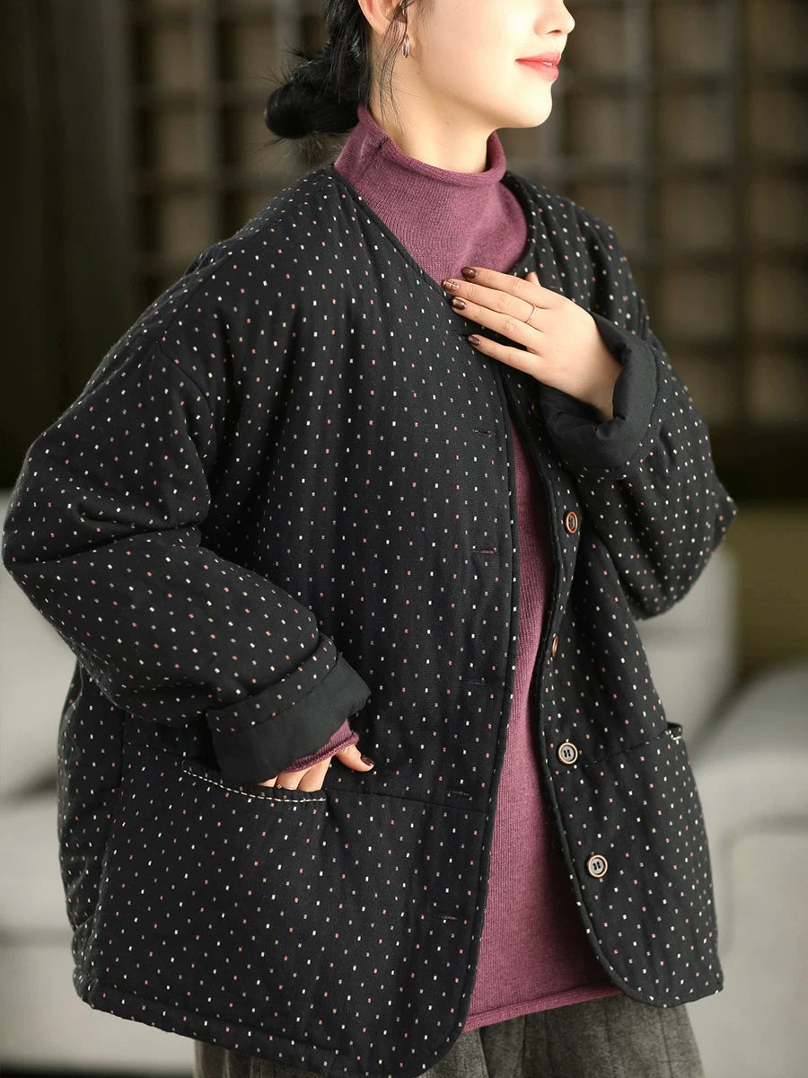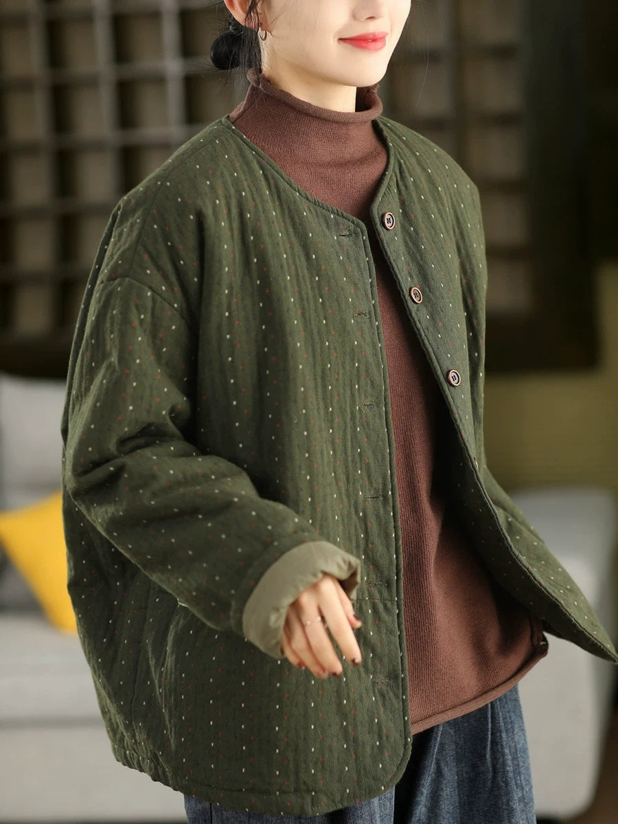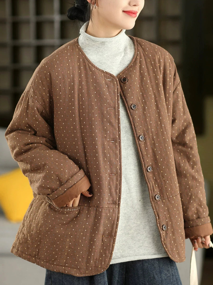 レディース 冬 アーティスティック ドット Oネック 100%コットン 中綿コート