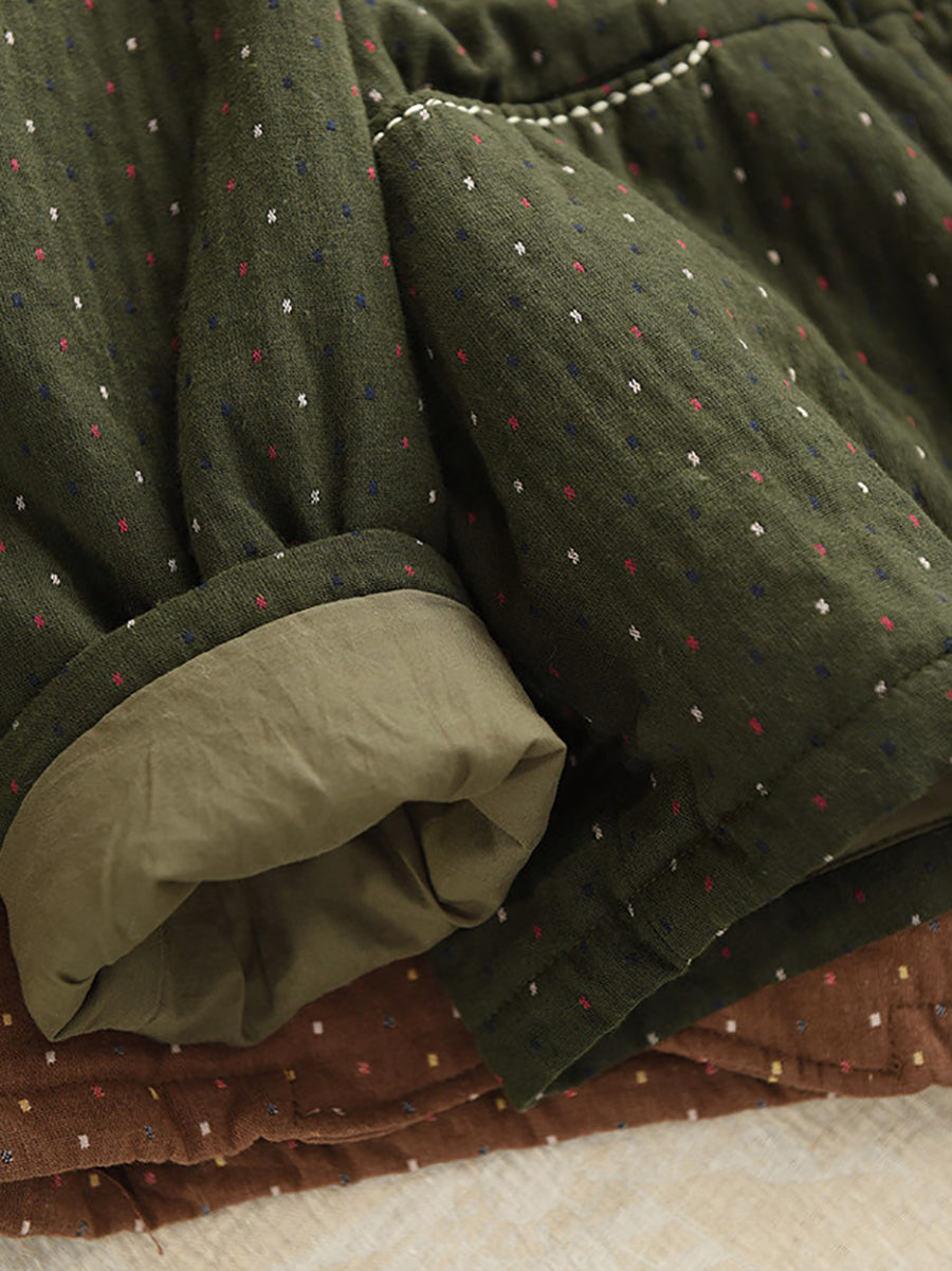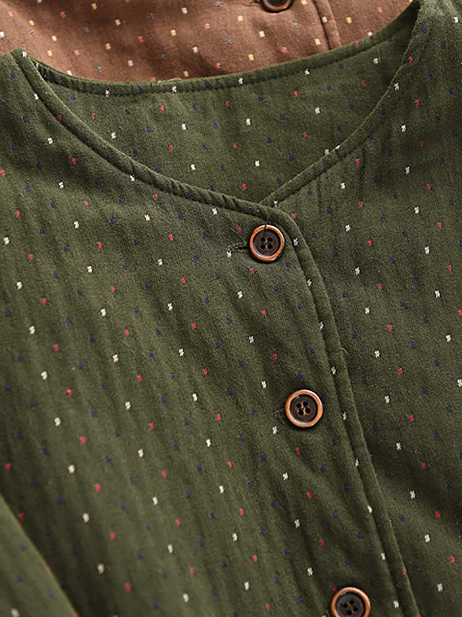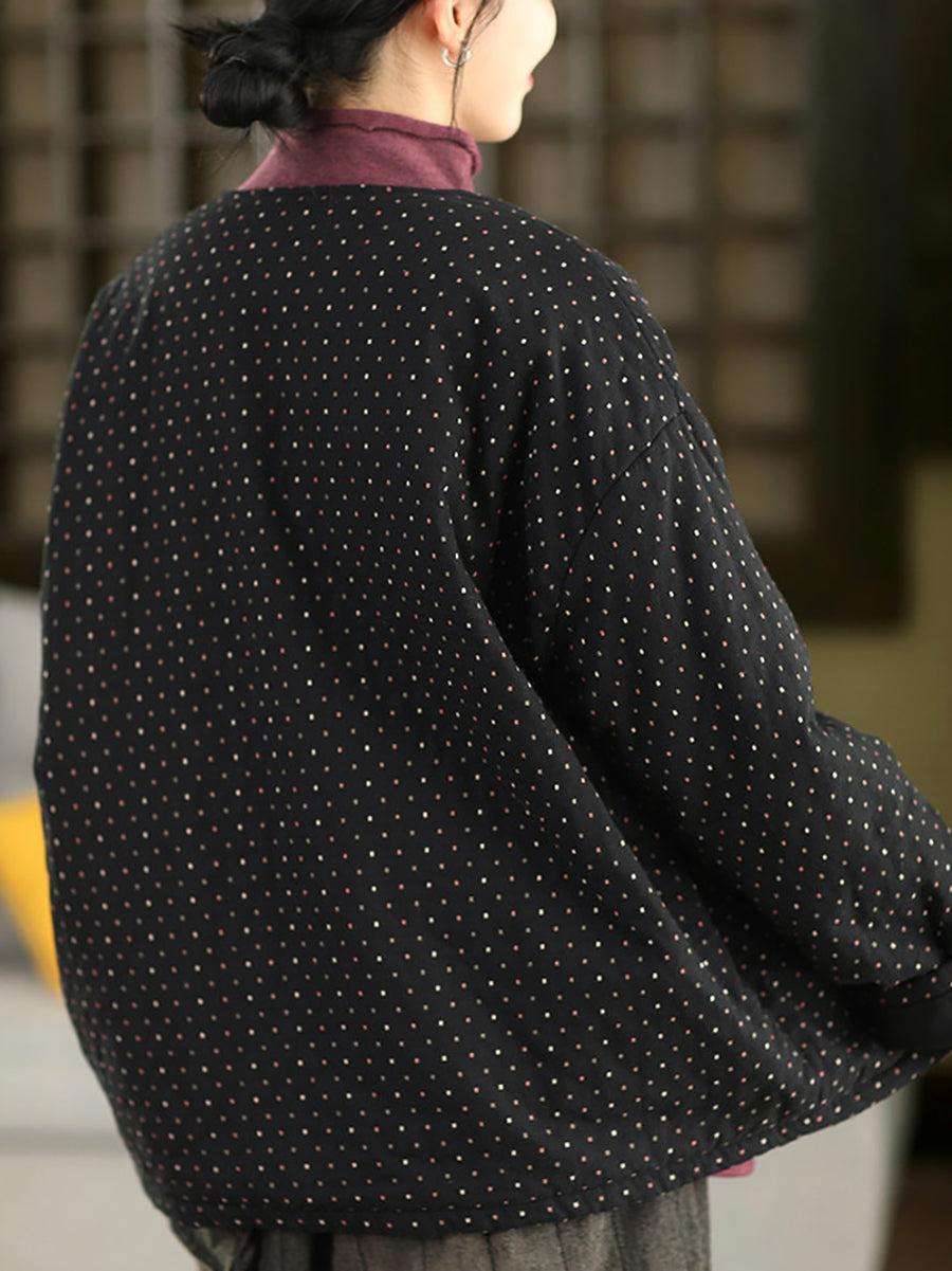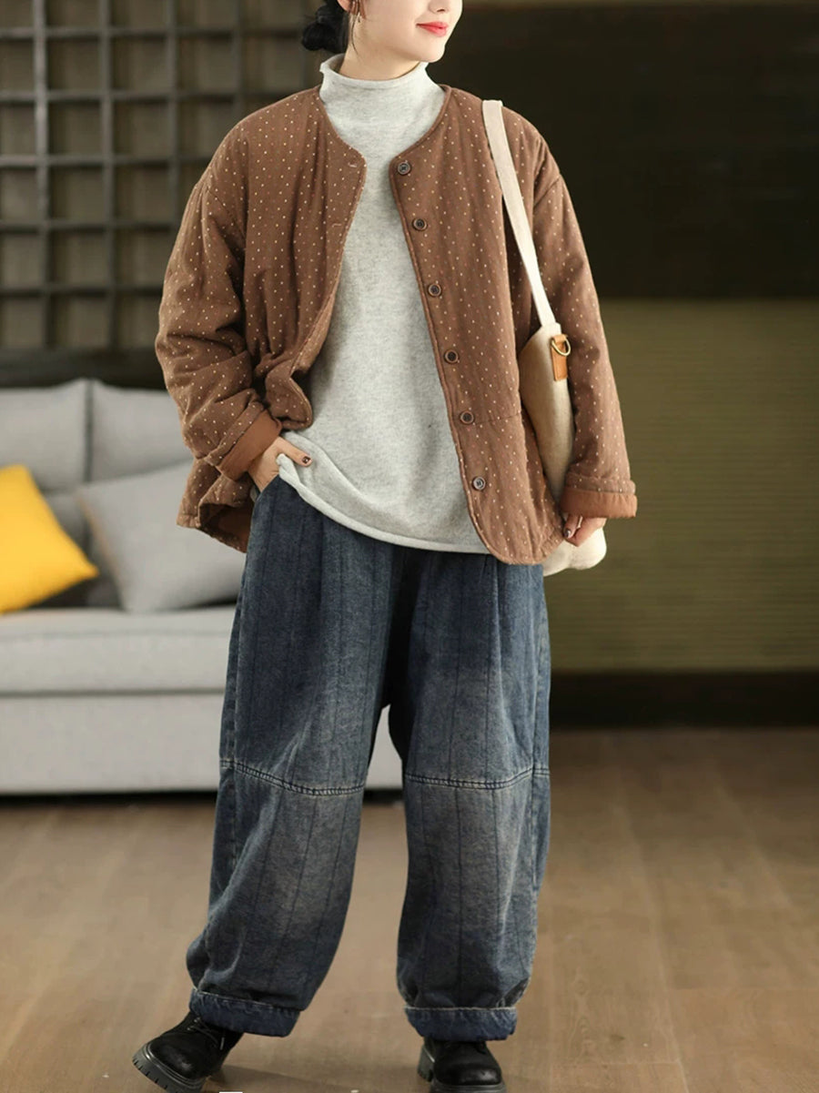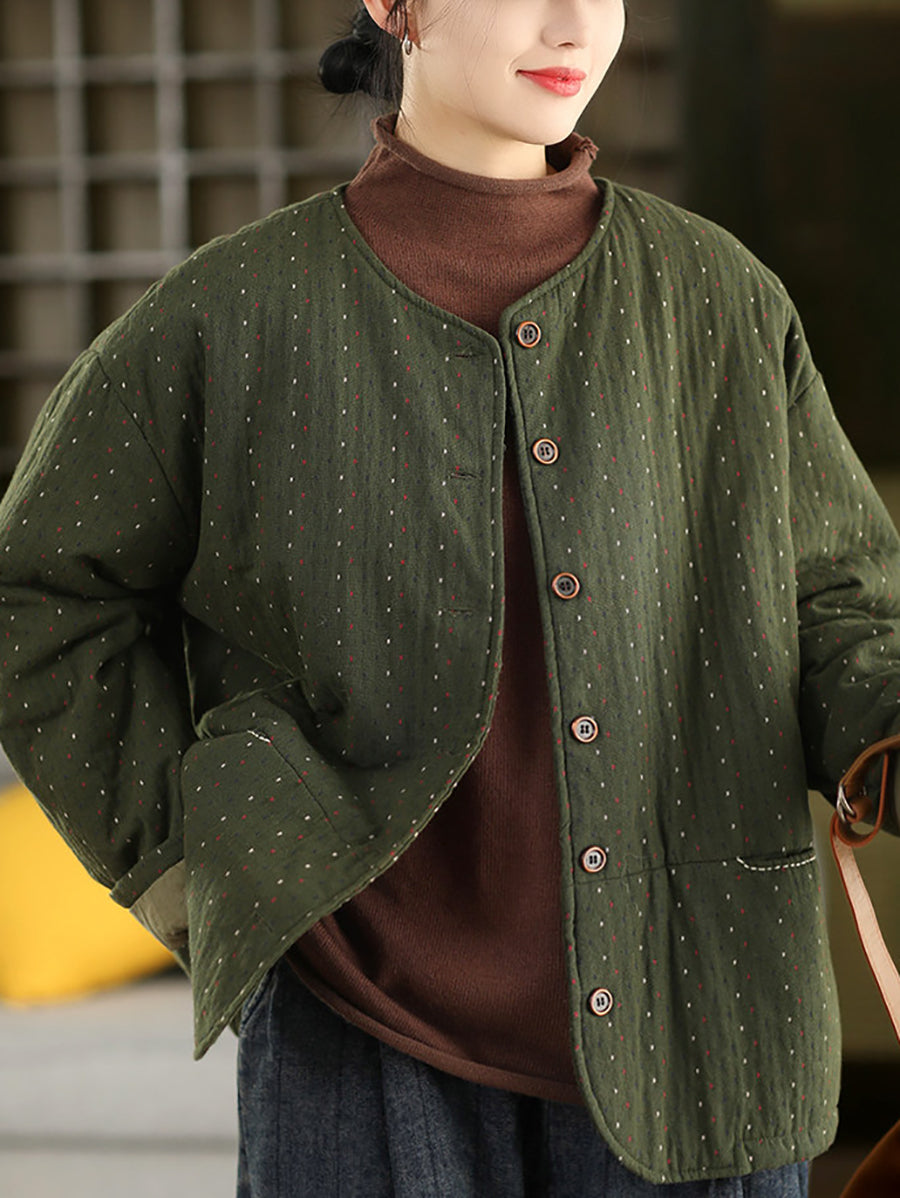 レディース 冬 アーティスティック ドット Oネック 100%コットン 中綿コート