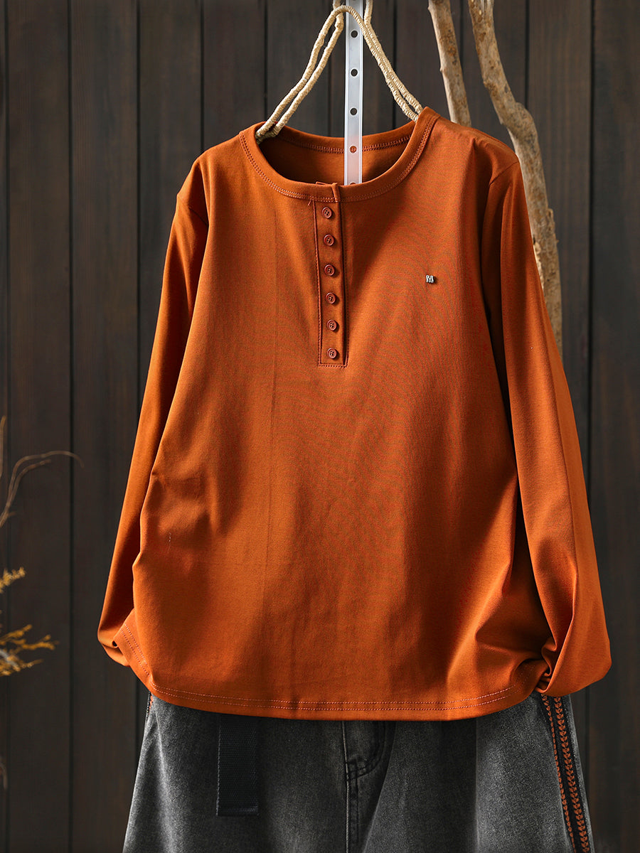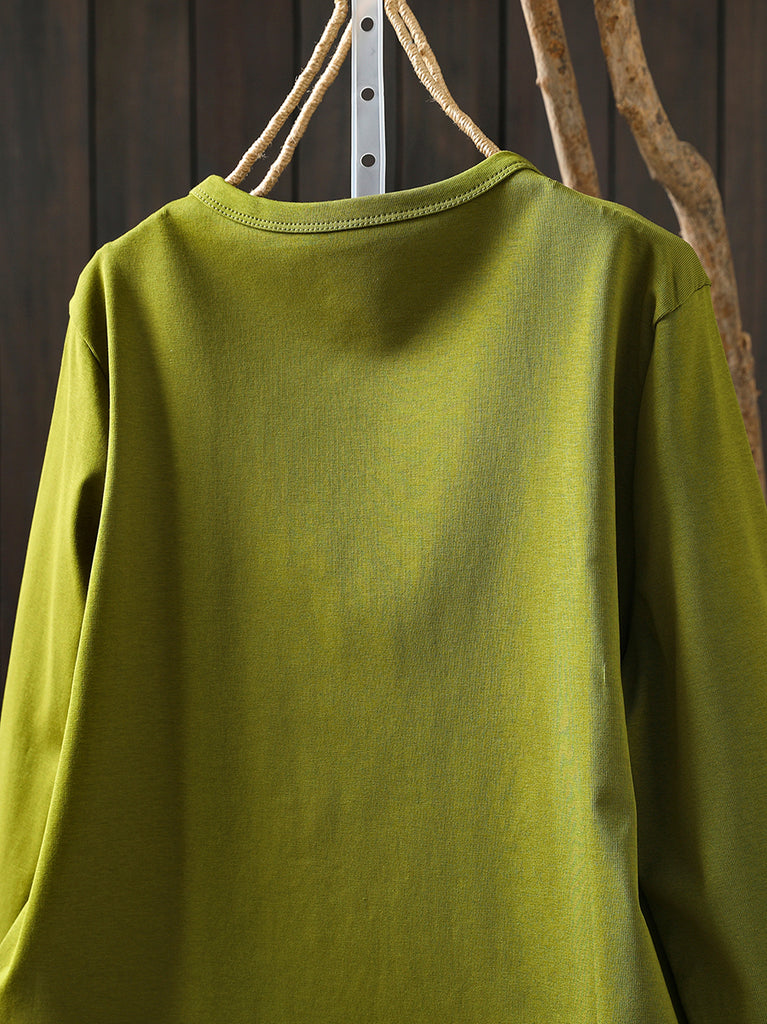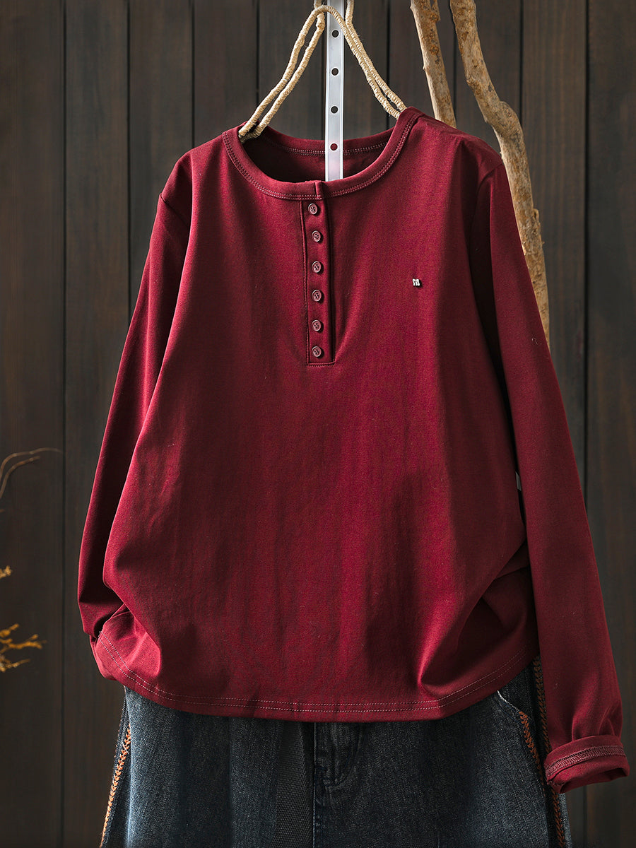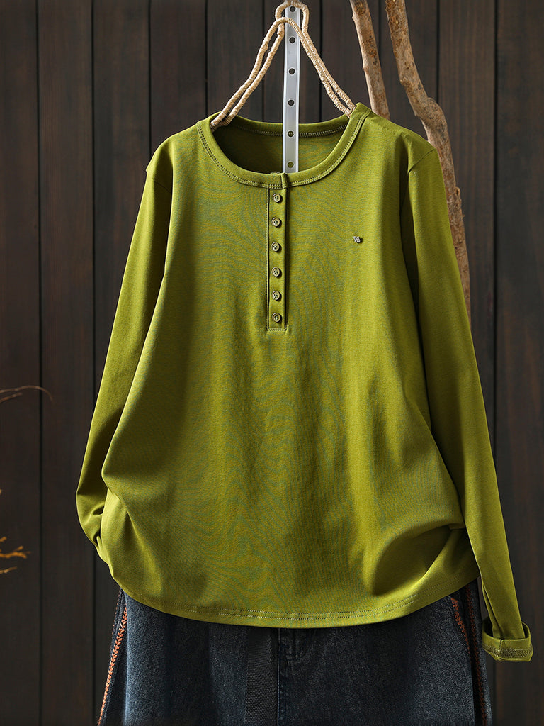 レディース 冬 アーティスティック ピュアカラー Oネック コットンブラウス