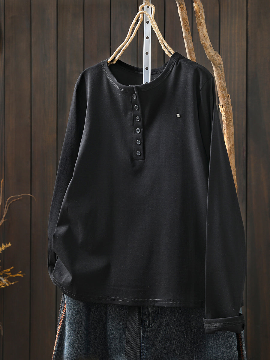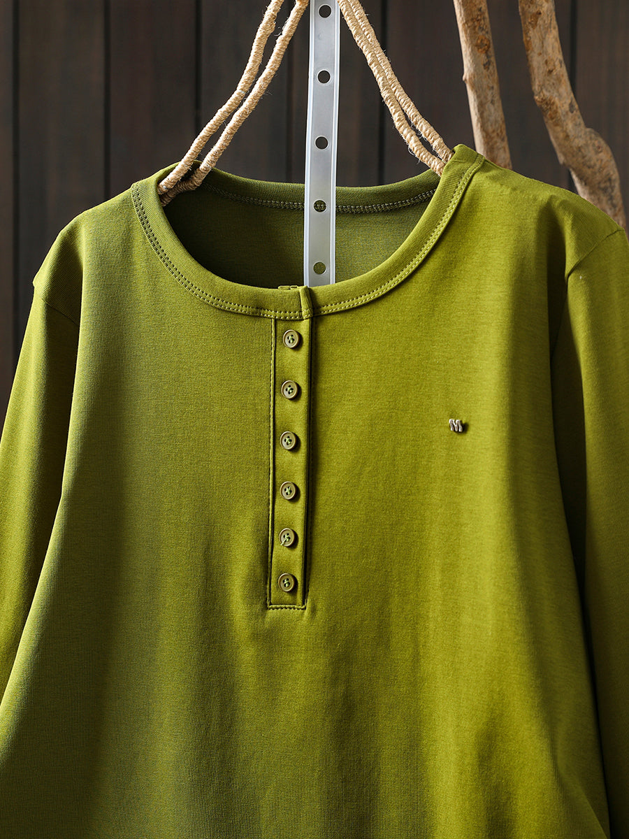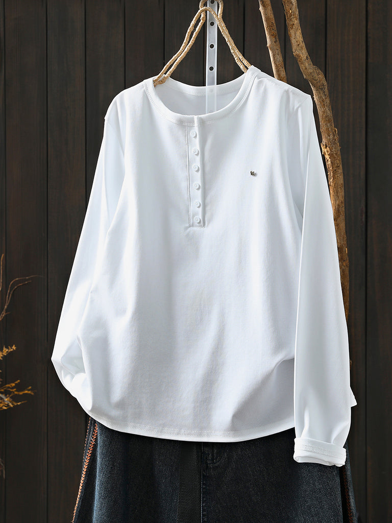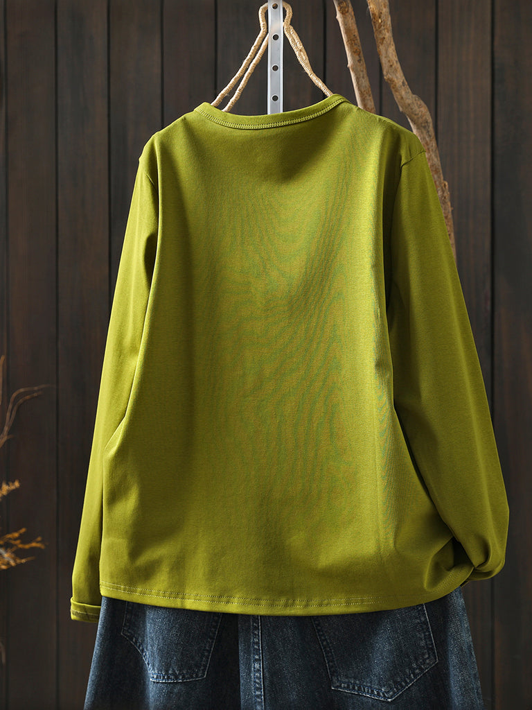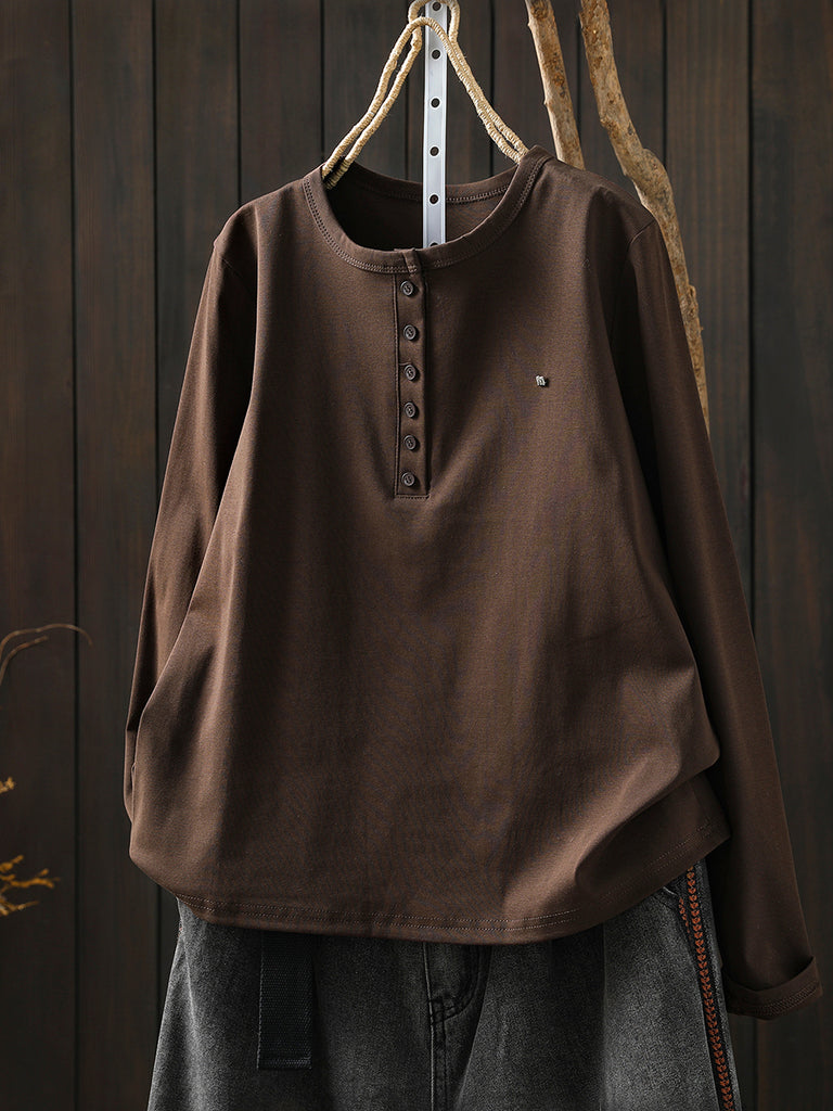 レディース 冬 アーティスティック ピュアカラー Oネック コットンブラウス