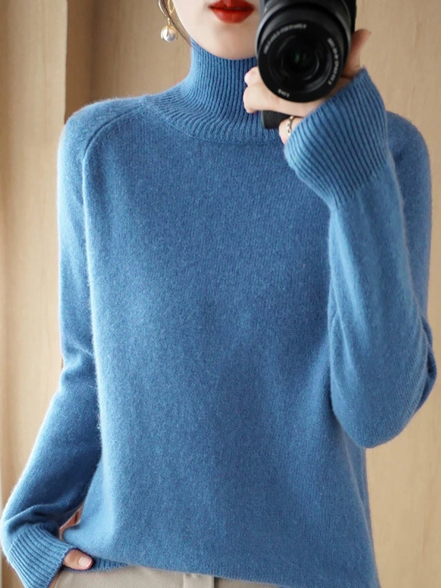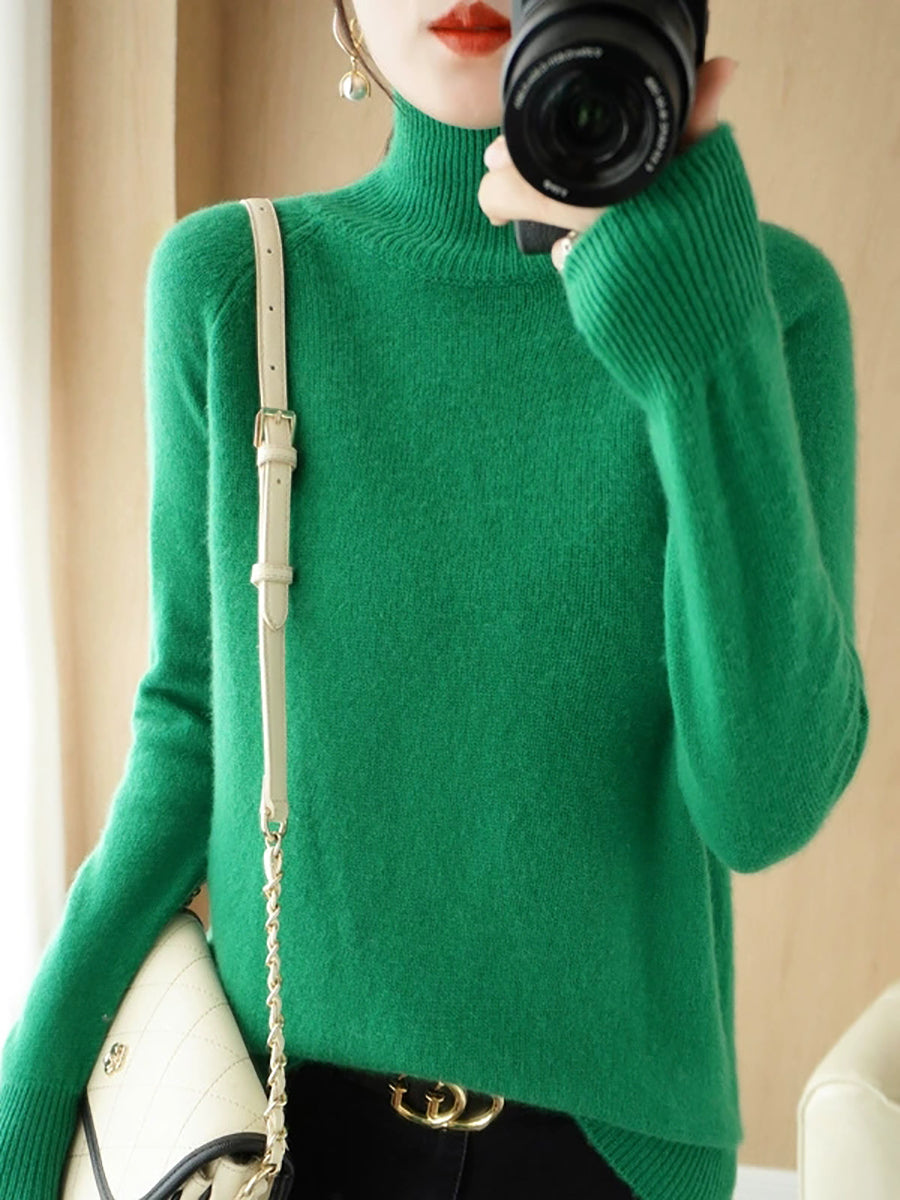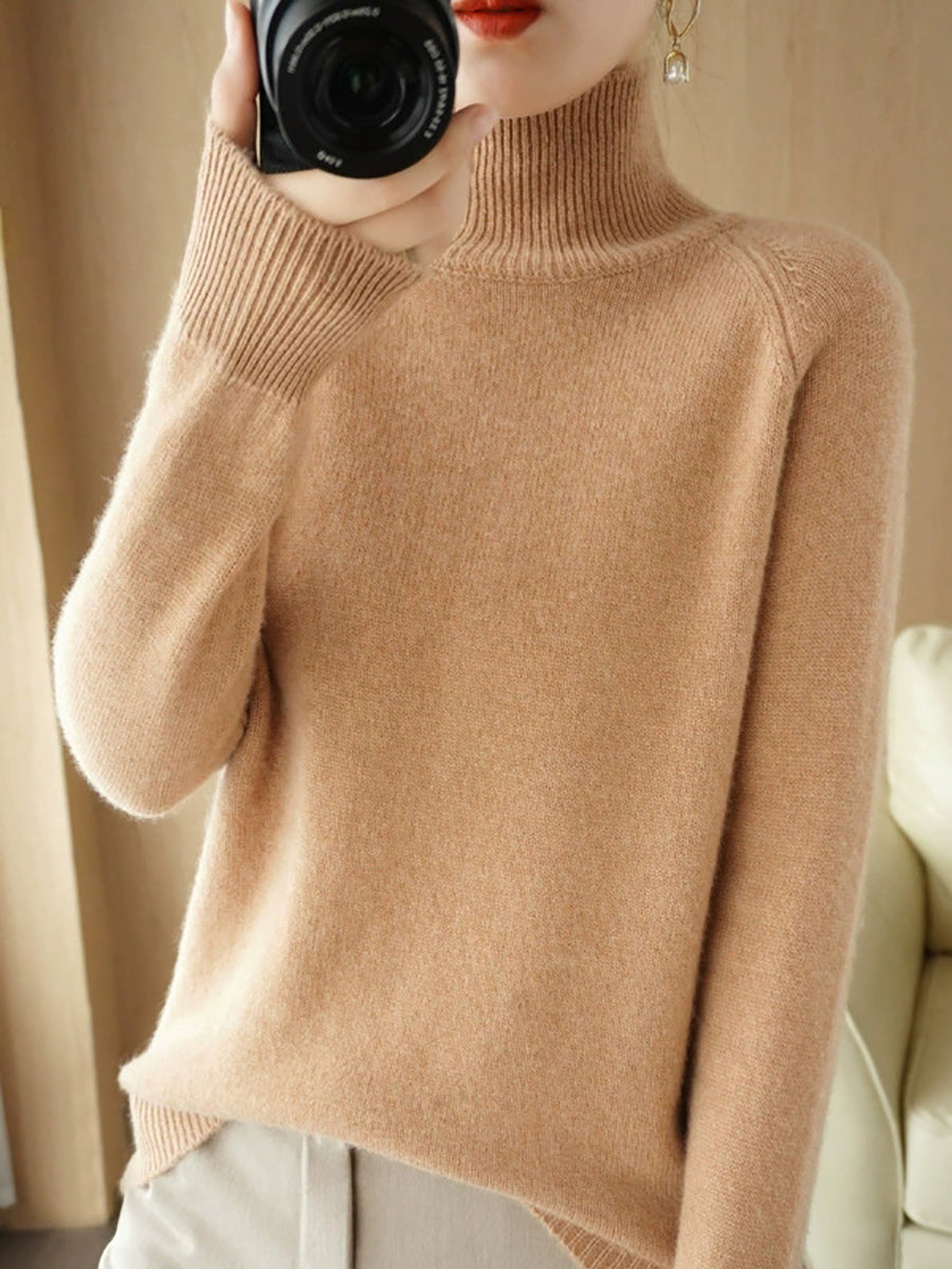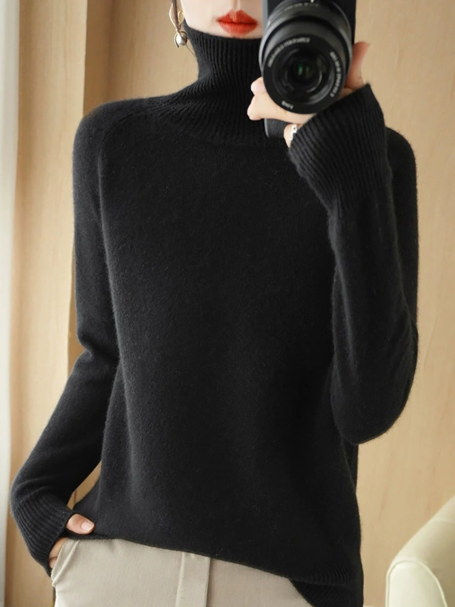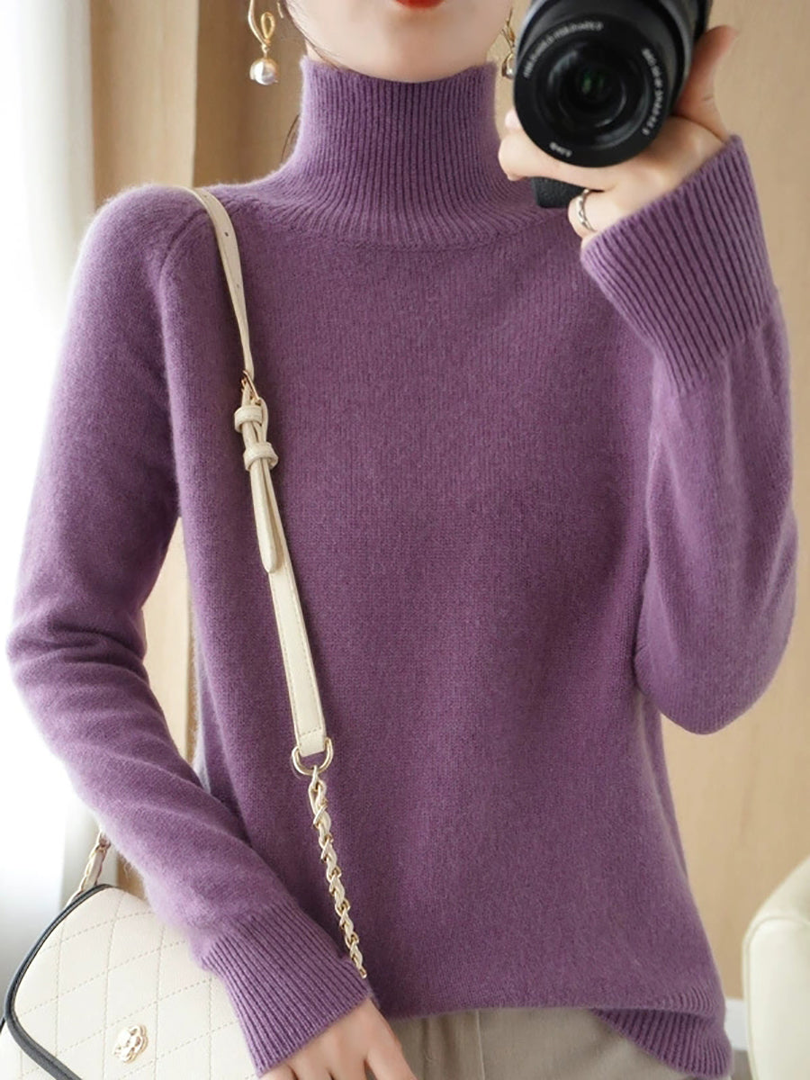 レディース 冬 アーティスティック ピュアカラー タートルネック セーター