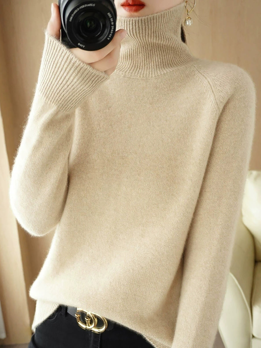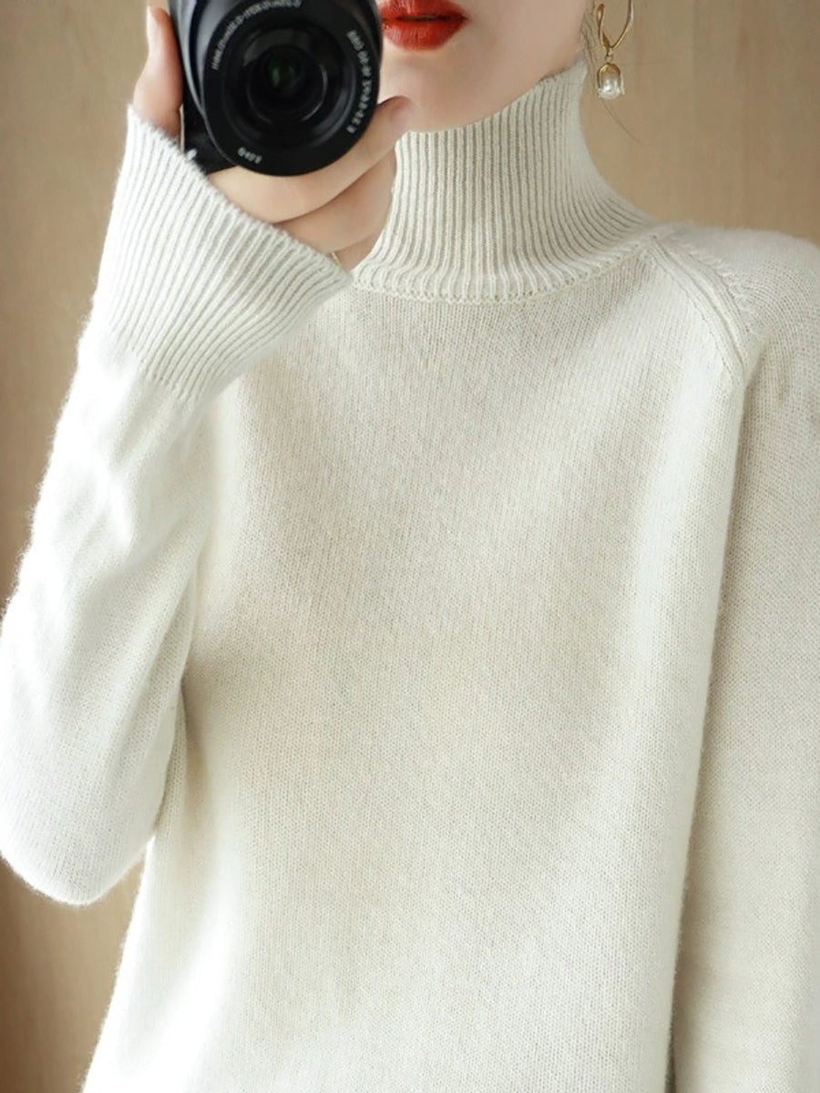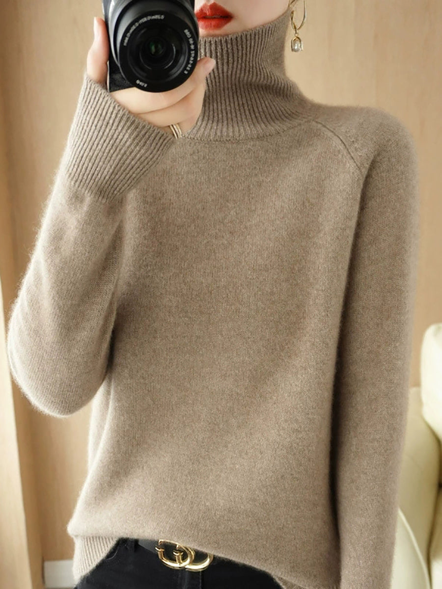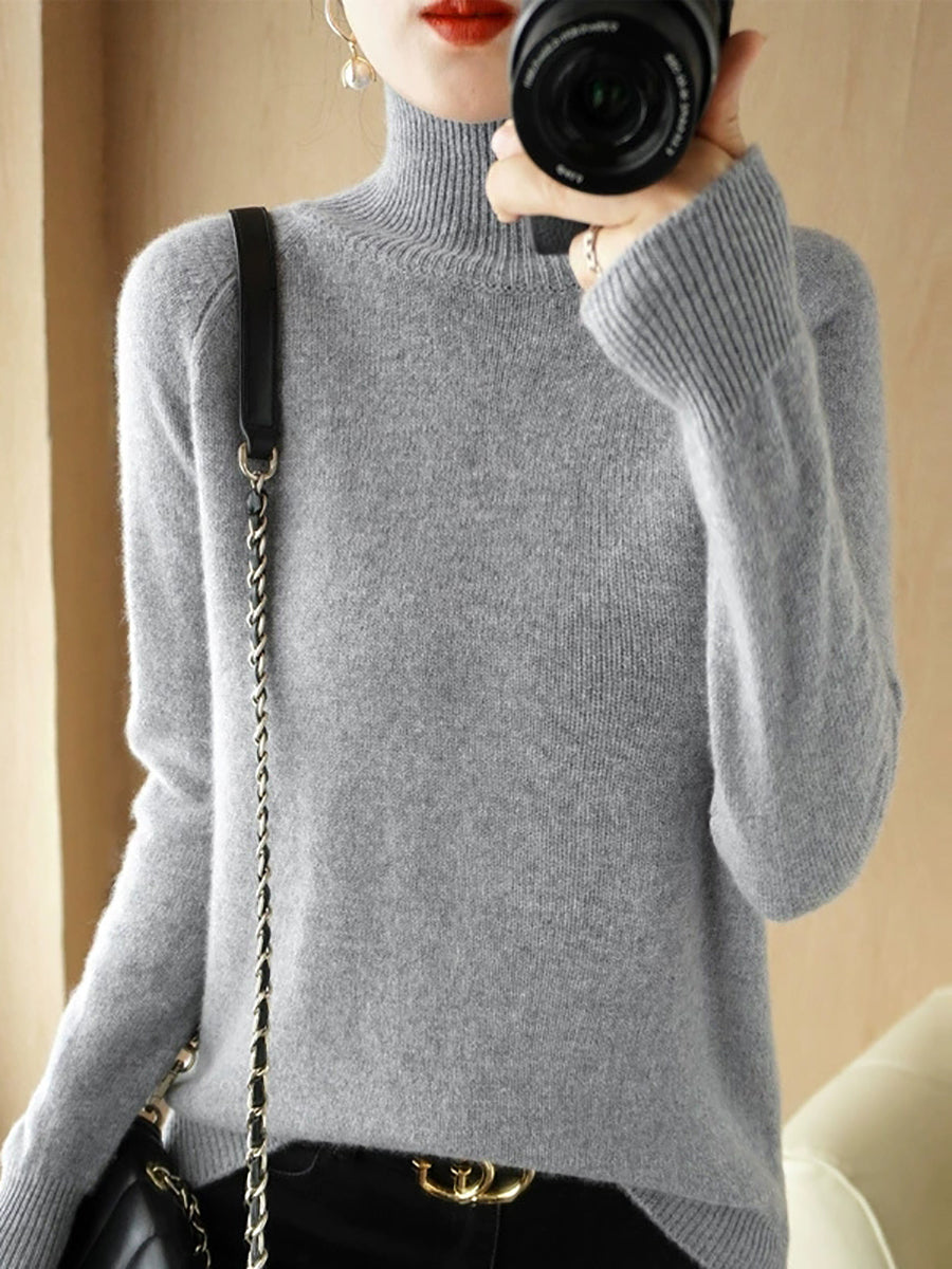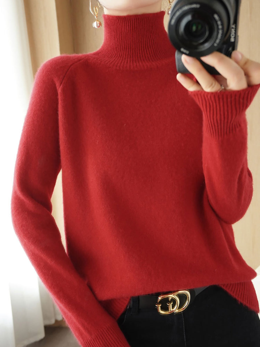 レディース 冬 アーティスティック ピュアカラー タートルネック セーター