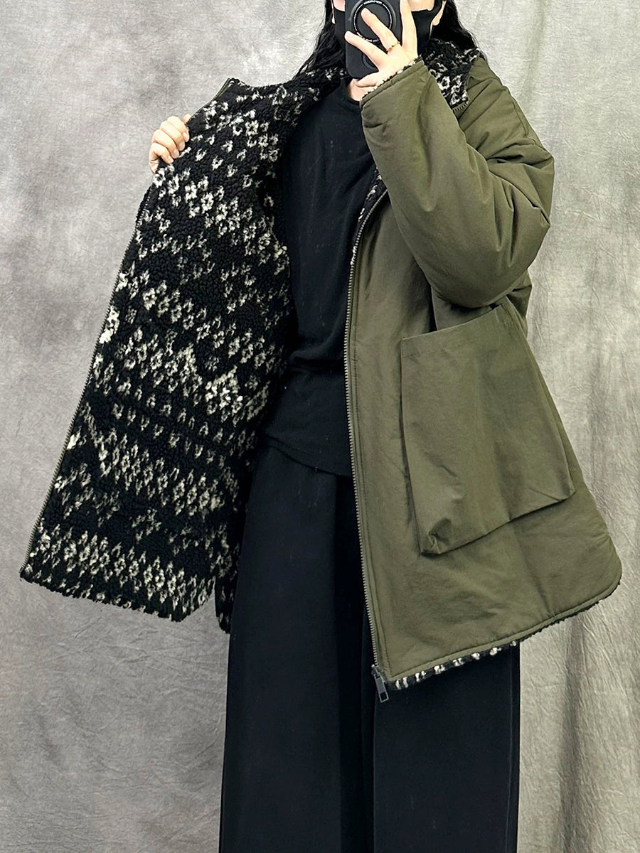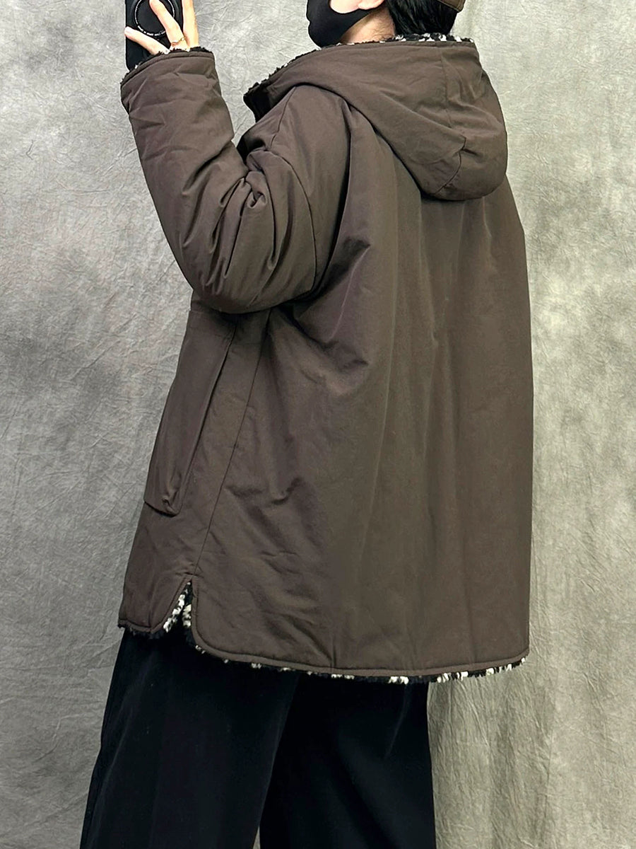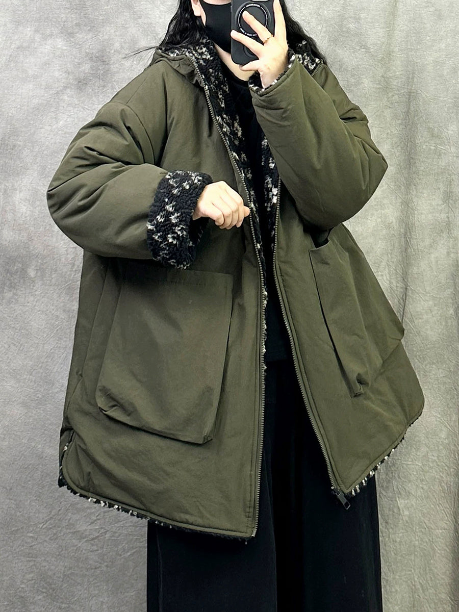 レディース 冬 カジュアル フリース 両面着用 フード付きコート