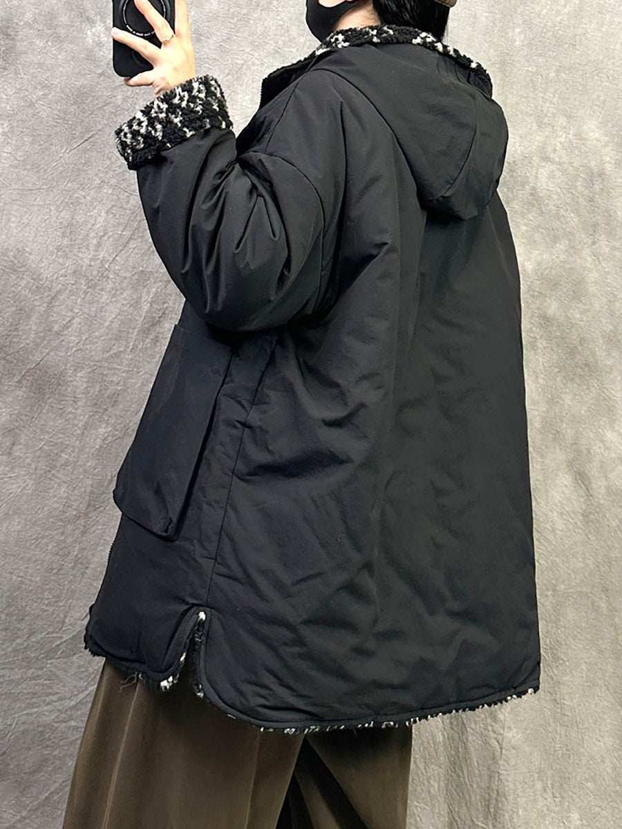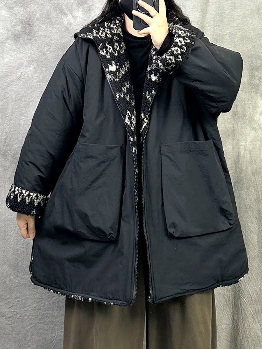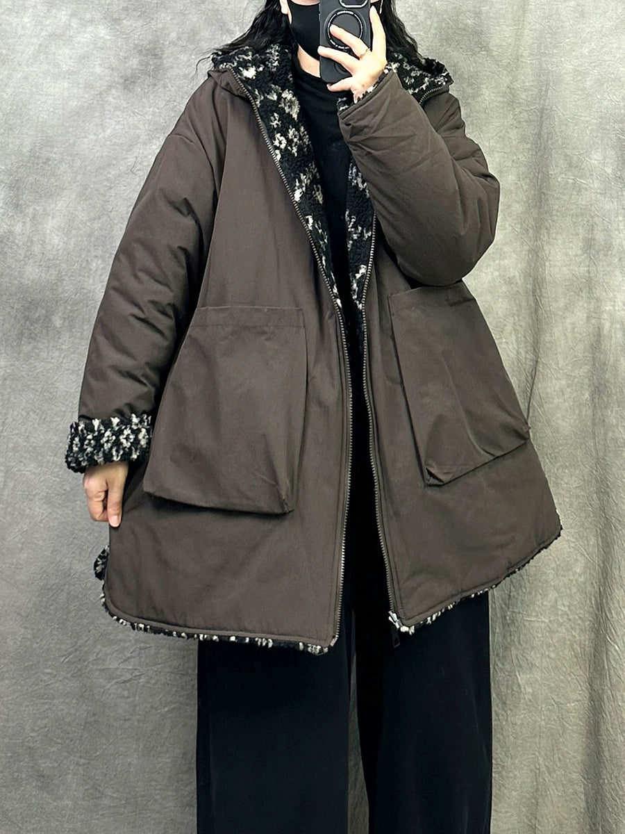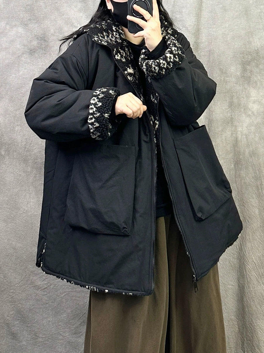 レディース 冬 カジュアル フリース 両面着用 フード付きコート