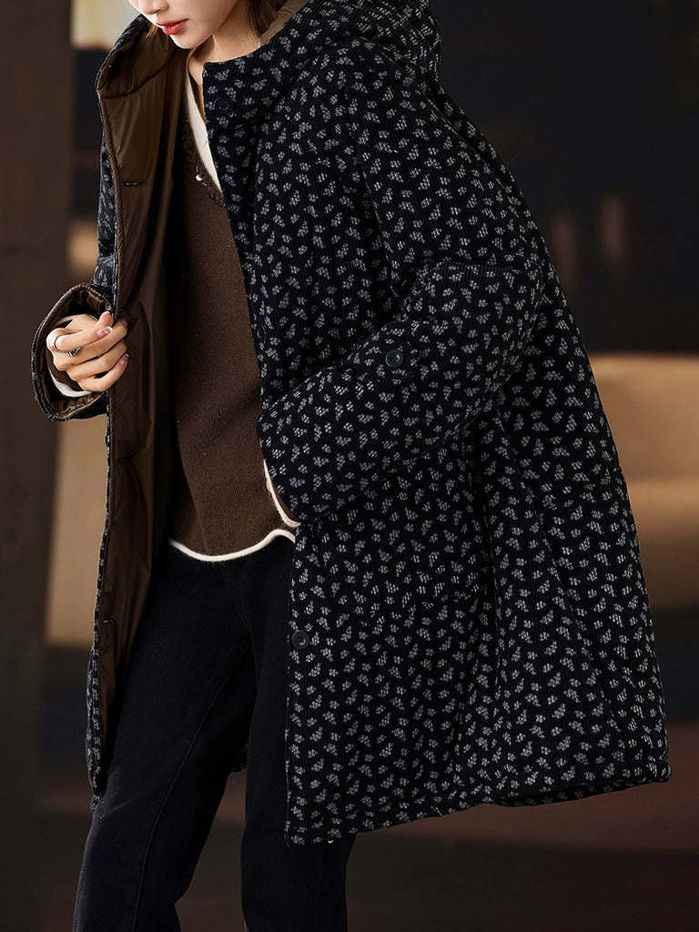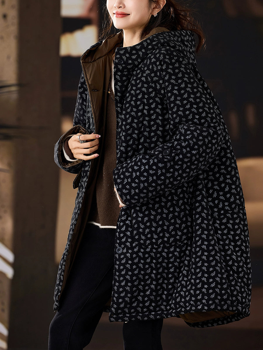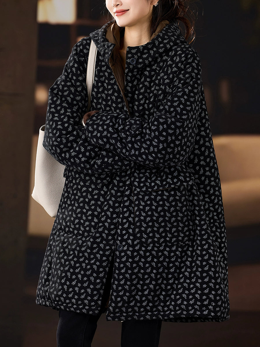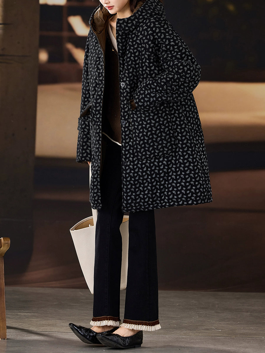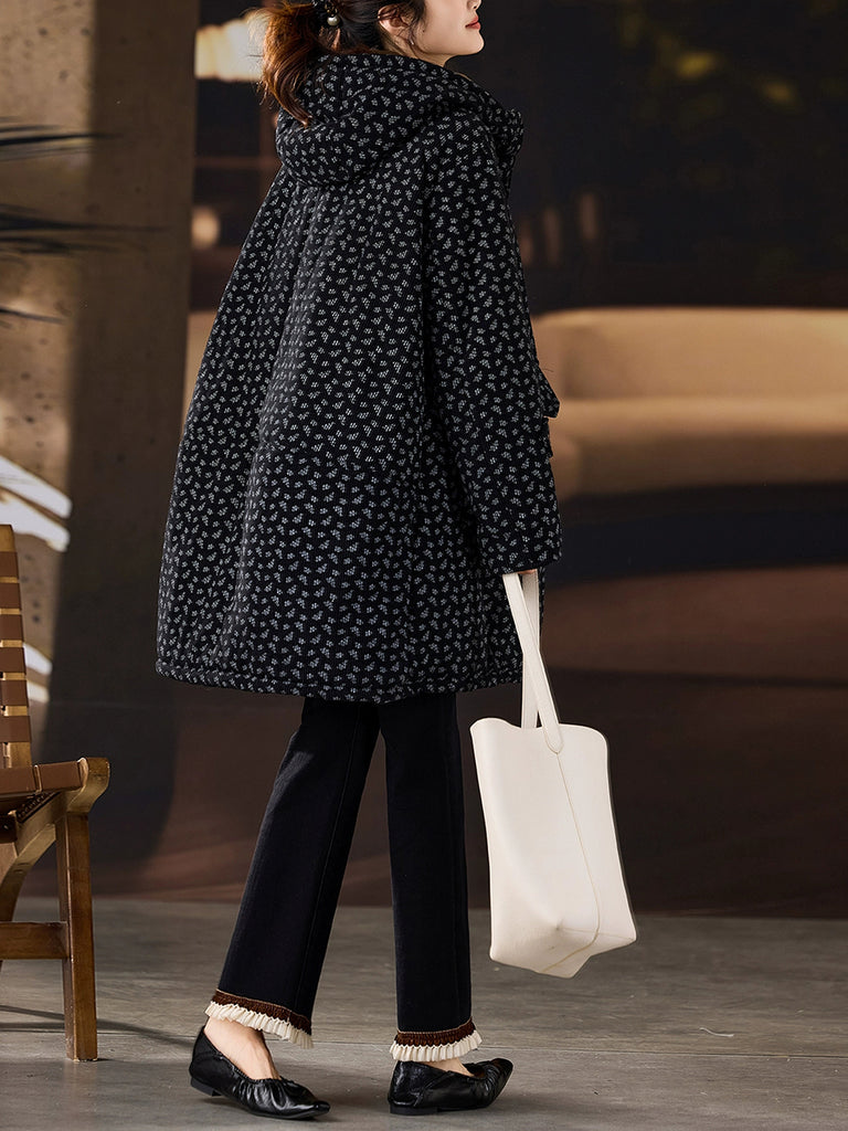 レディース 冬 カジュアル 花柄 パッド入り フード付きコート