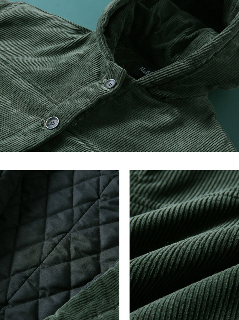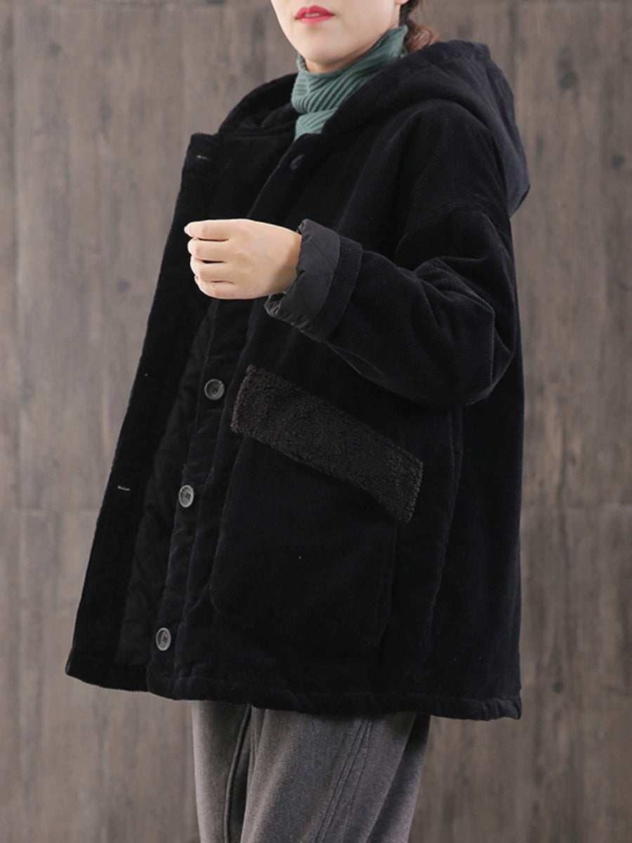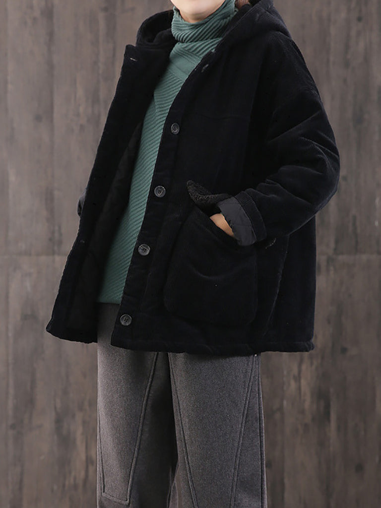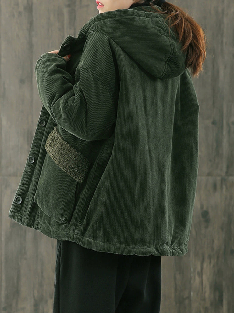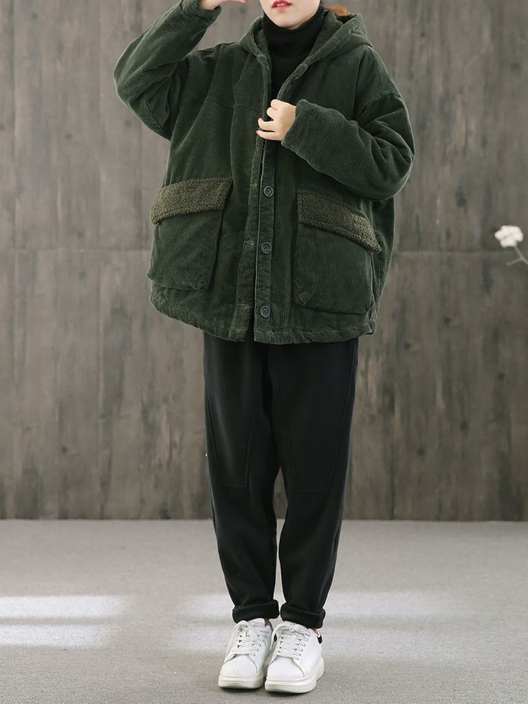 レディース 冬 カジュアル ピュアカラー コーデュロイ フード付き パッド入りコート