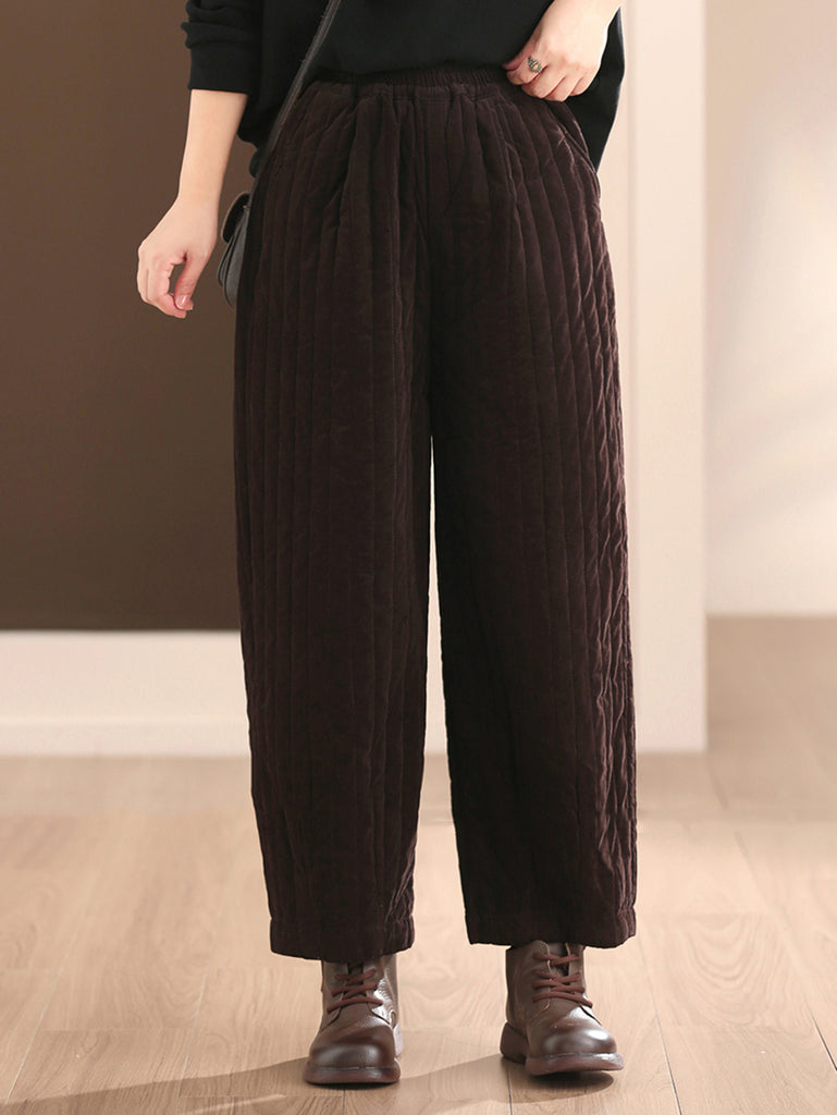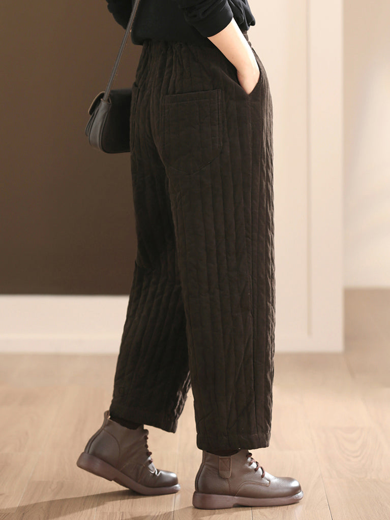 レディース 冬 カジュアル 純色 コットン パッド入り ハーレムパンツ