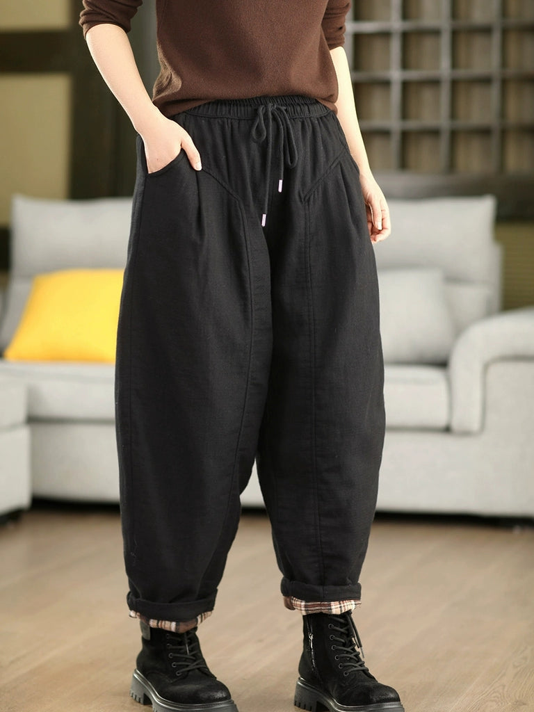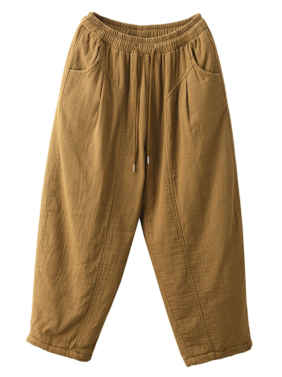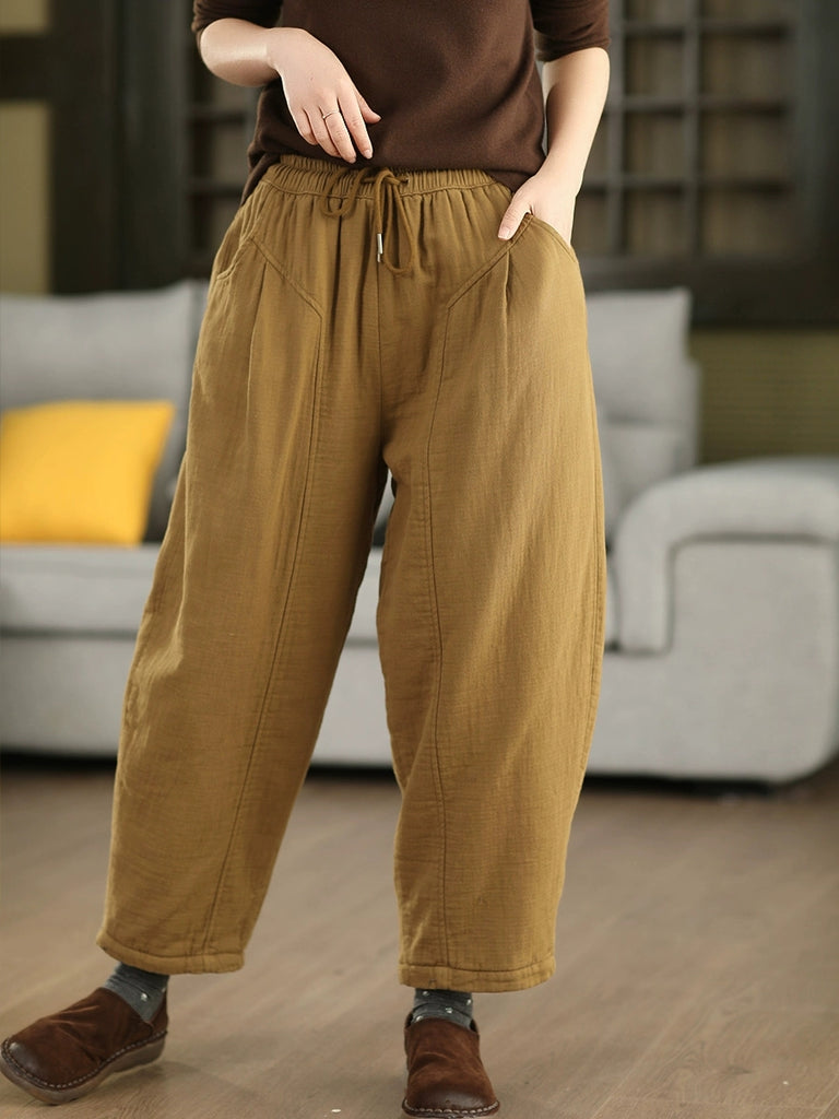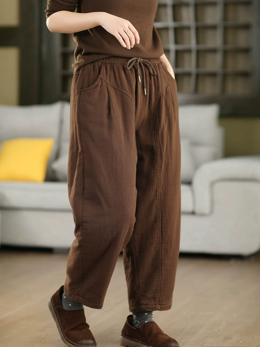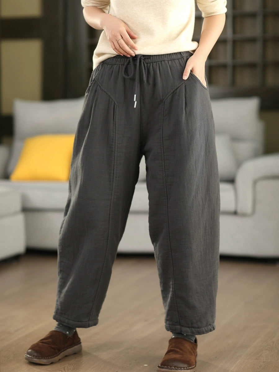 レディース 冬 カジュアル 純色 コットン パッド入り ハーレムパンツ