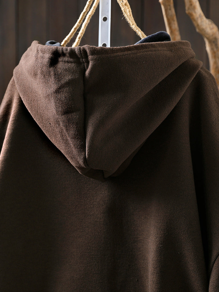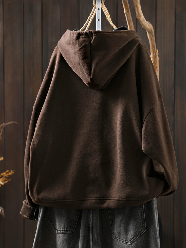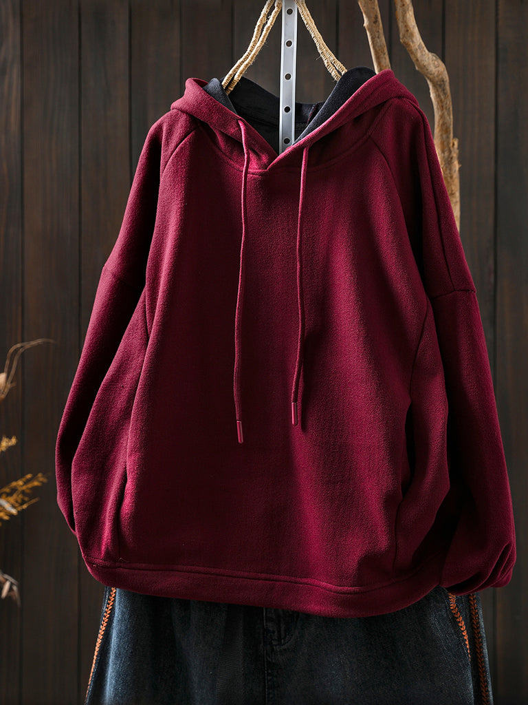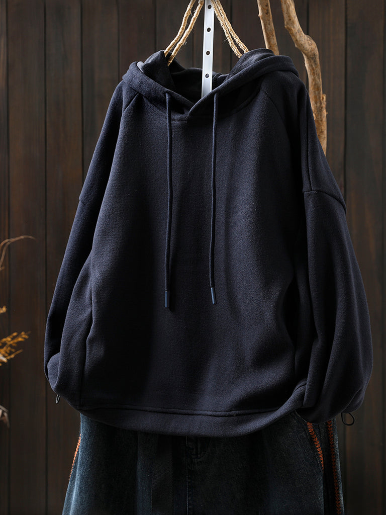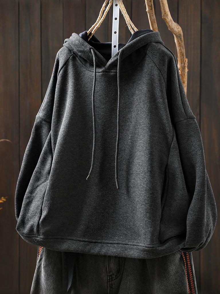 95%コットンを使用したこのパーカーは、無地のデザインとフード付きの襟が特徴です。ゆったりとしたラグランスリーブで、秋冬にぴったりのカジュアルな着こなしをお楽しみいただけます。