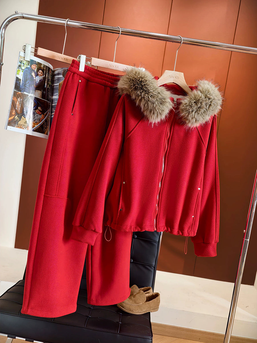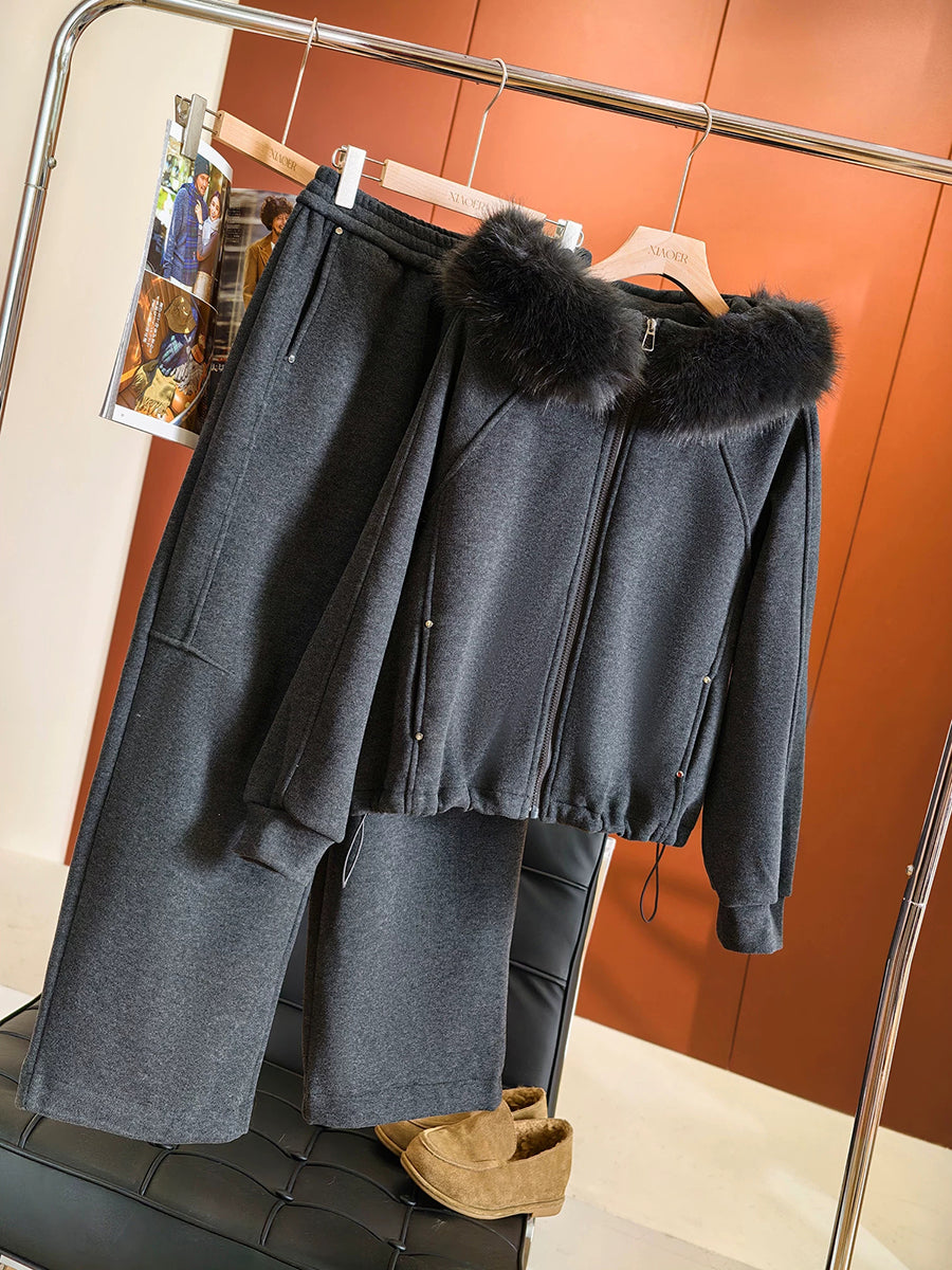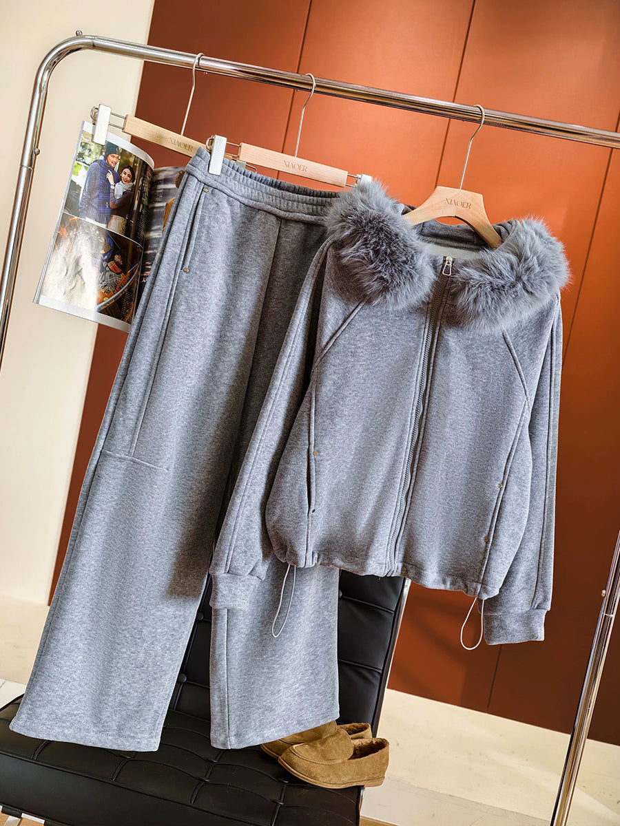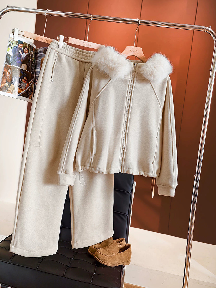 レディース 冬 カジュアル 純色 フード付きスーツ