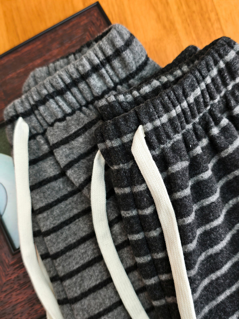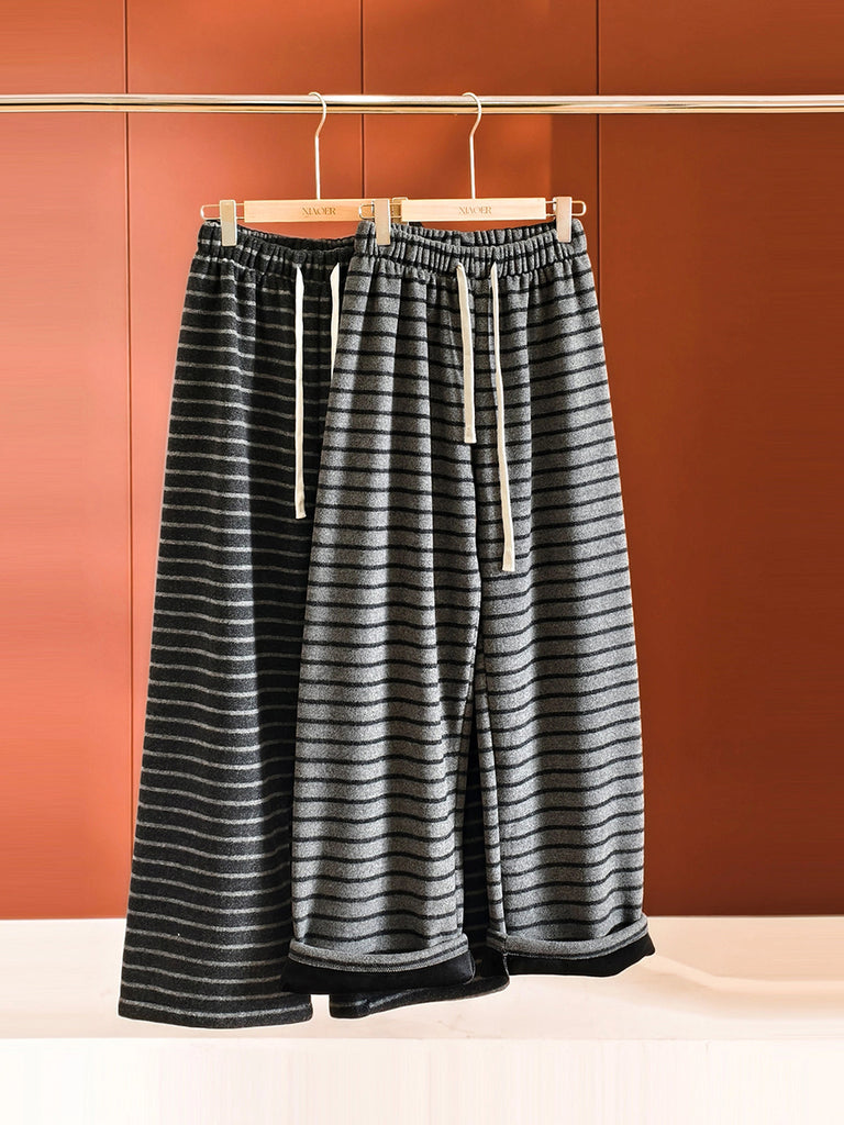 レディース 冬 カジュアル ストライプ フリース裏地 ストレートパンツ
