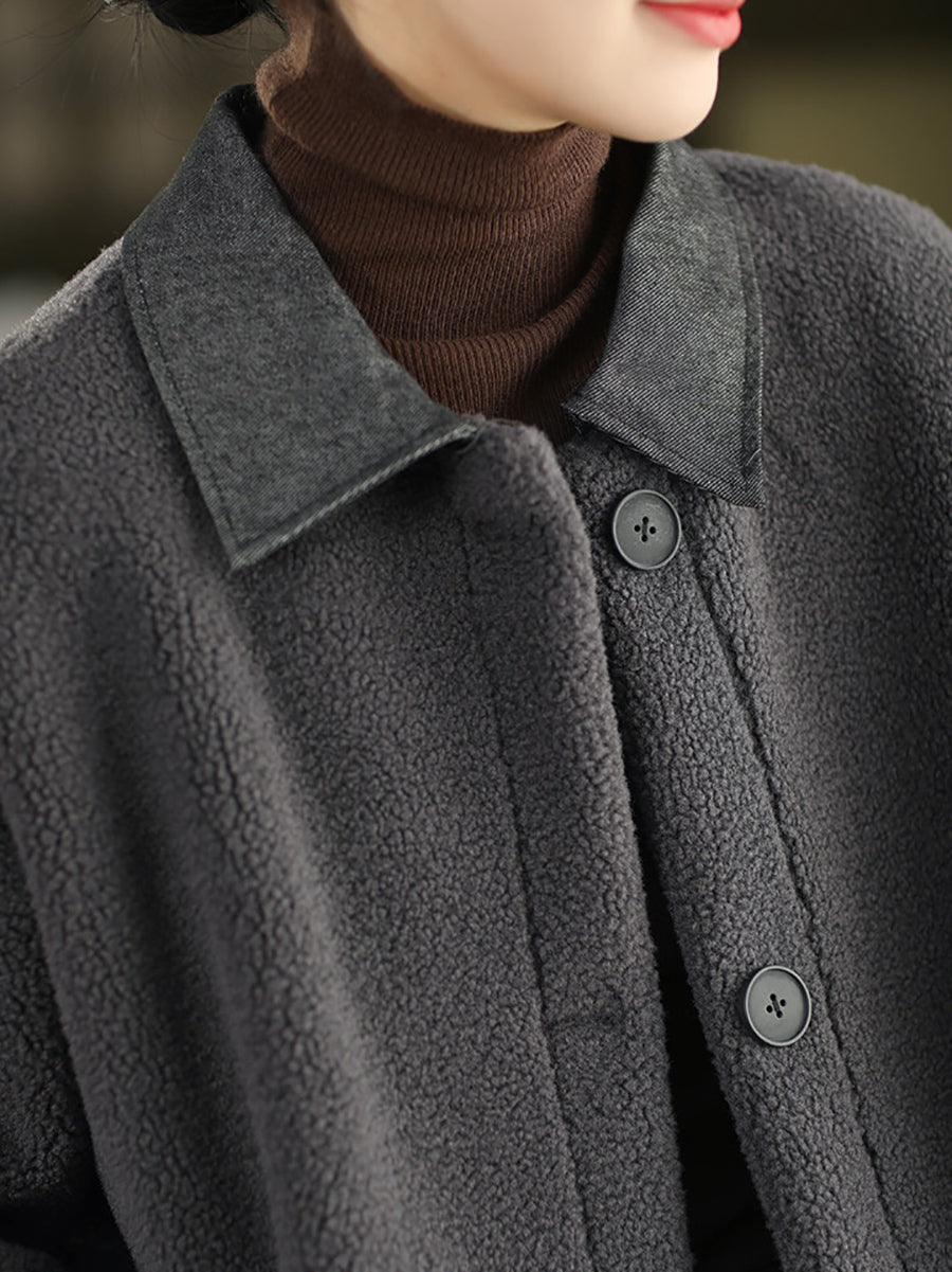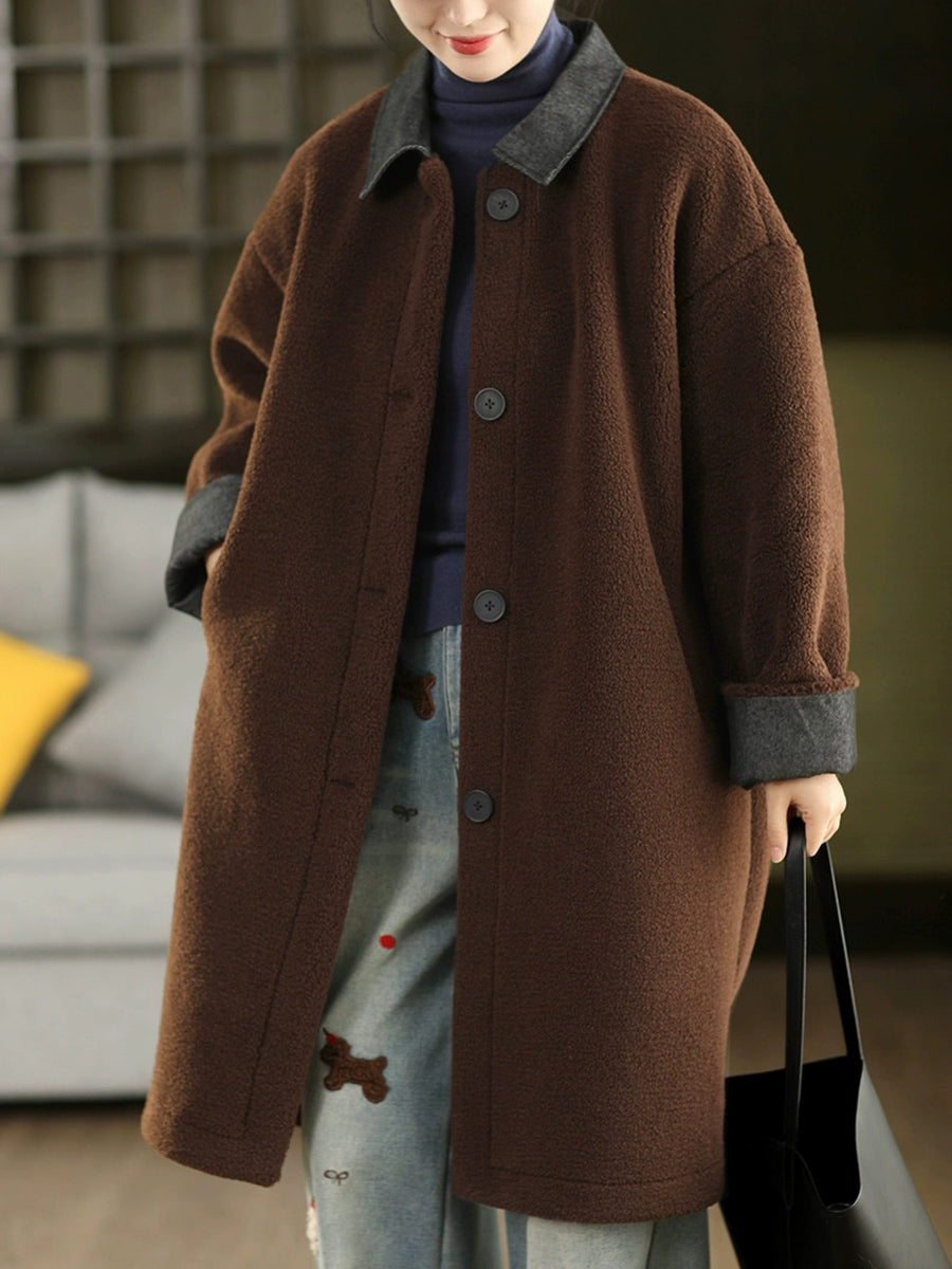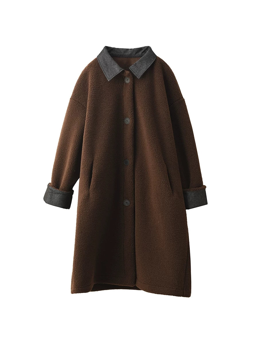 レディース 冬用 カラーブロック ターンダウンカラー フリースコート