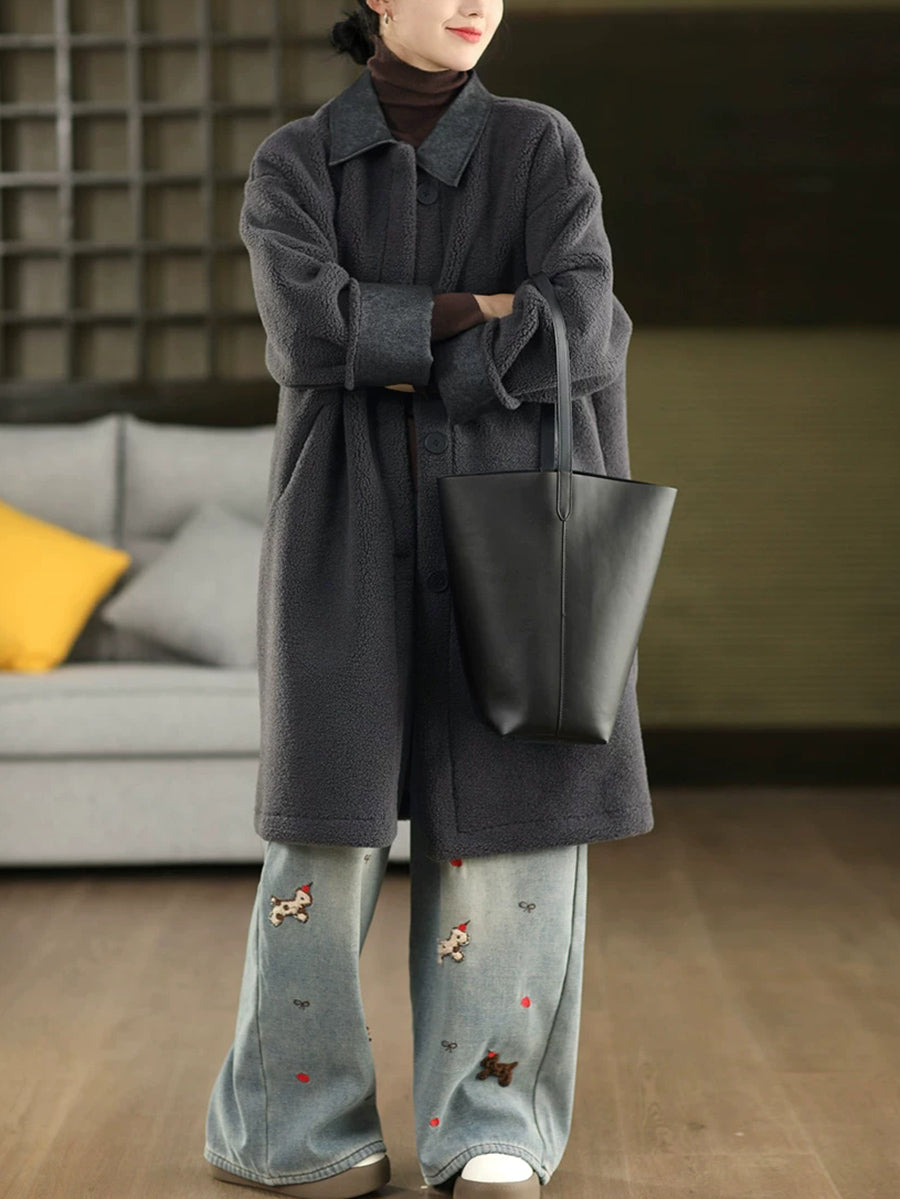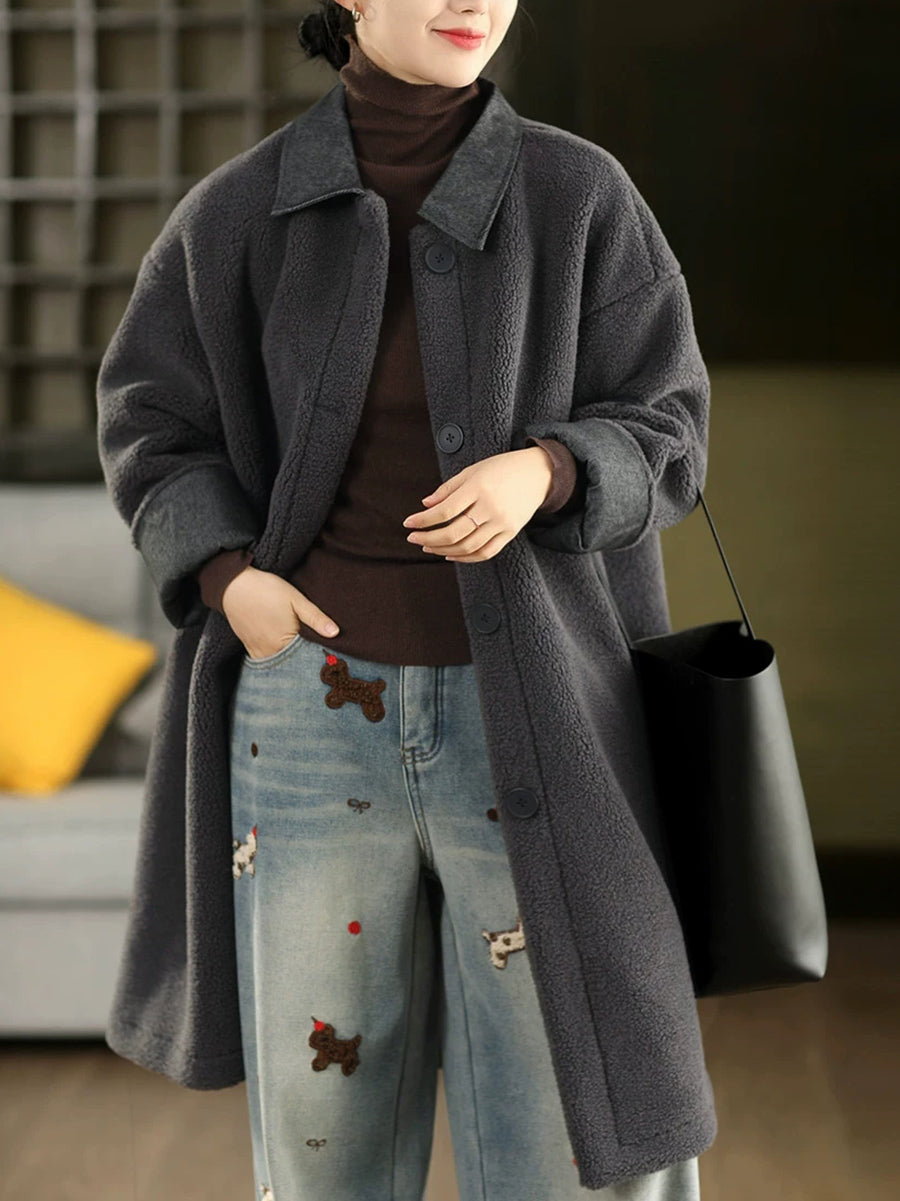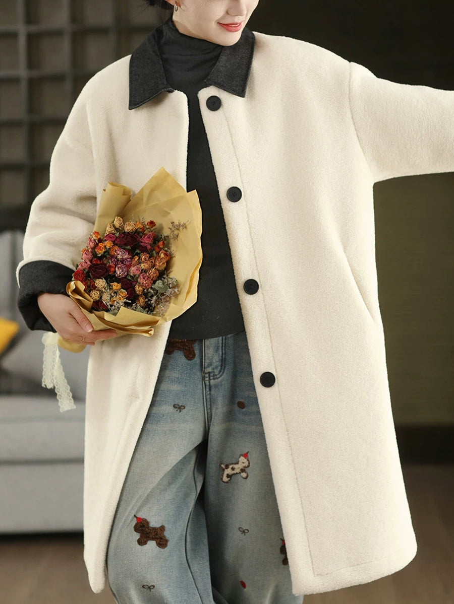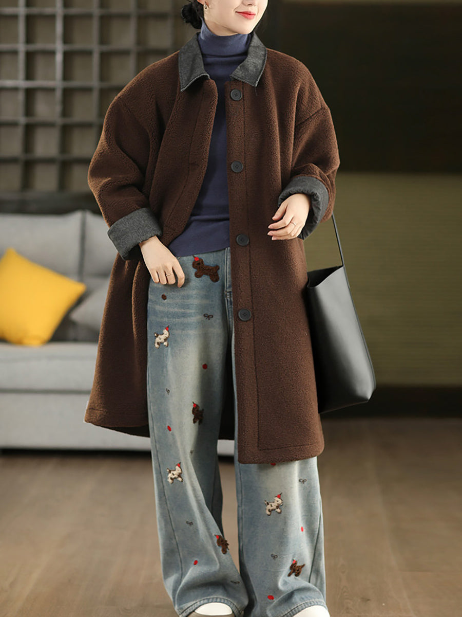 レディース 冬用 カラーブロック ターンダウンカラー フリースコート