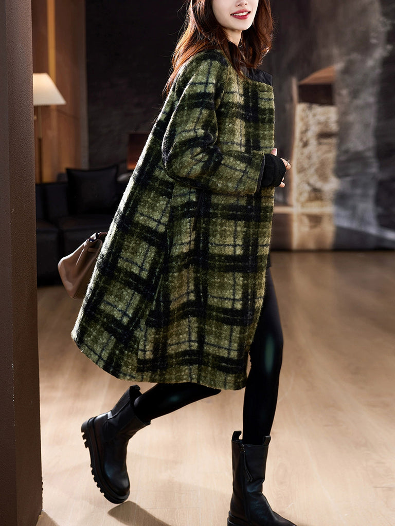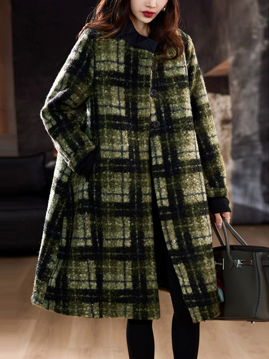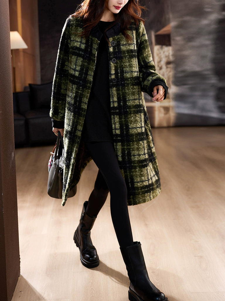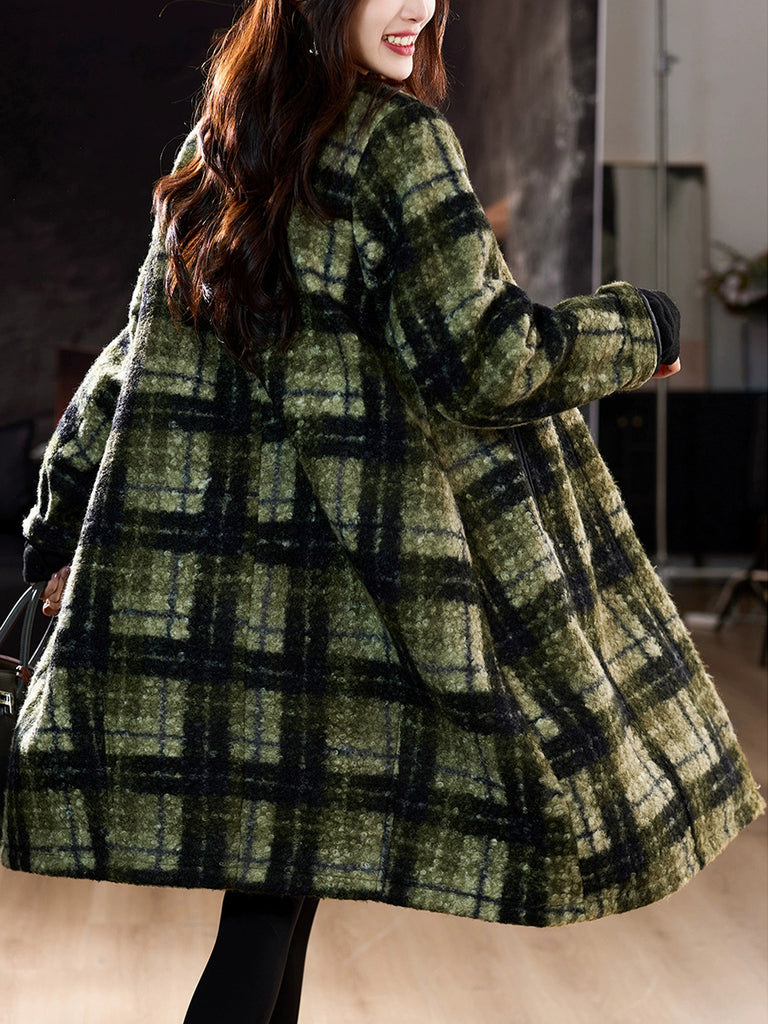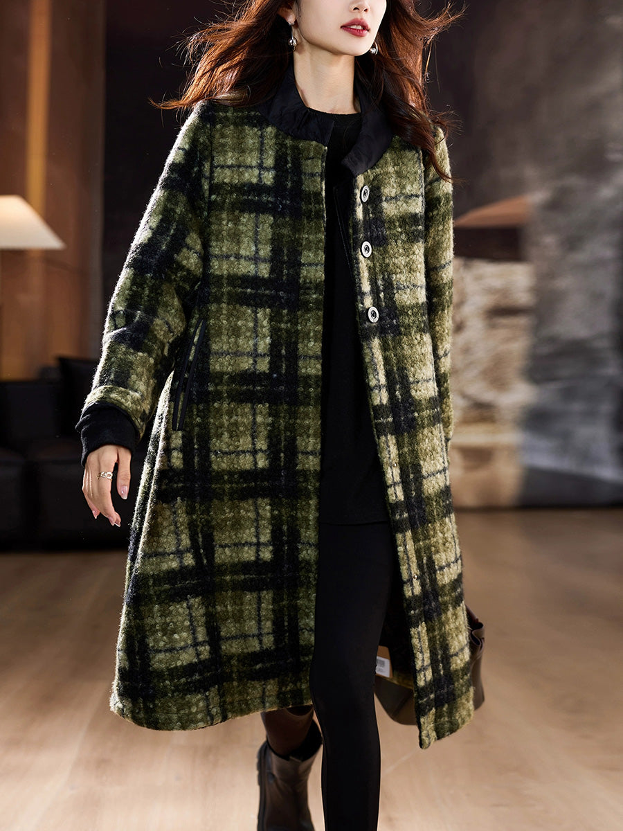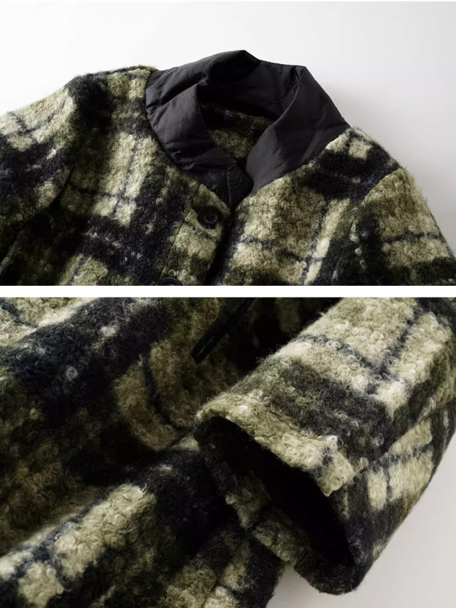 レディース 冬ファッション チェック柄 スプライス パッド入りコート