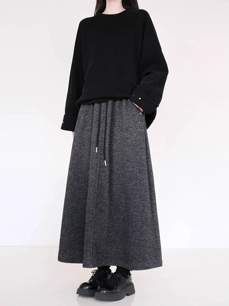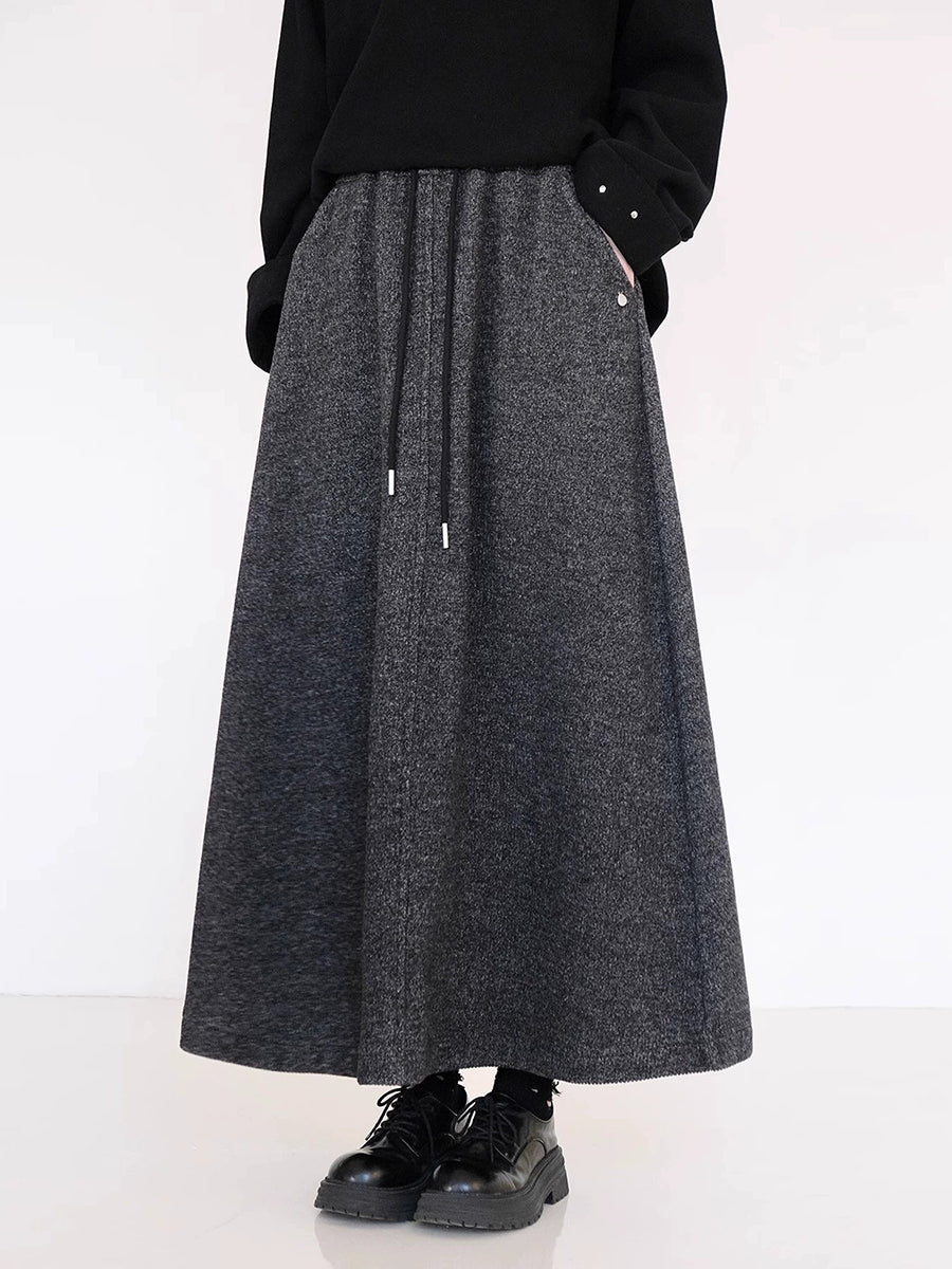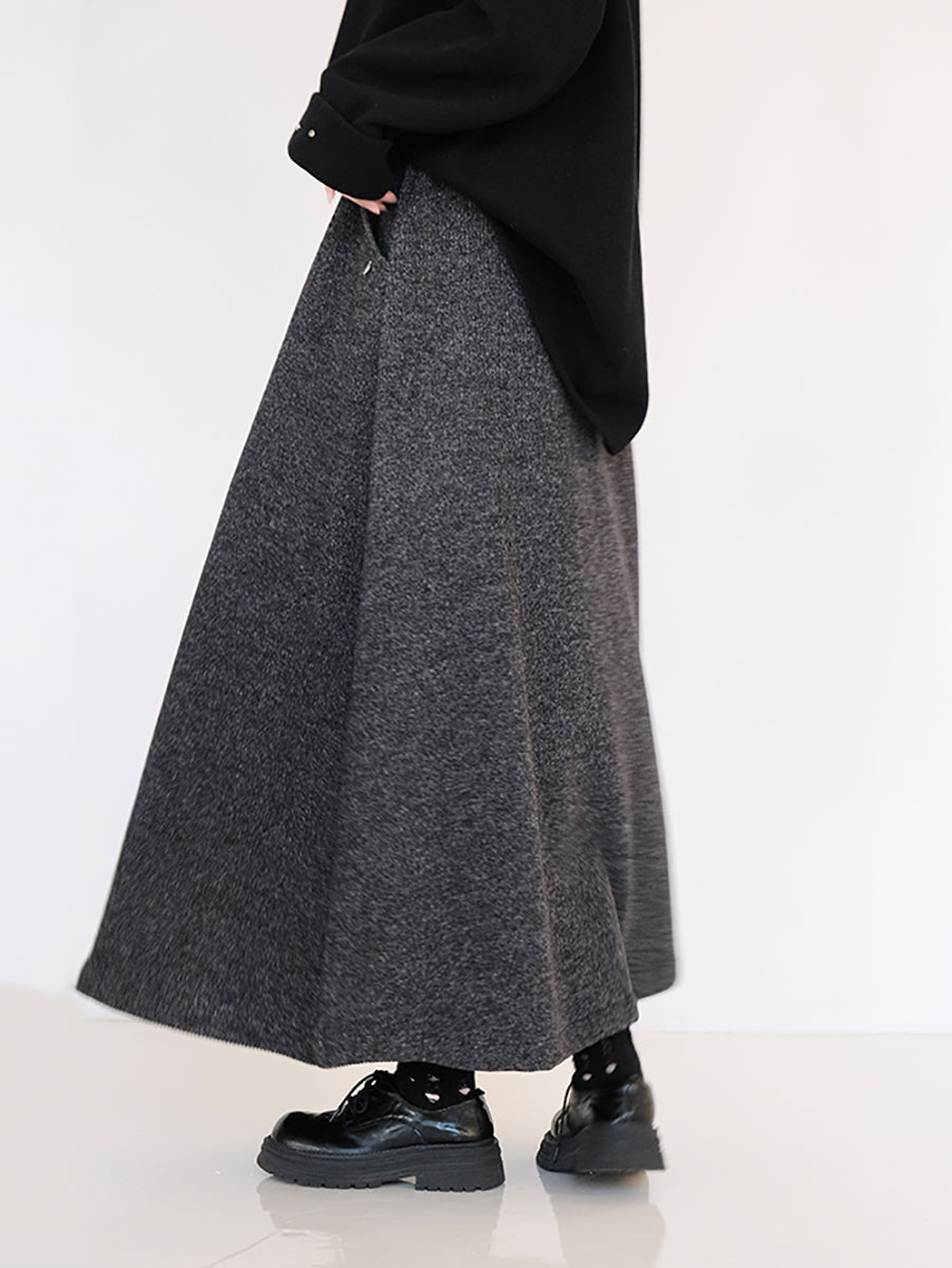 レディース 冬用 フリース裏地 純色 Aシェイプスカート