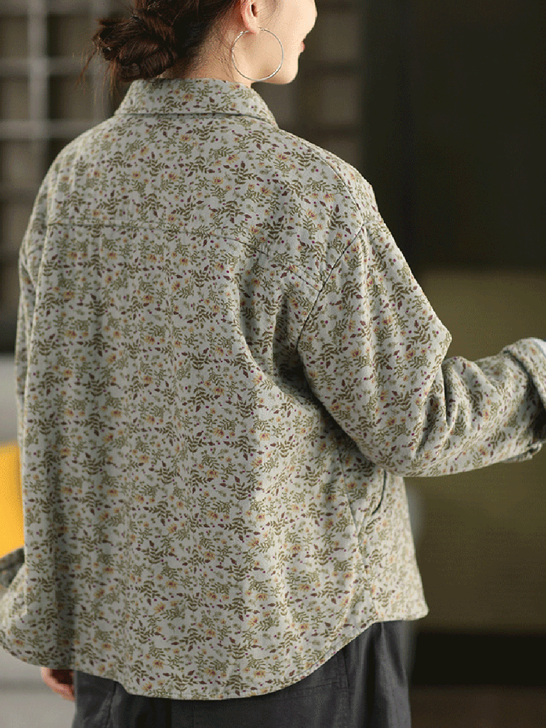 レディース 冬 花柄 100%コットン パッド入りシャツコート