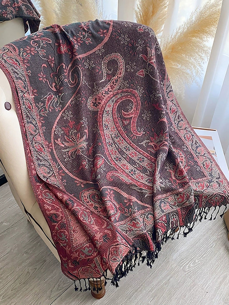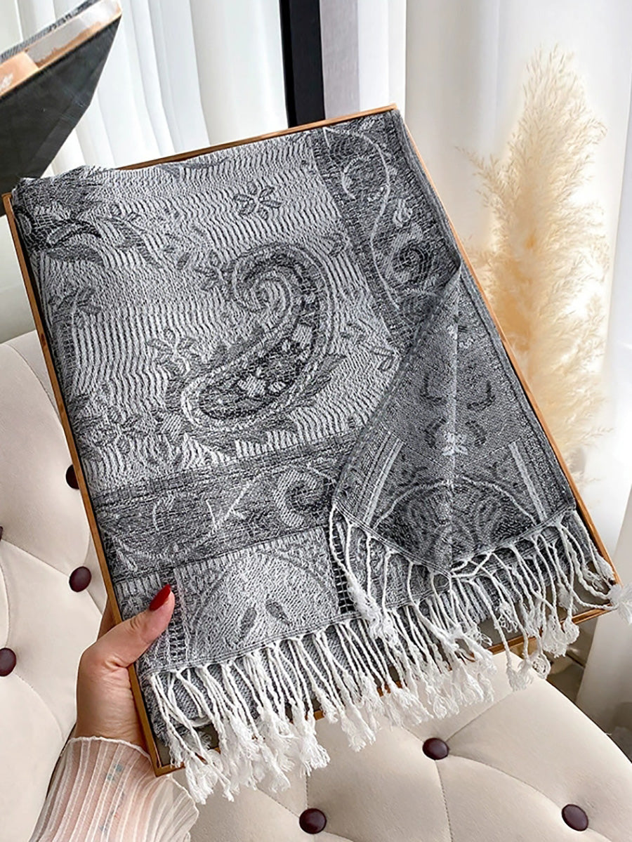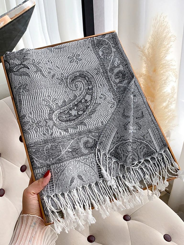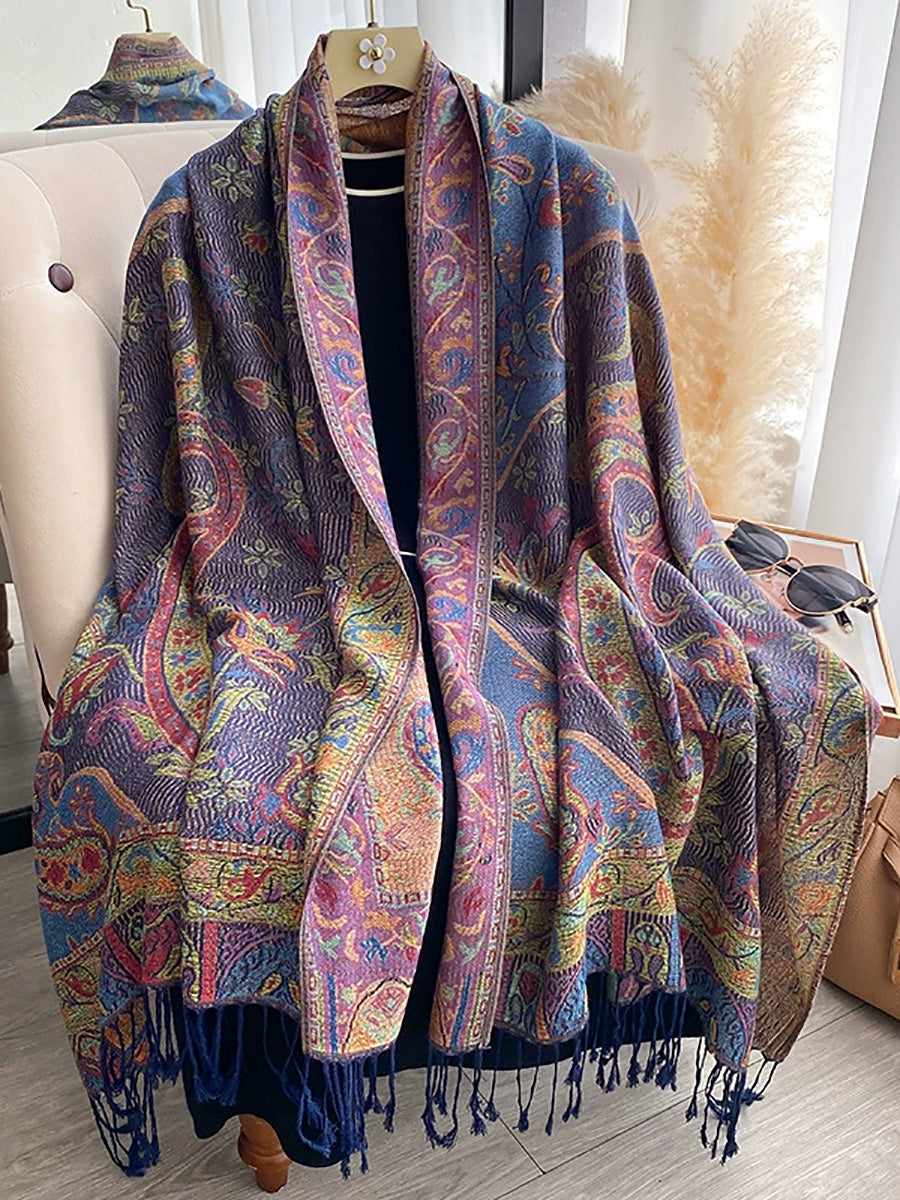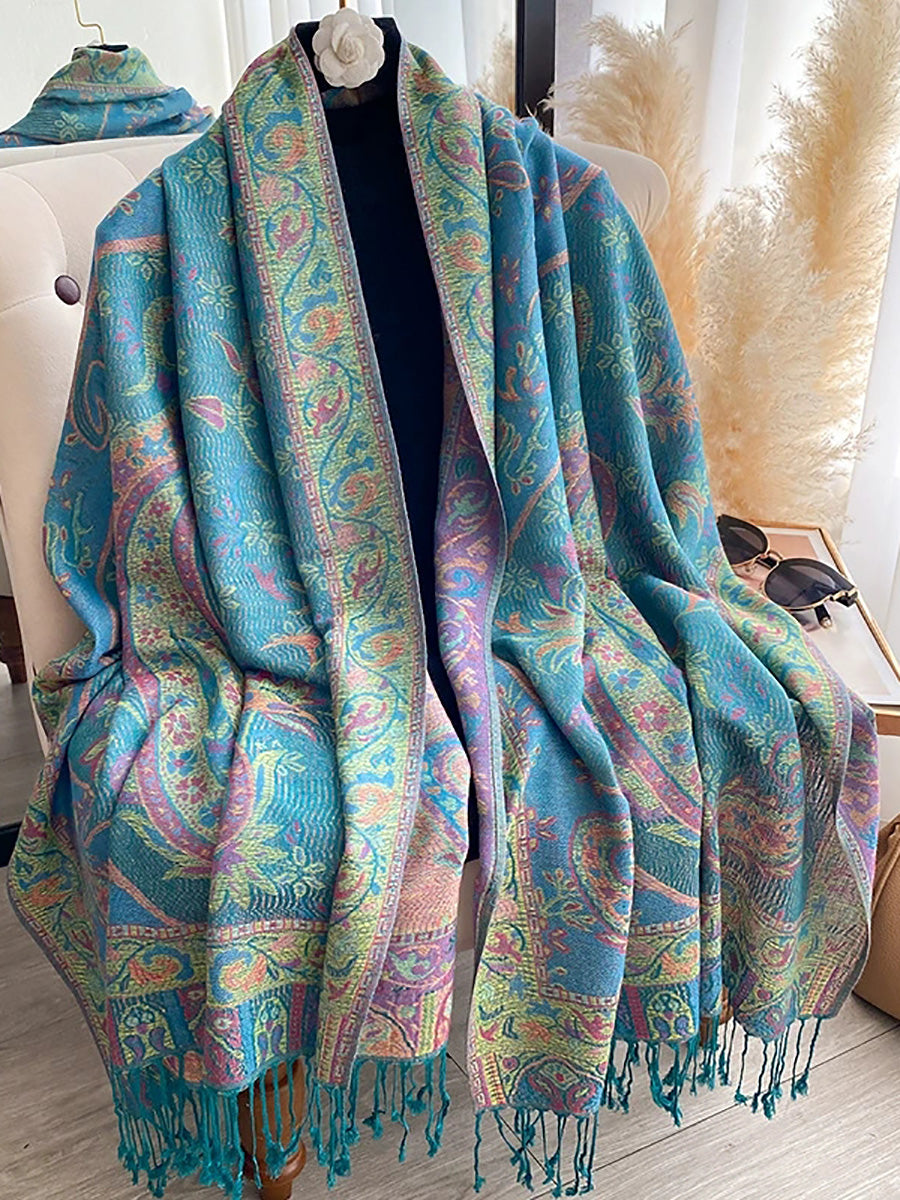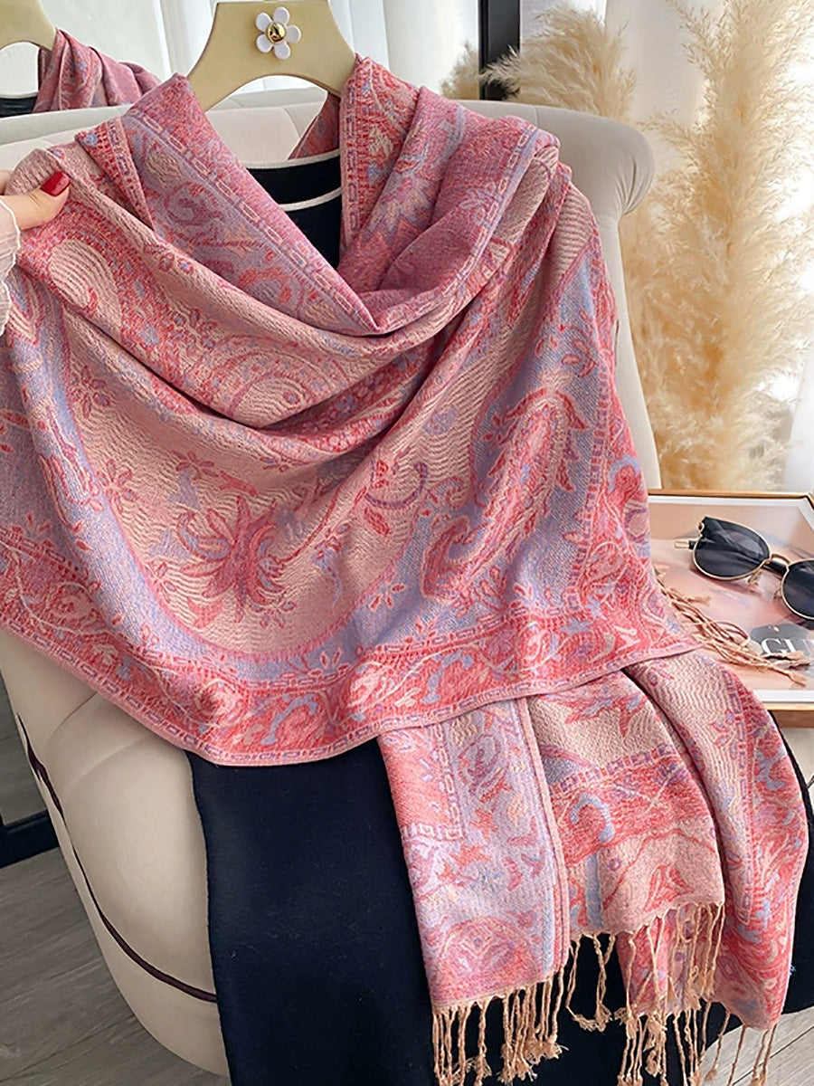レディース ウィンターフラワー ジャカード タッセル ショール