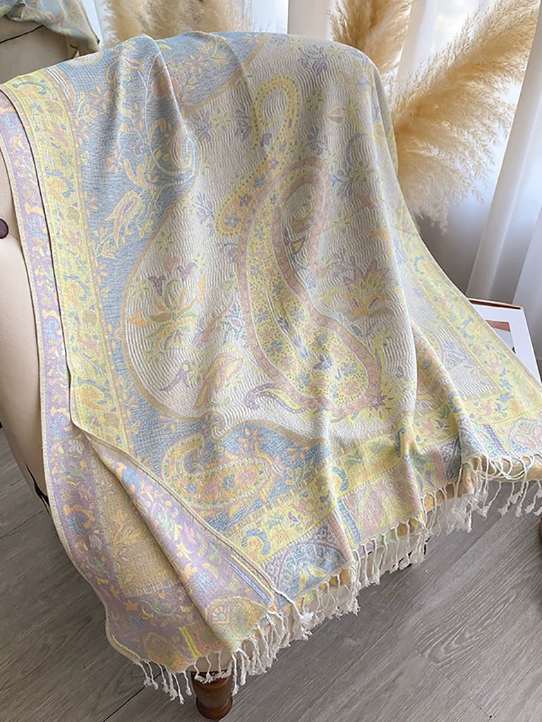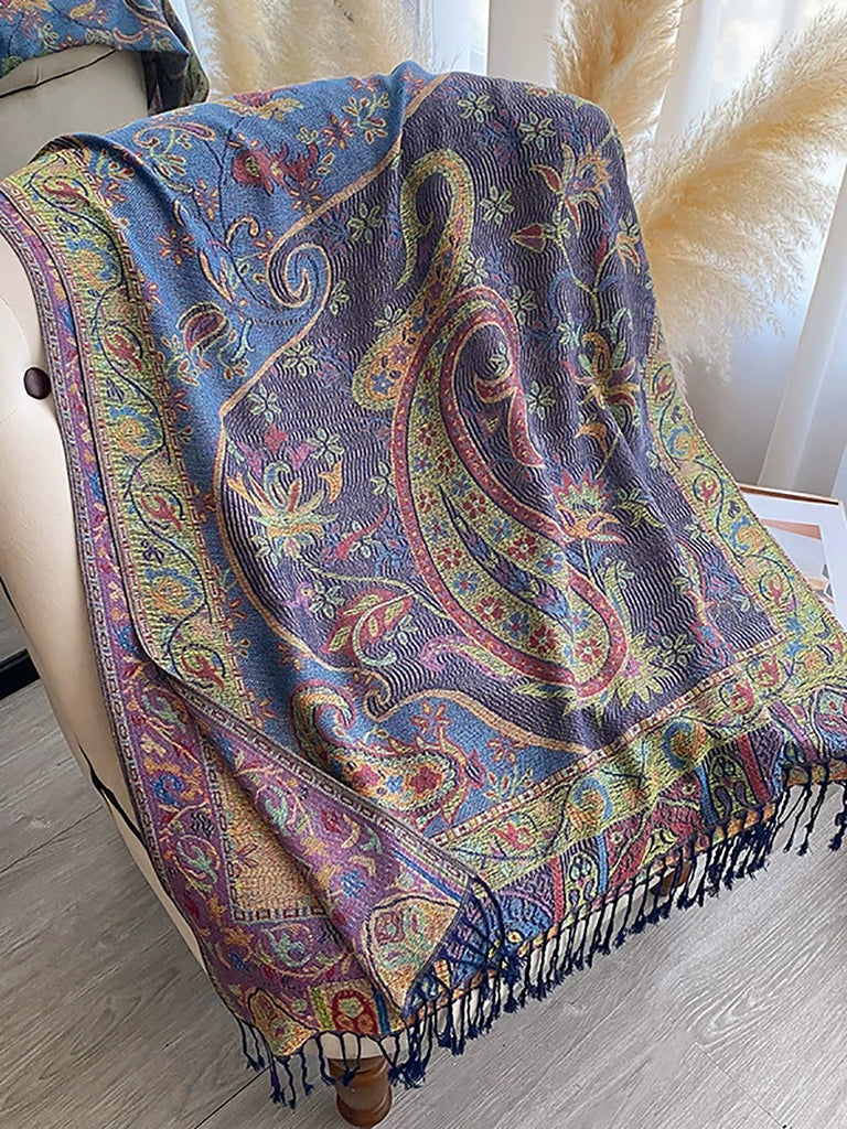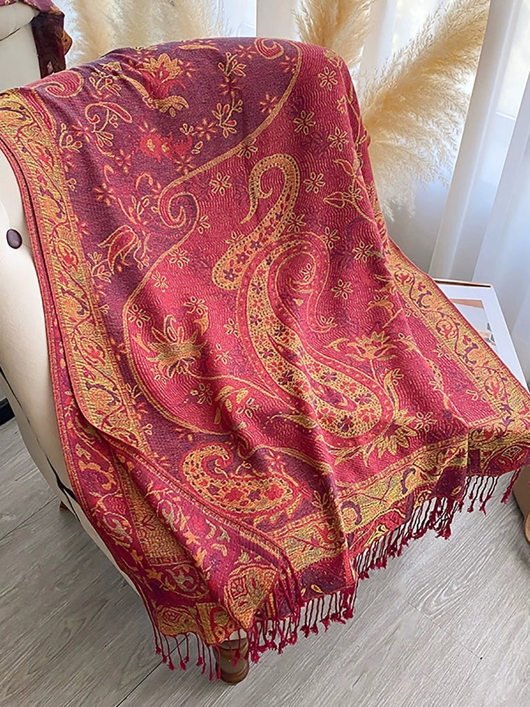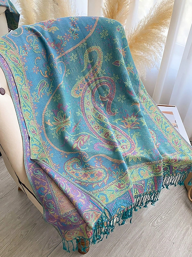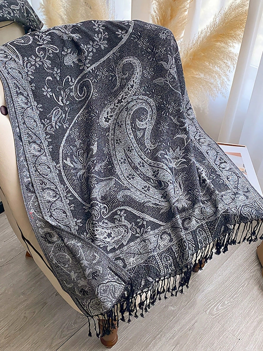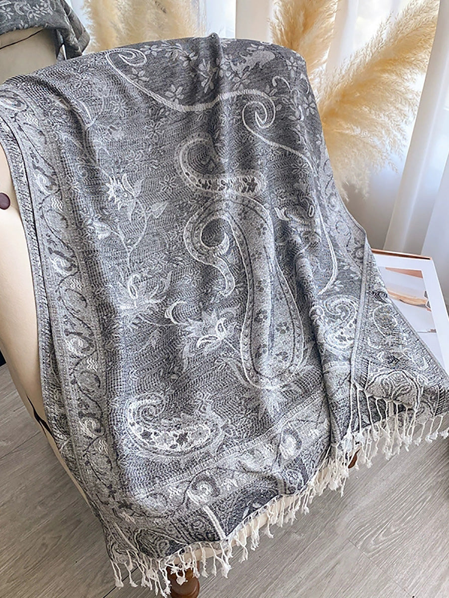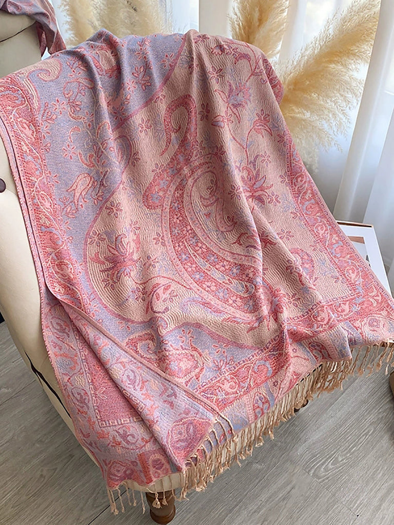 レディース ウィンターフラワー ジャカード タッセル ショール