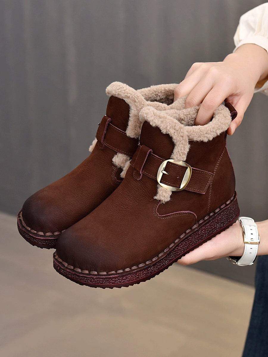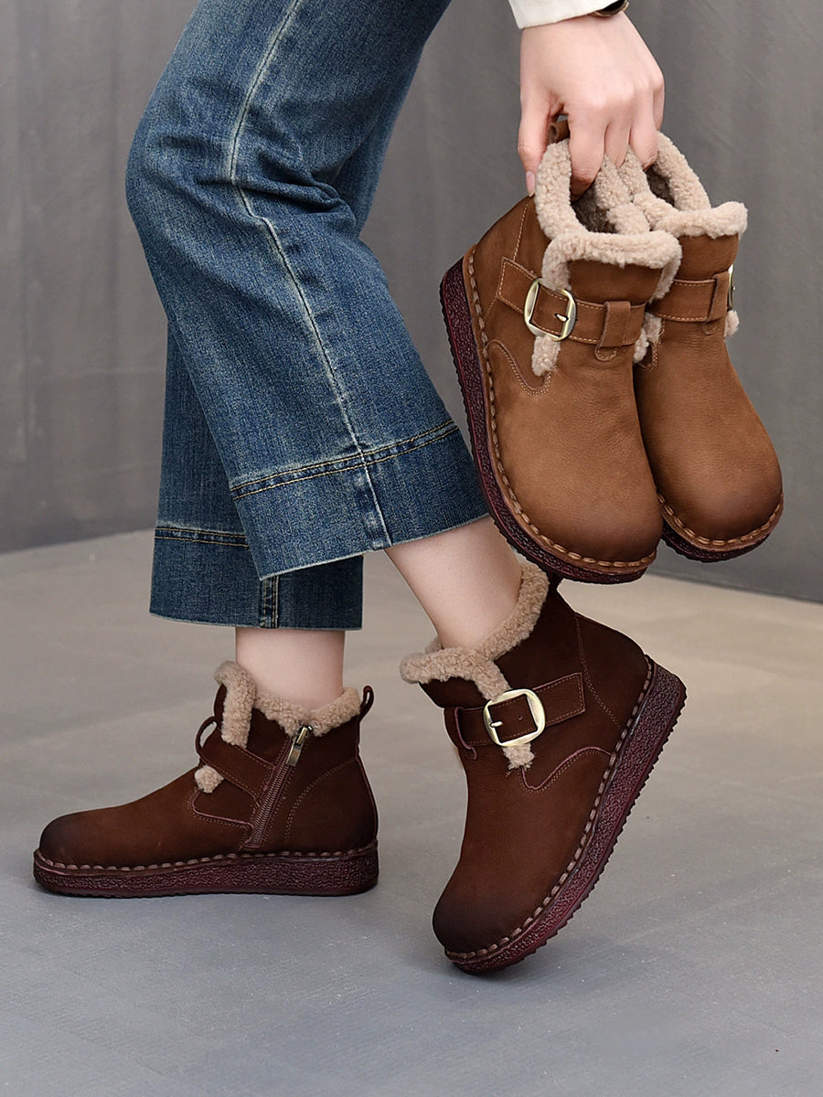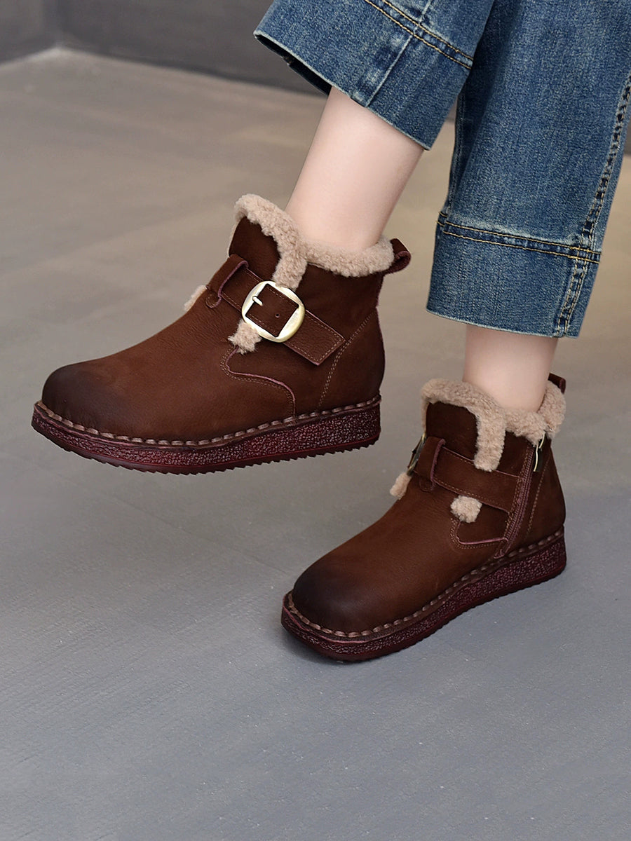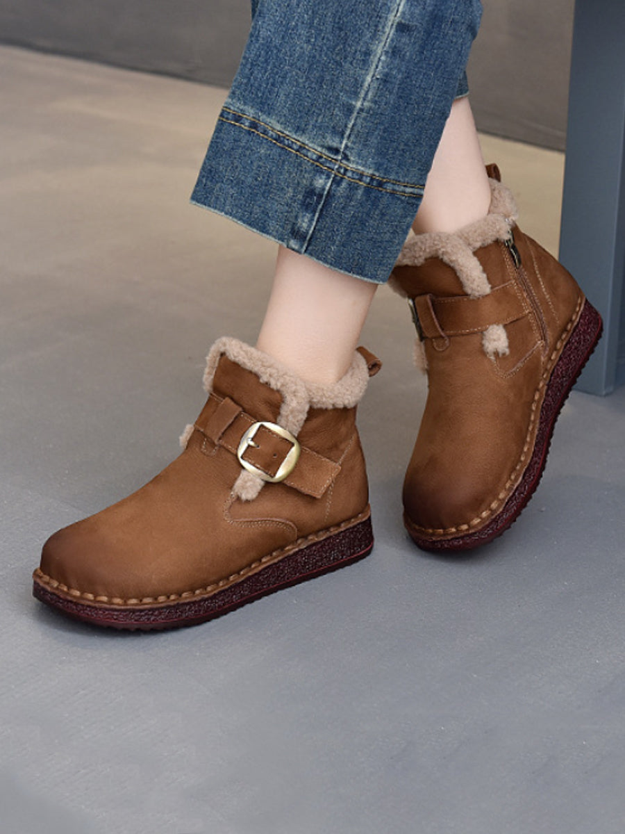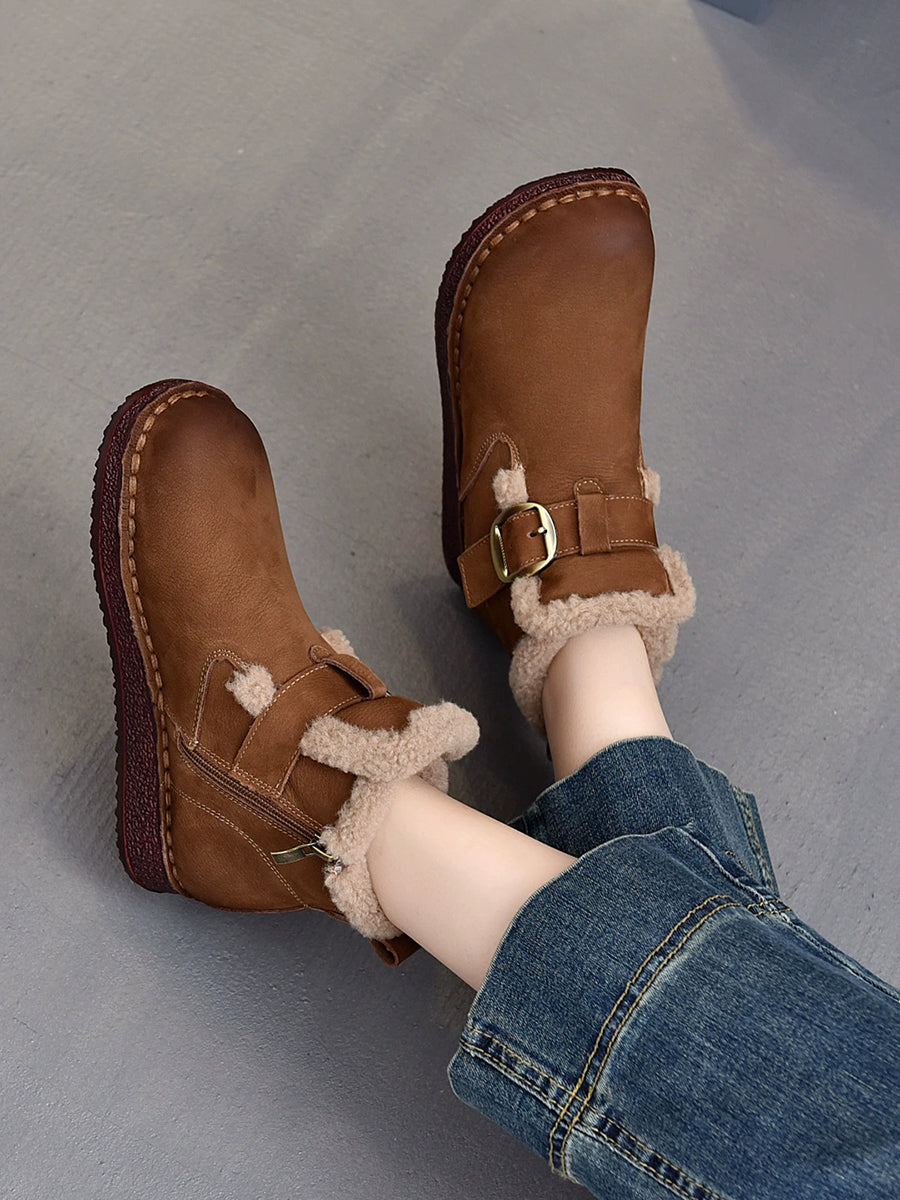 レディース 冬用 本革 フリース裏地 アンクルブーツ