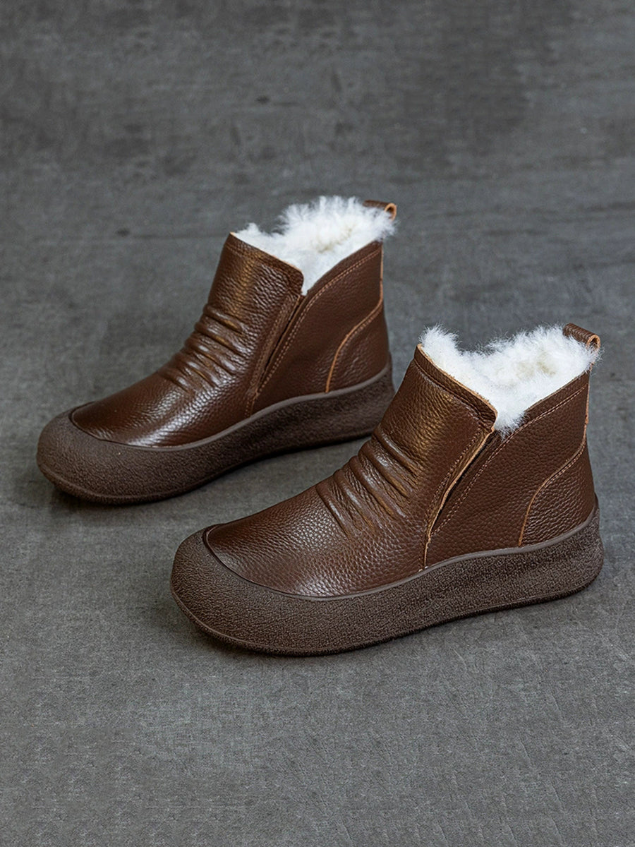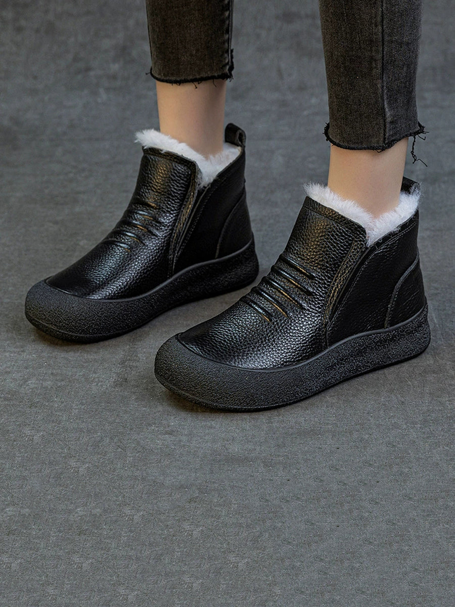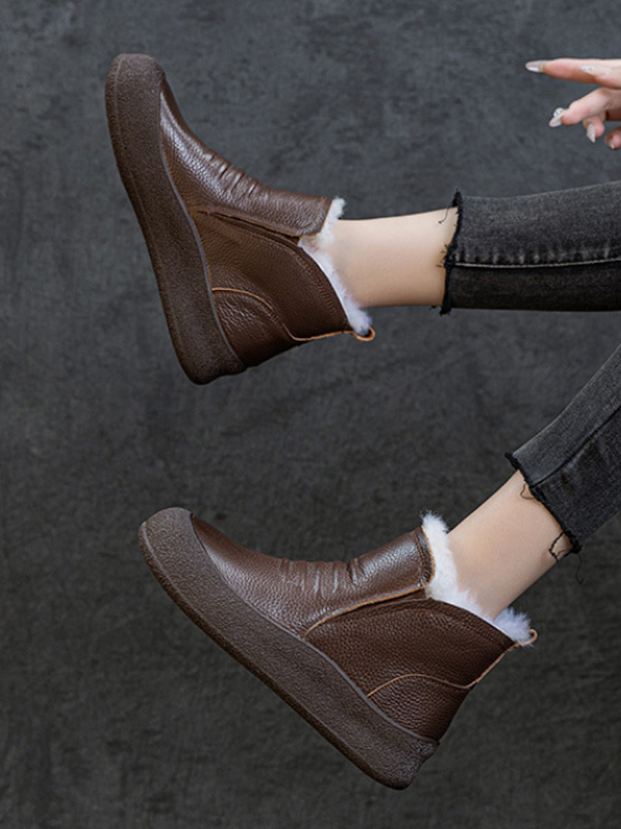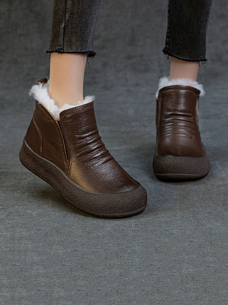 レディース 冬用 本革 フリース裏地 アンクルブーツ