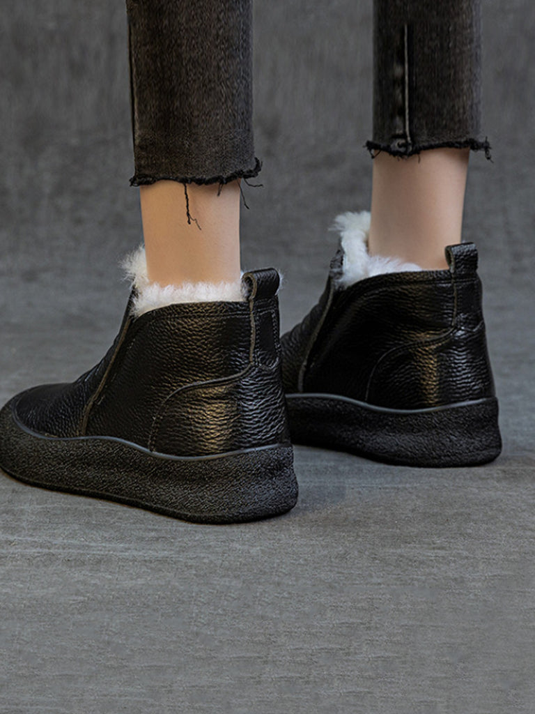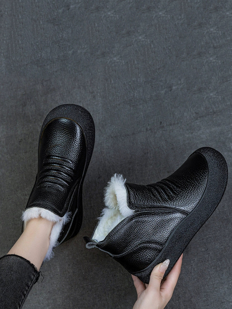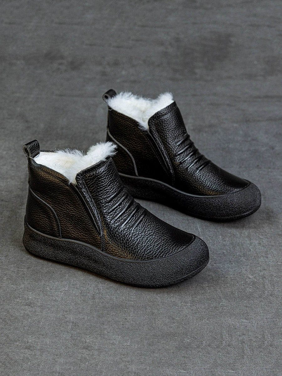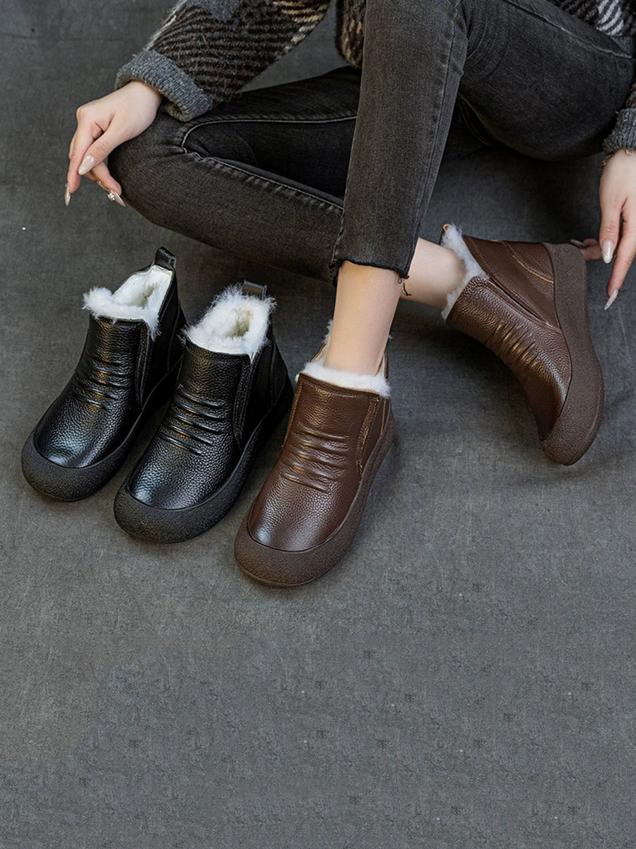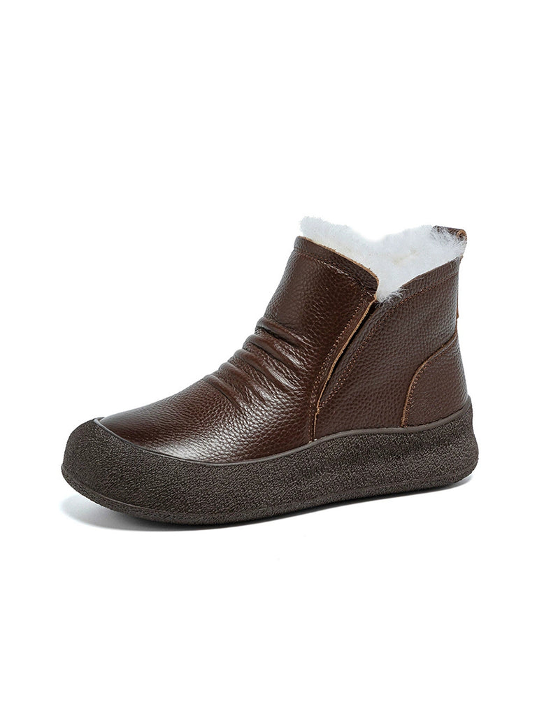 レディース 冬用 本革 フリース裏地 アンクルブーツ