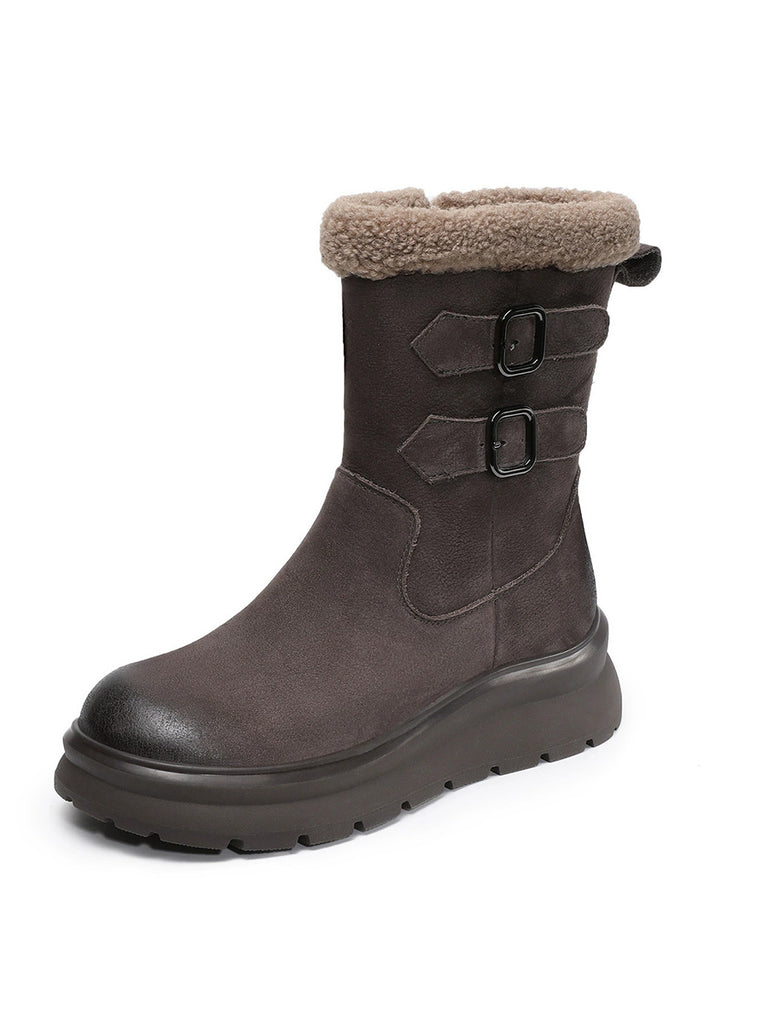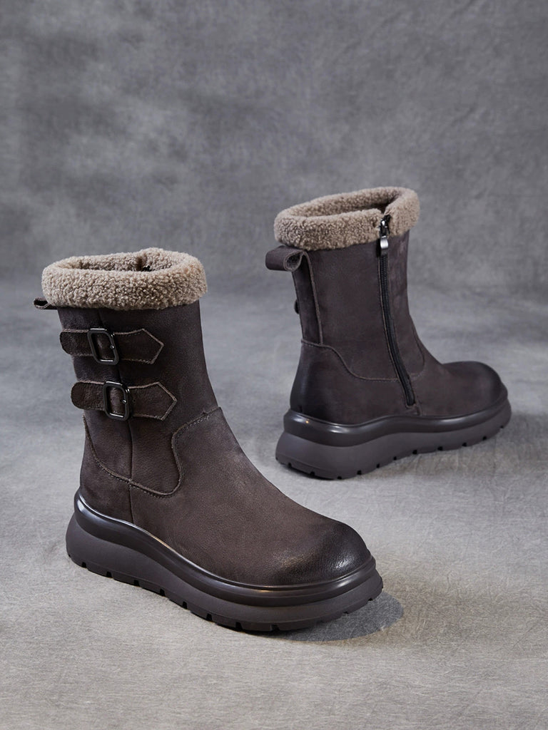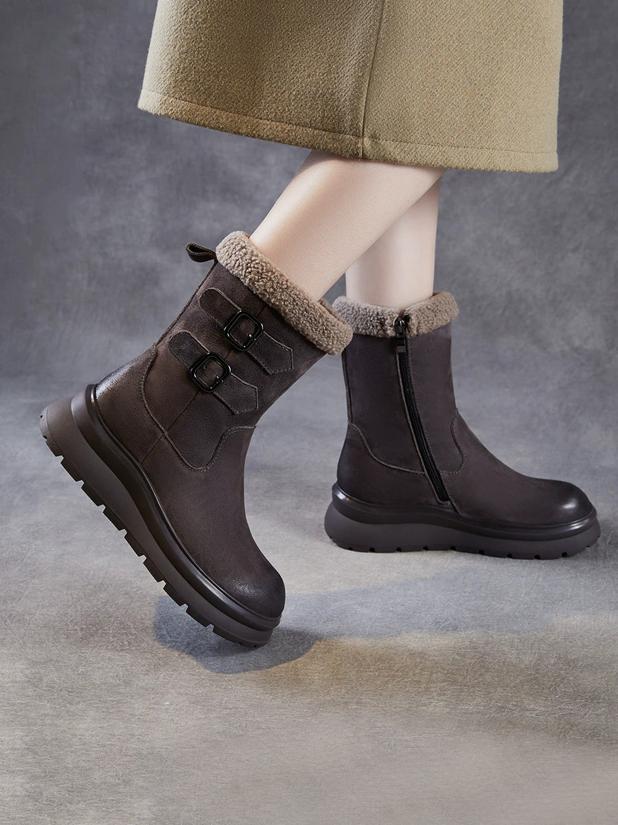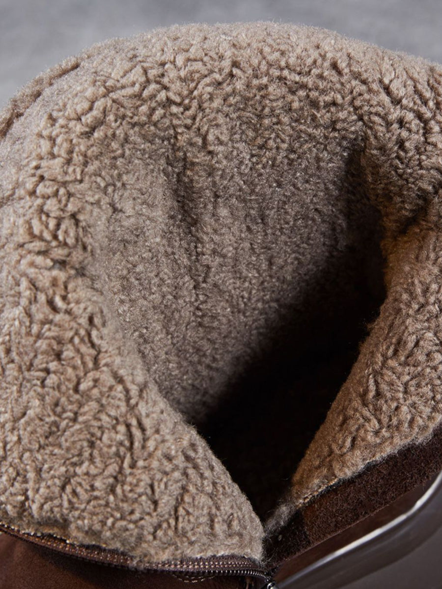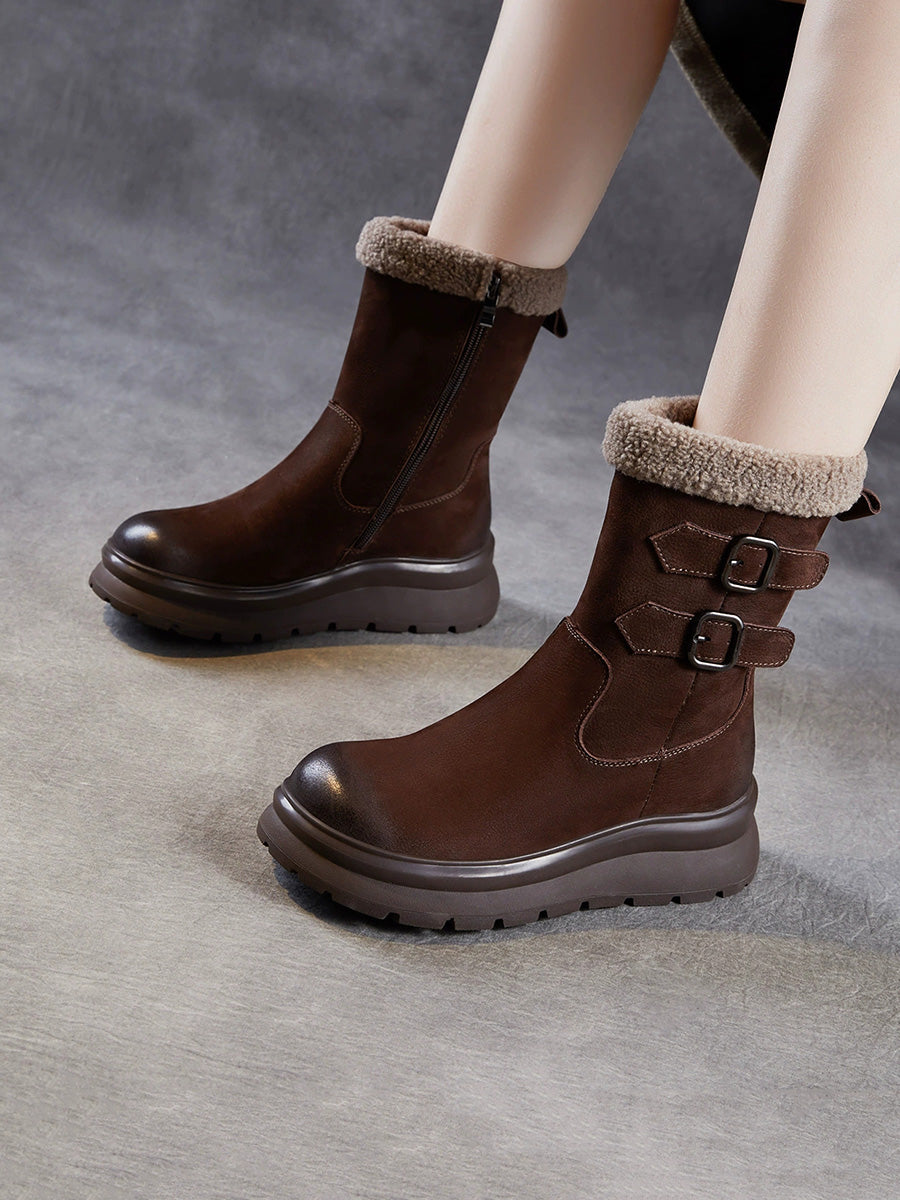 レディース 冬用 本革 フリース裏地 ミドルヒールブーツ