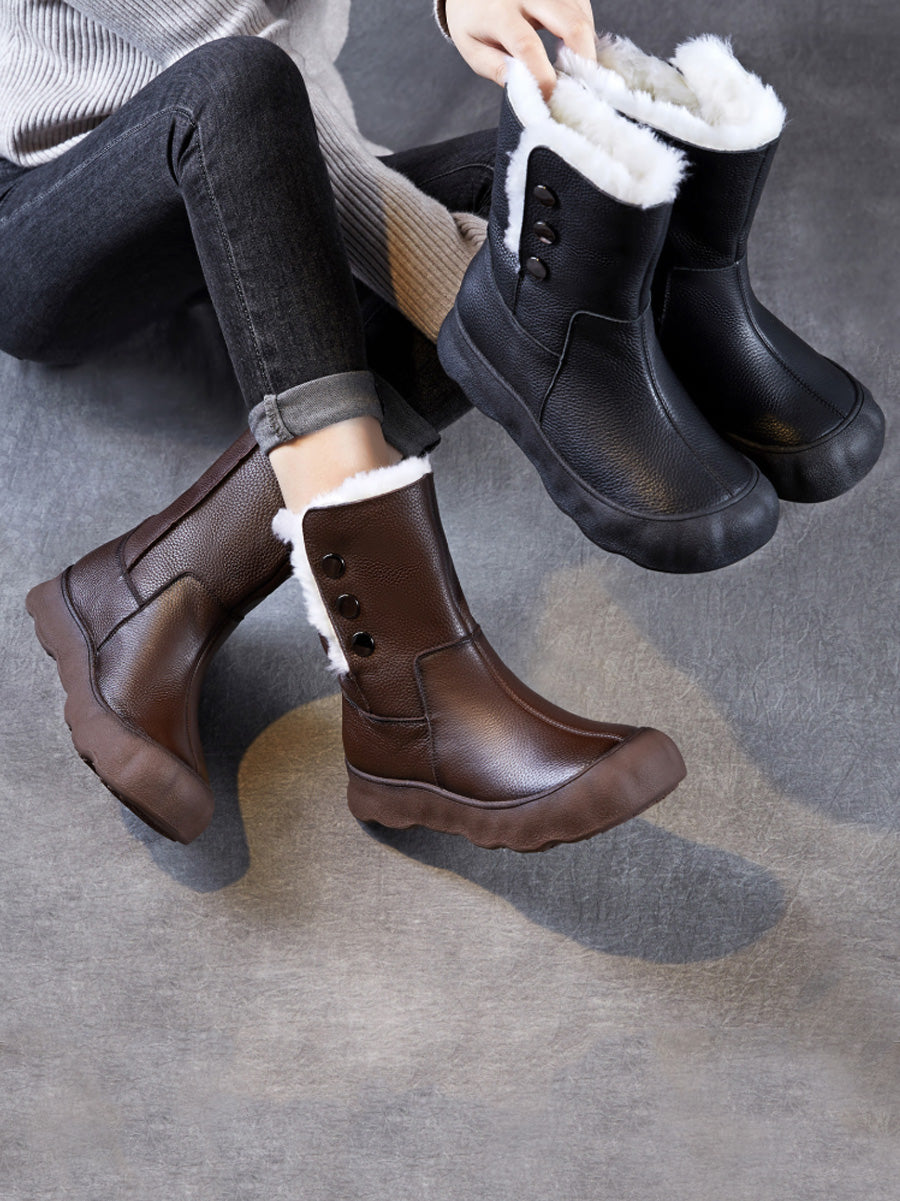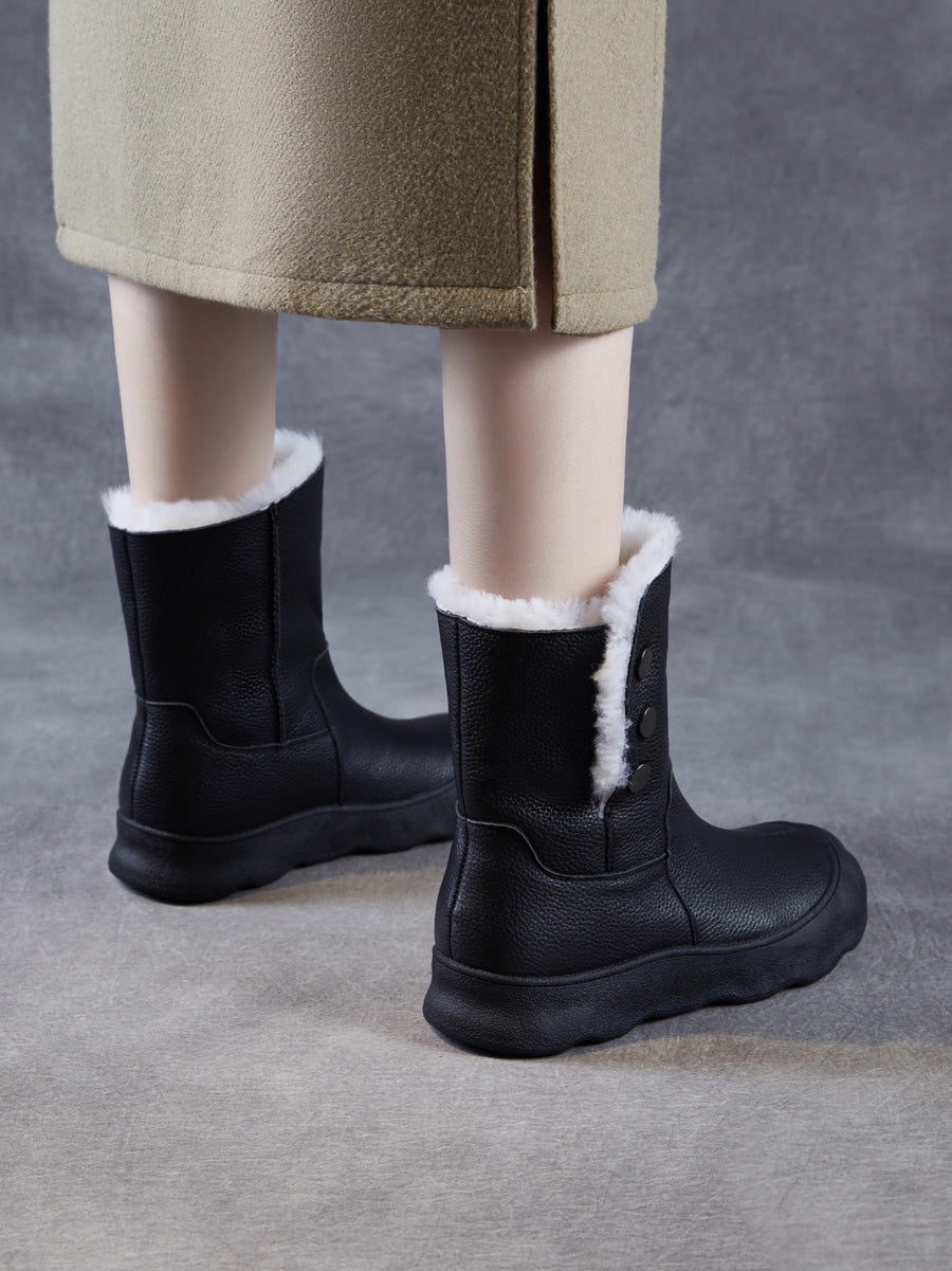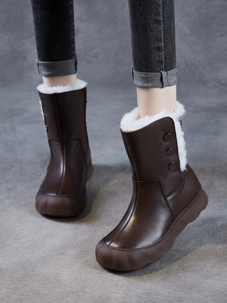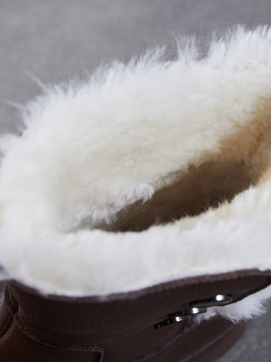 レディース 冬用 本革 フリース裏地 ミドルヒールブーツ