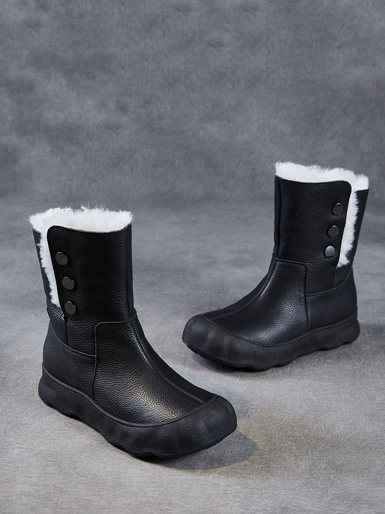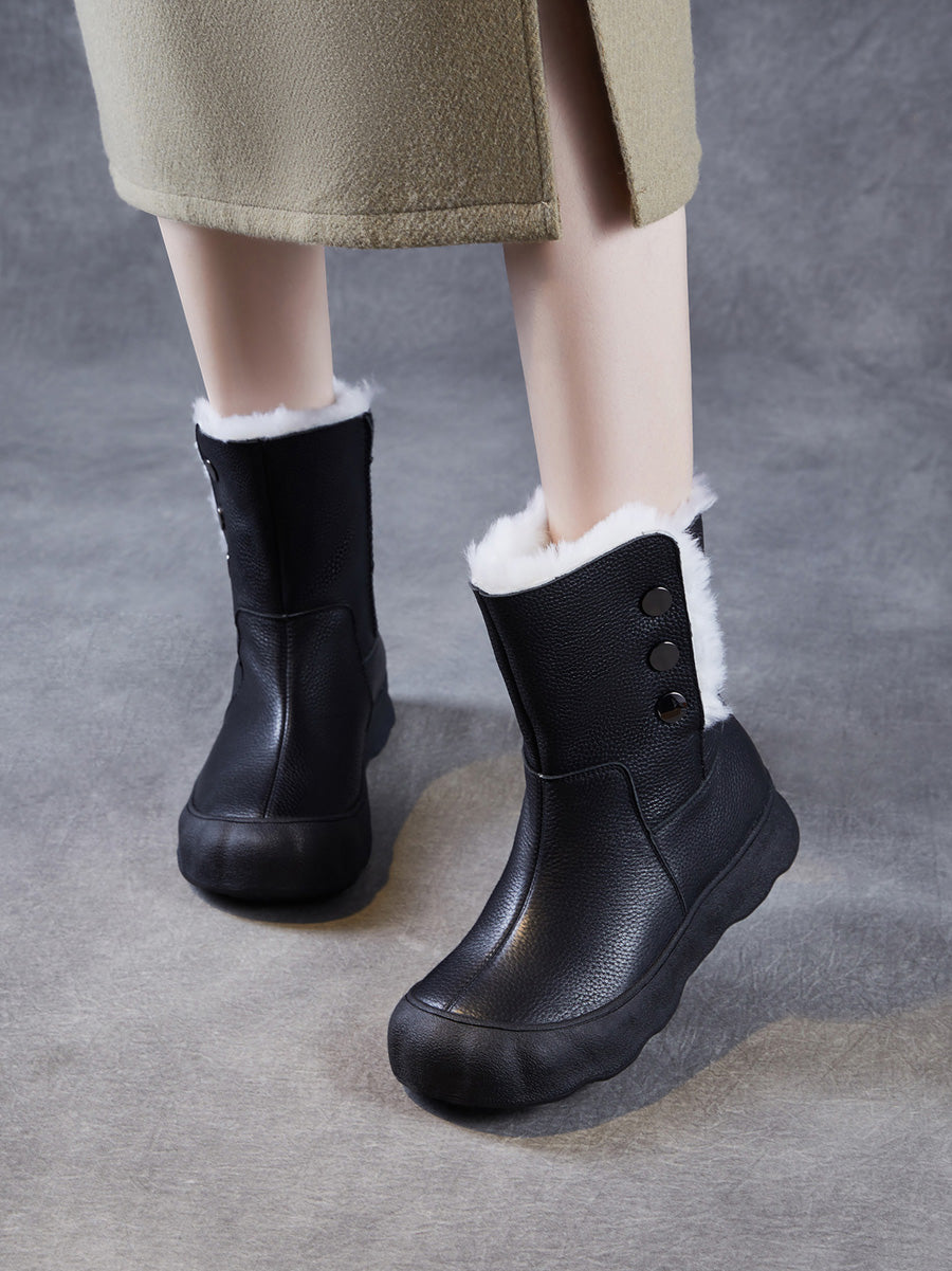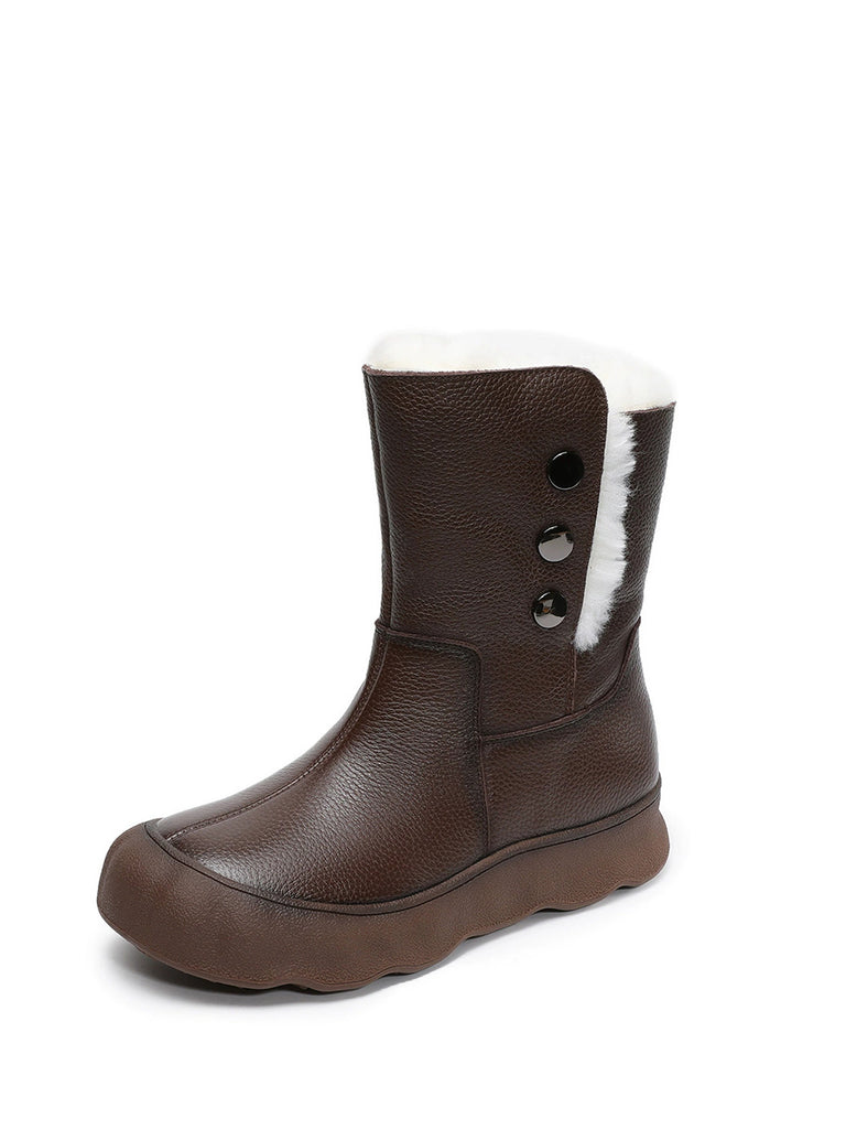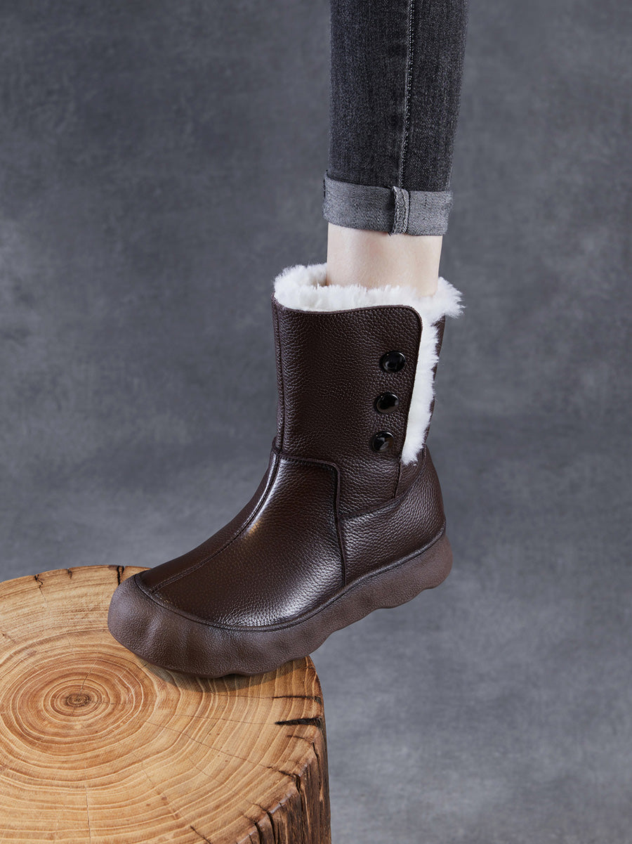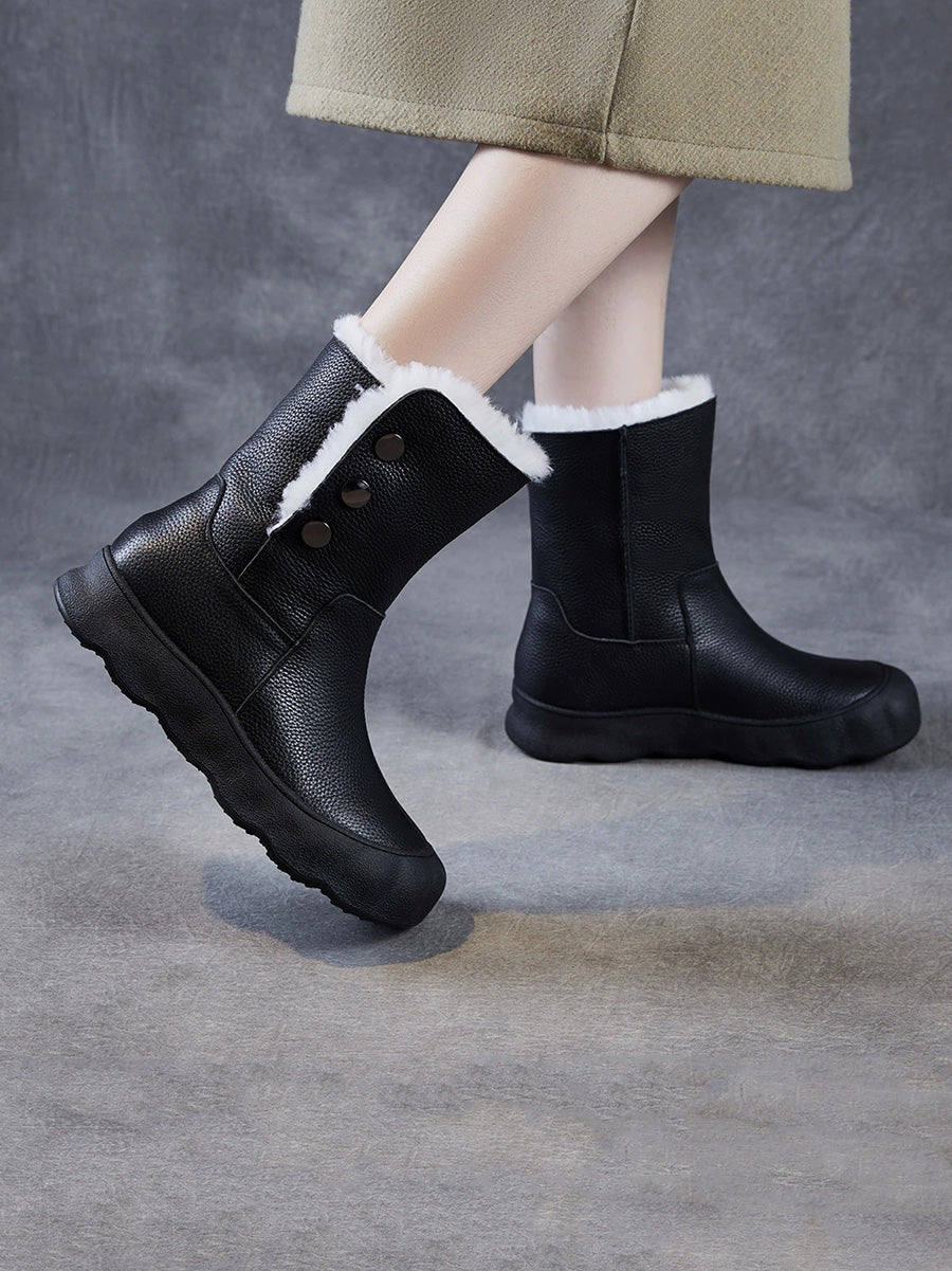レディース 冬用 本革 フリース裏地 ミドルヒールブーツ