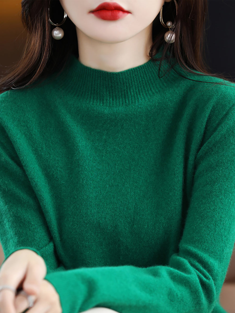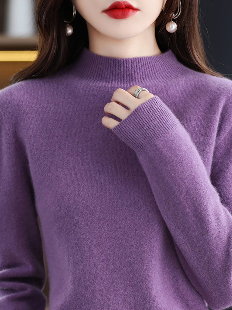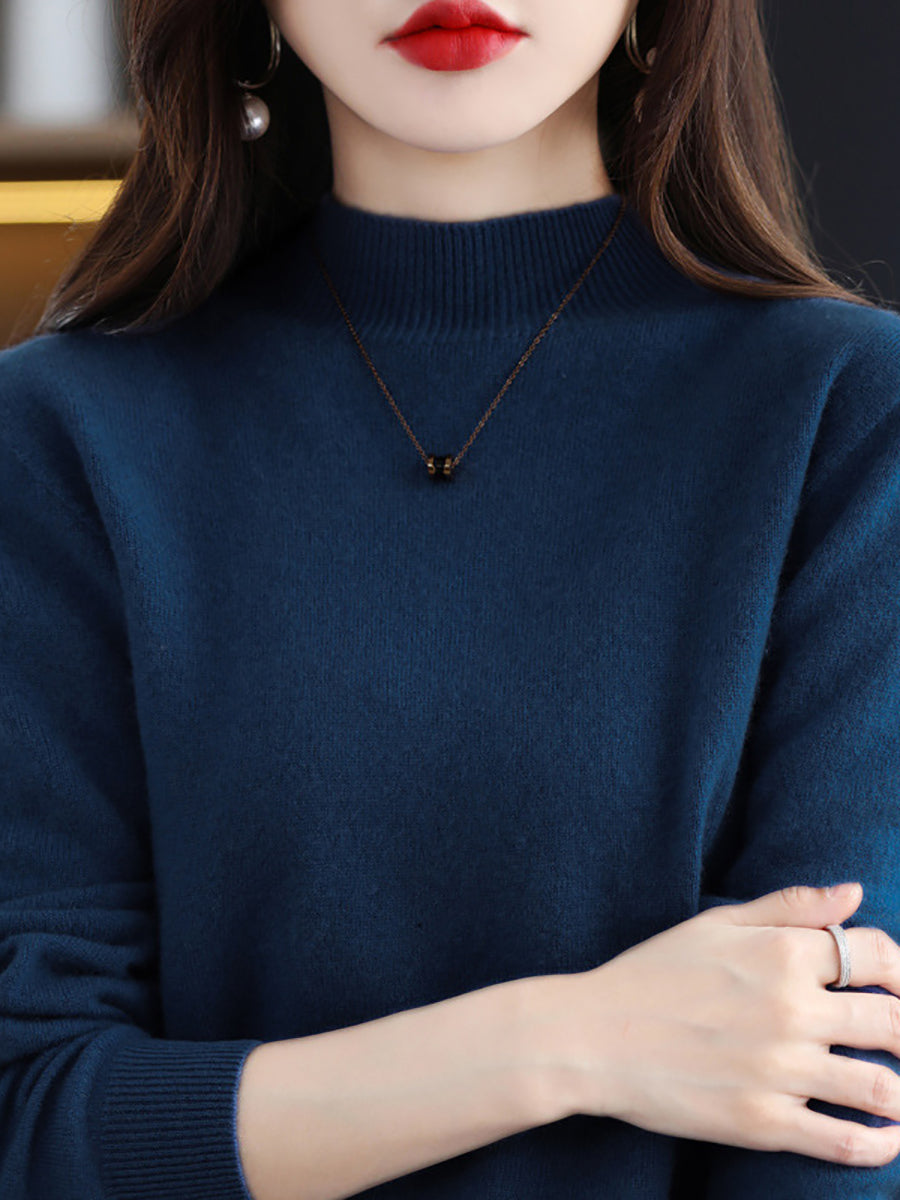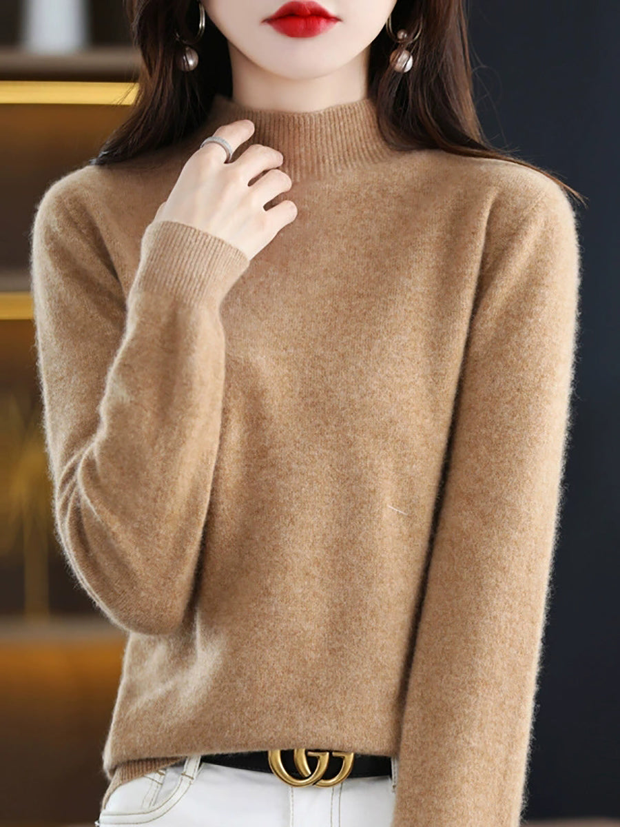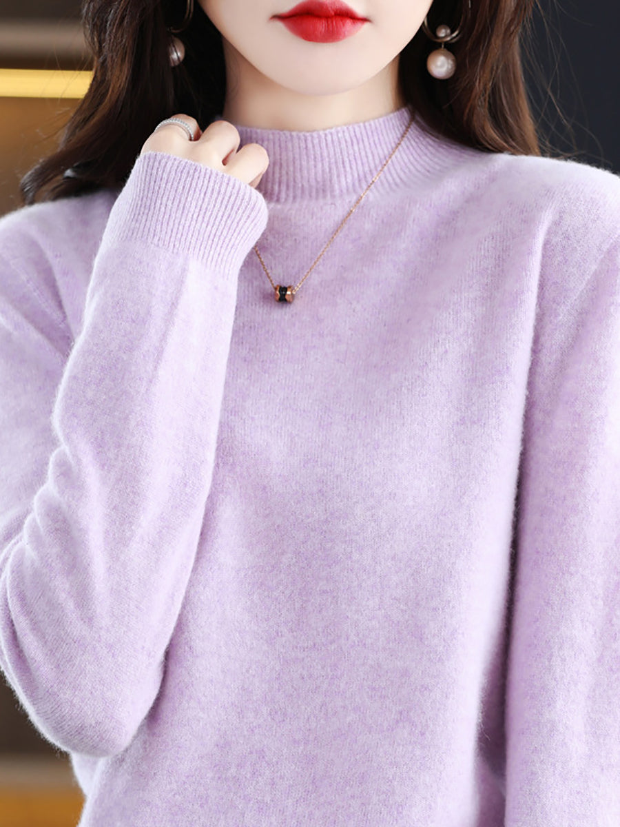 レディース 冬用 ハーフタートルネック ニットウールセーター