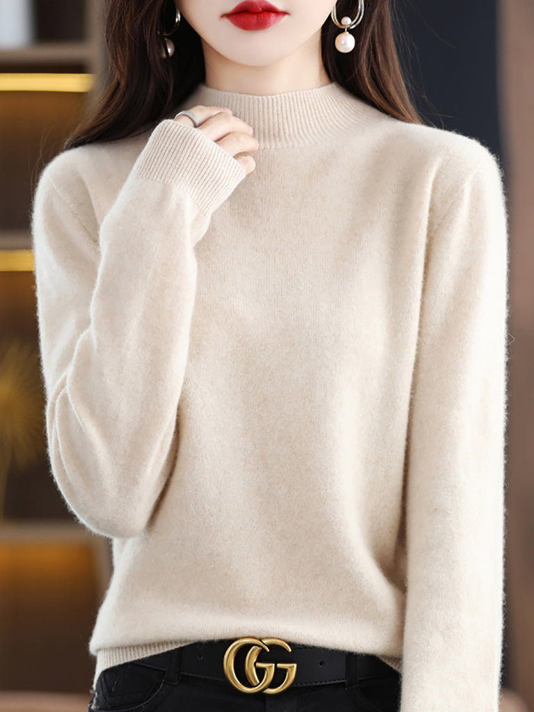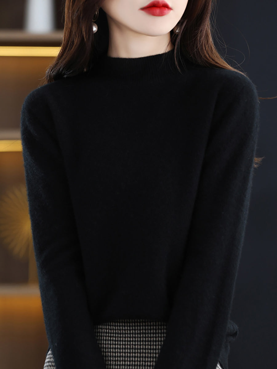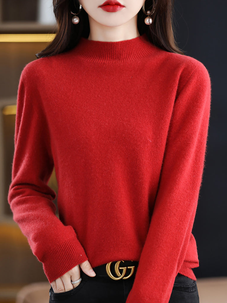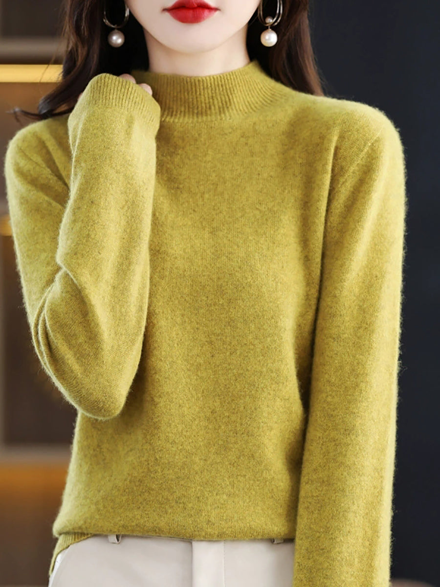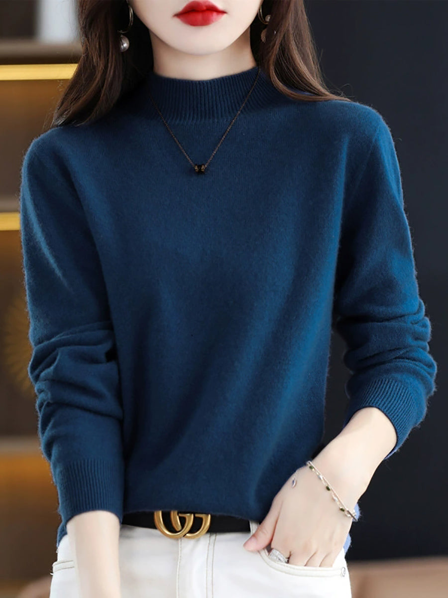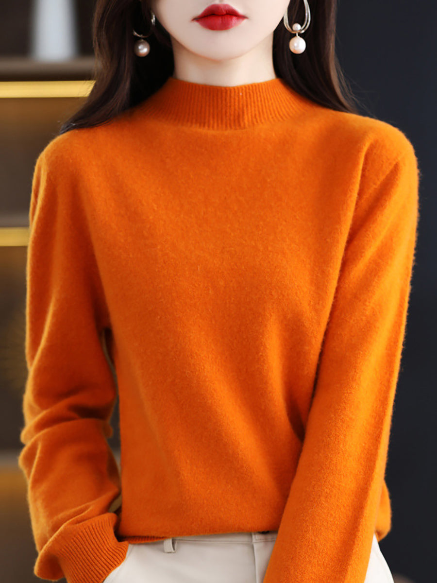 レディース 冬用 ハーフタートルネック ニットウールセーター