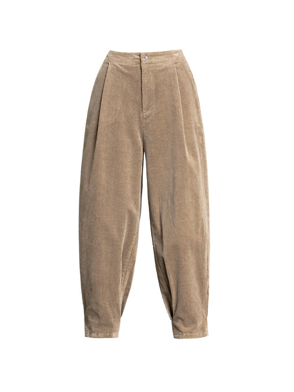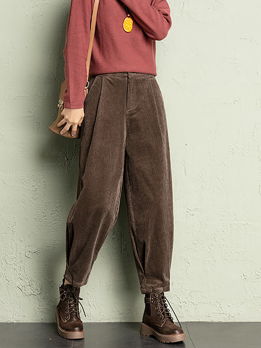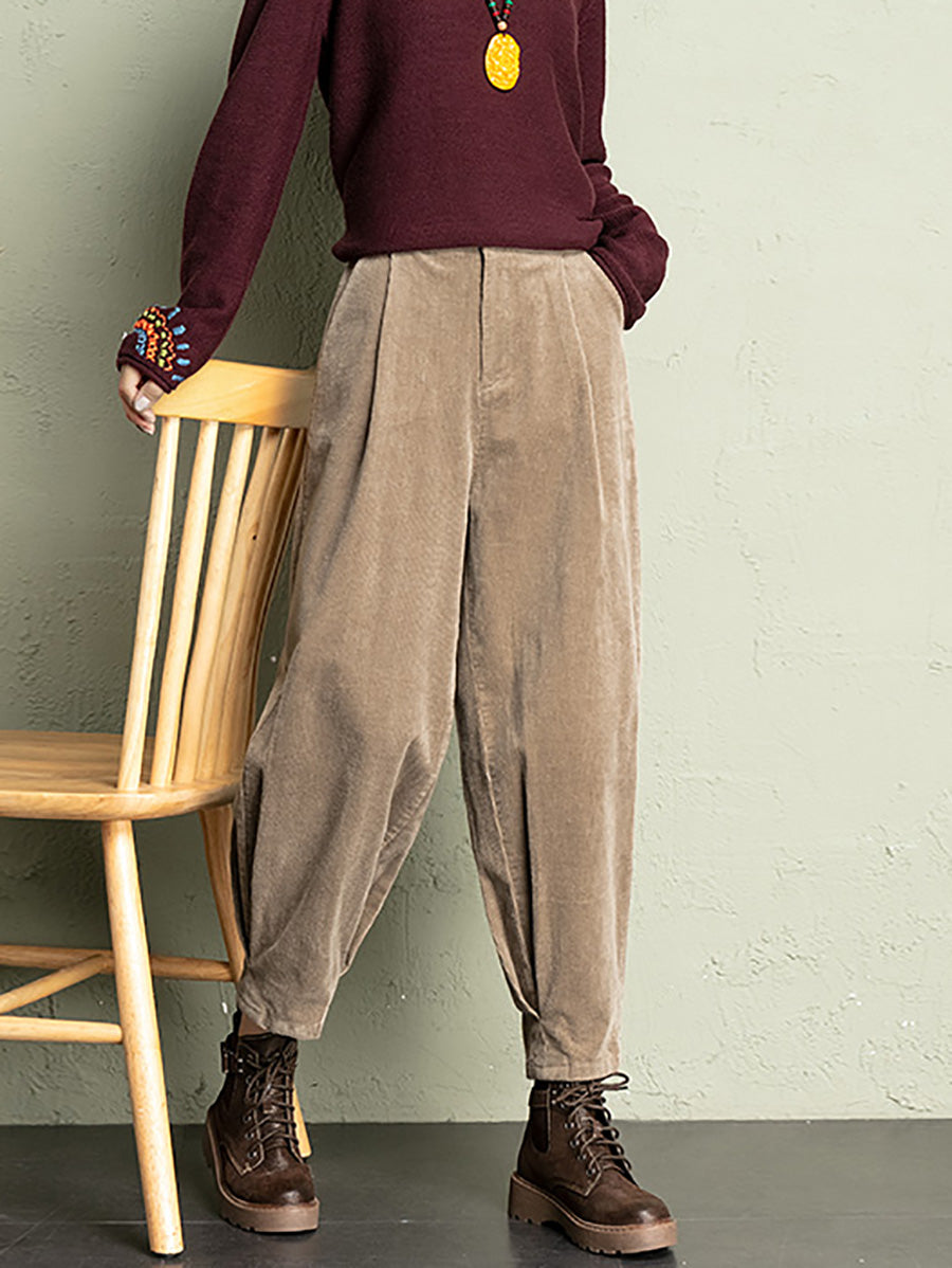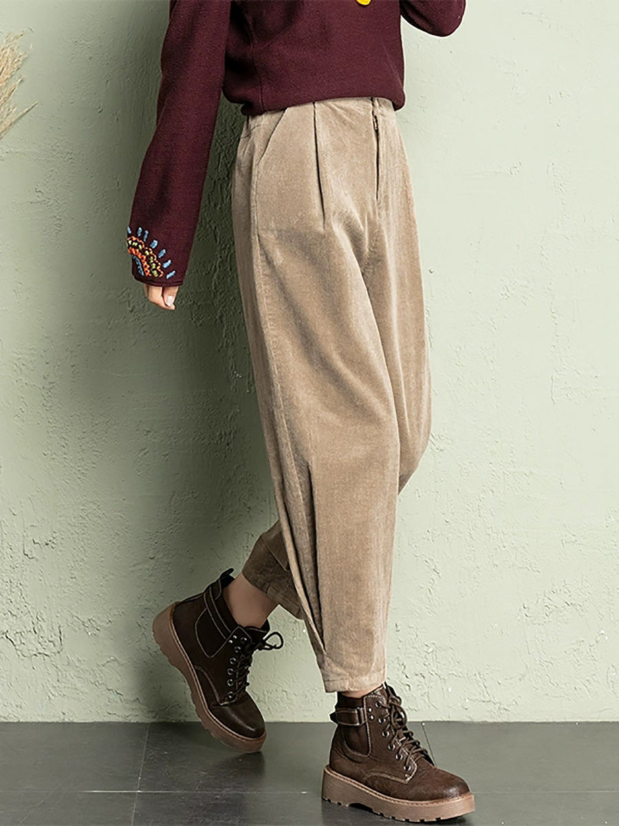 レディース 冬用 ピュアカラー コーデュロイ ハーレムパンツ