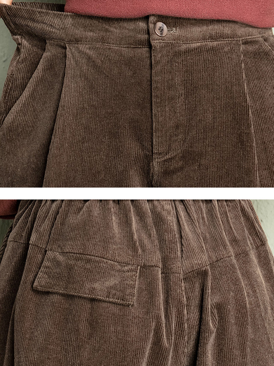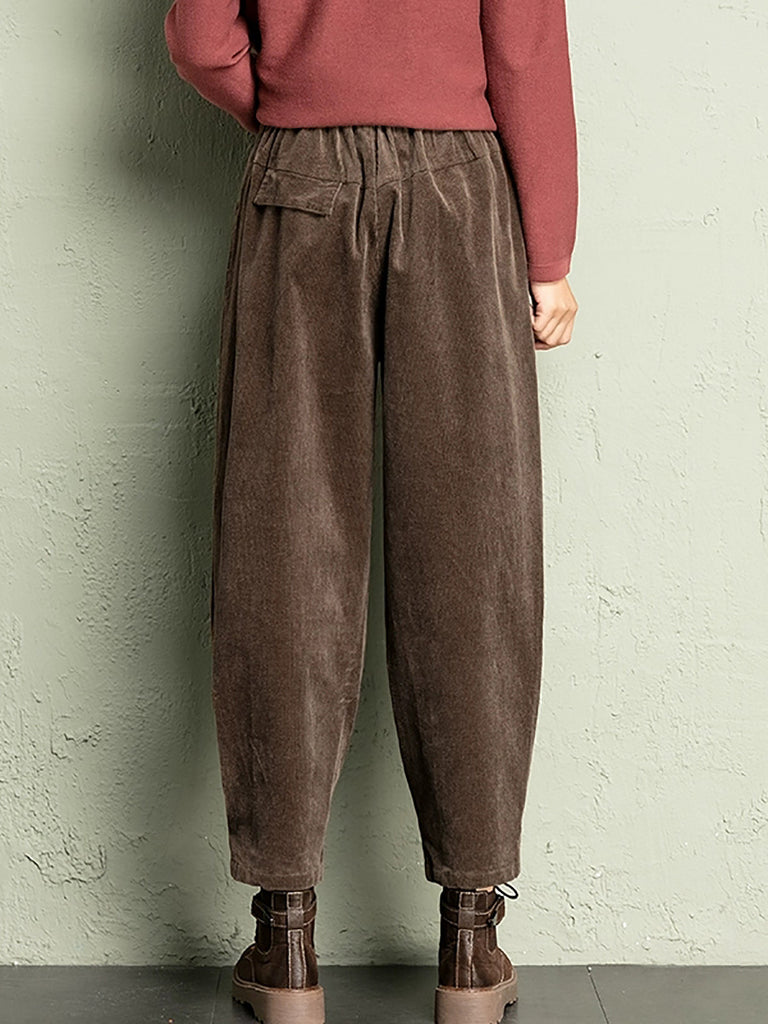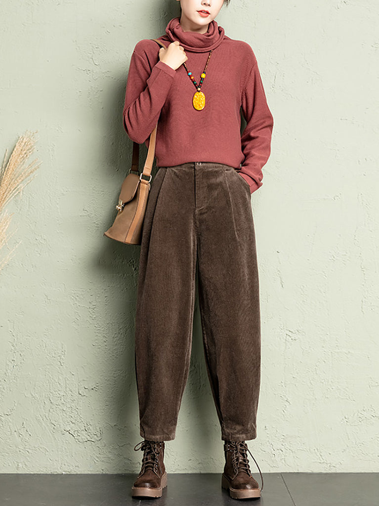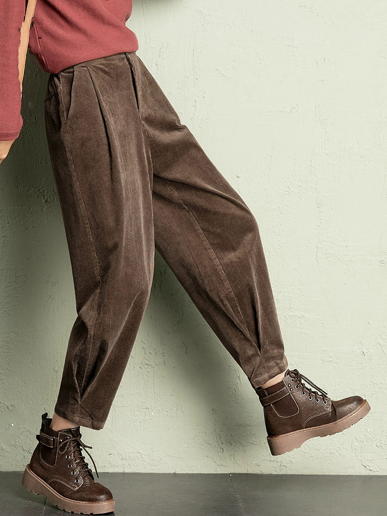 レディース 冬用 ピュアカラー コーデュロイ ハーレムパンツ