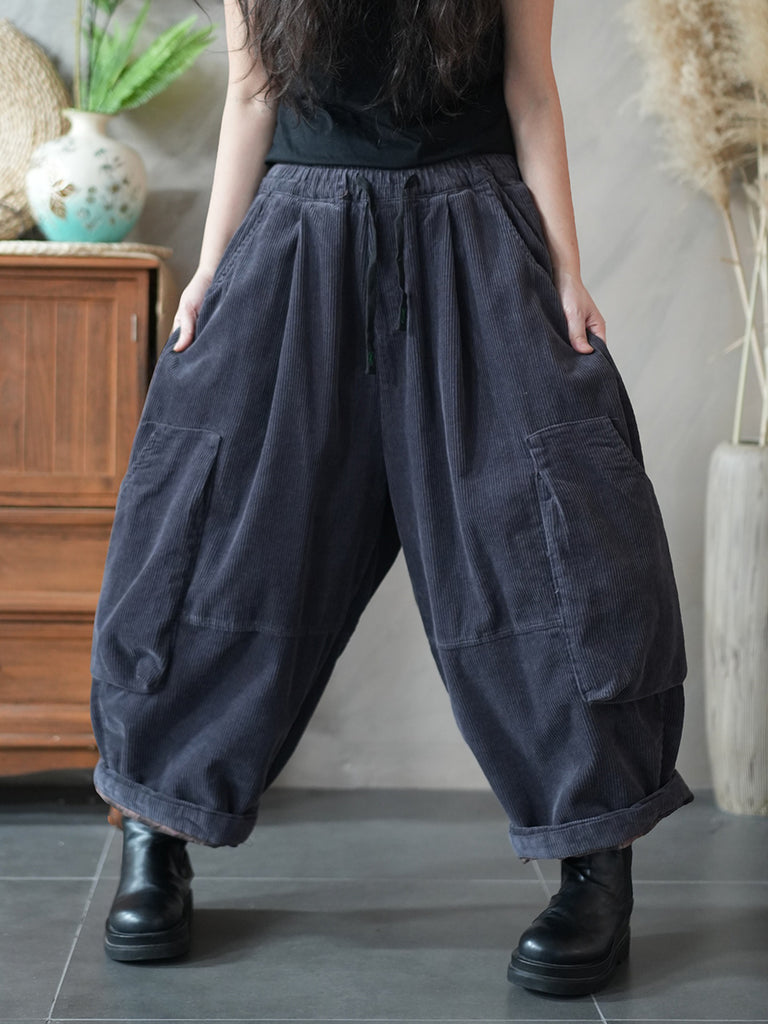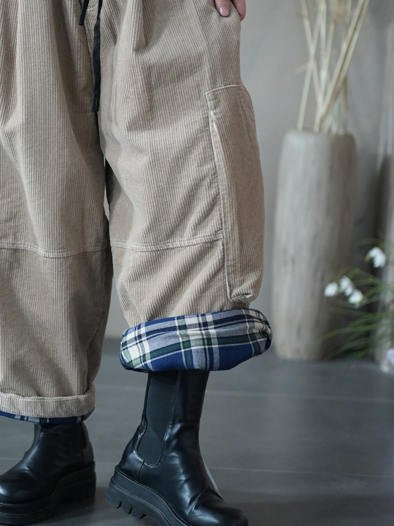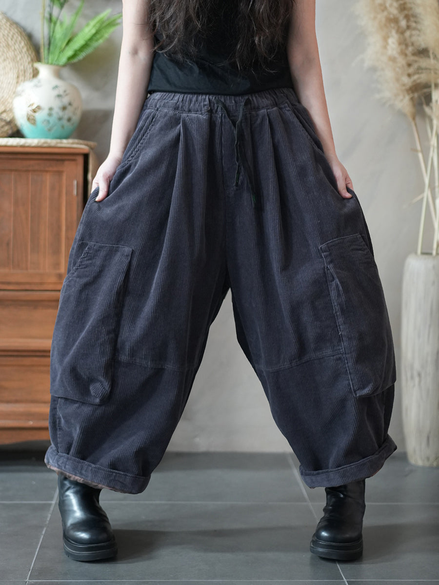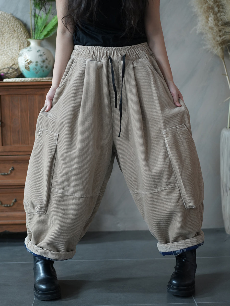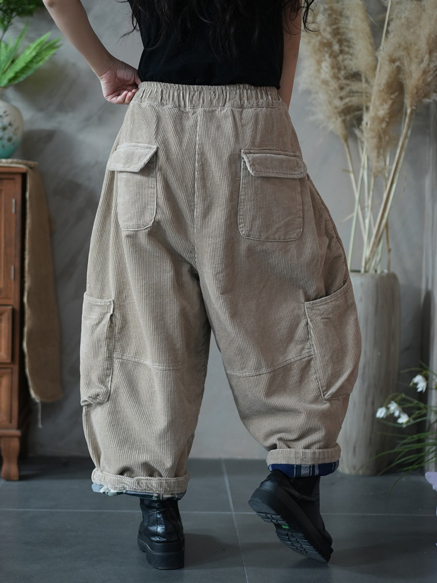 レディース 冬用 ピュアカラー コーデュロイ パッド入り ハーレムパンツ