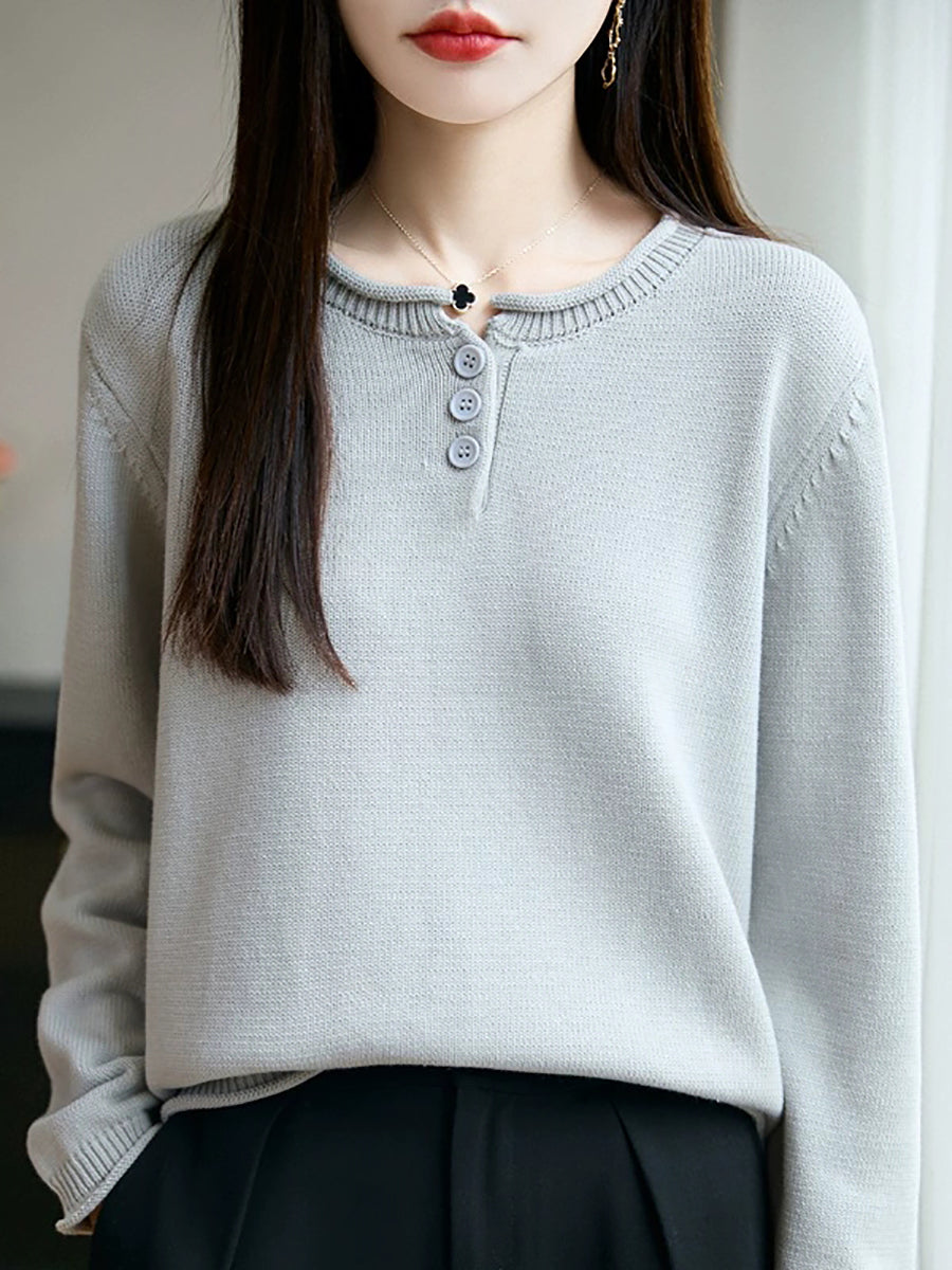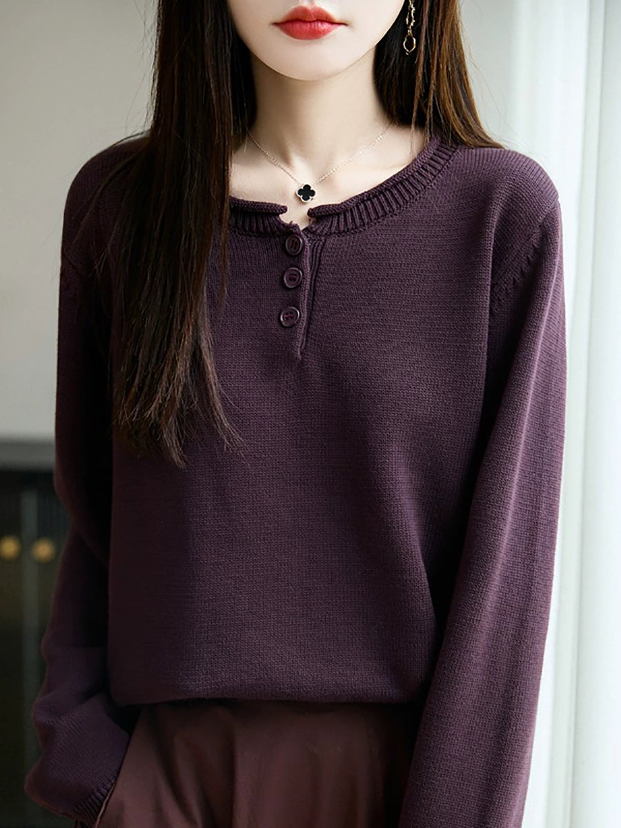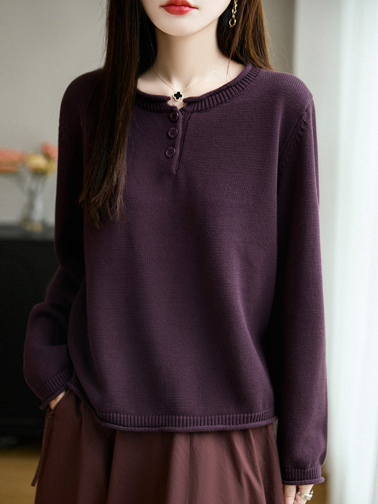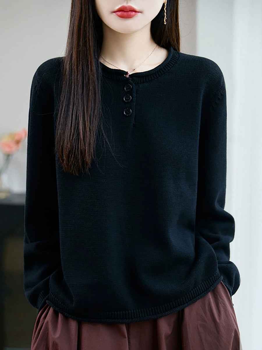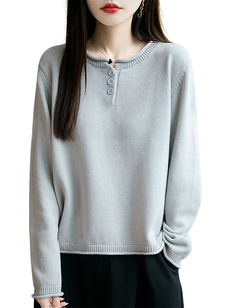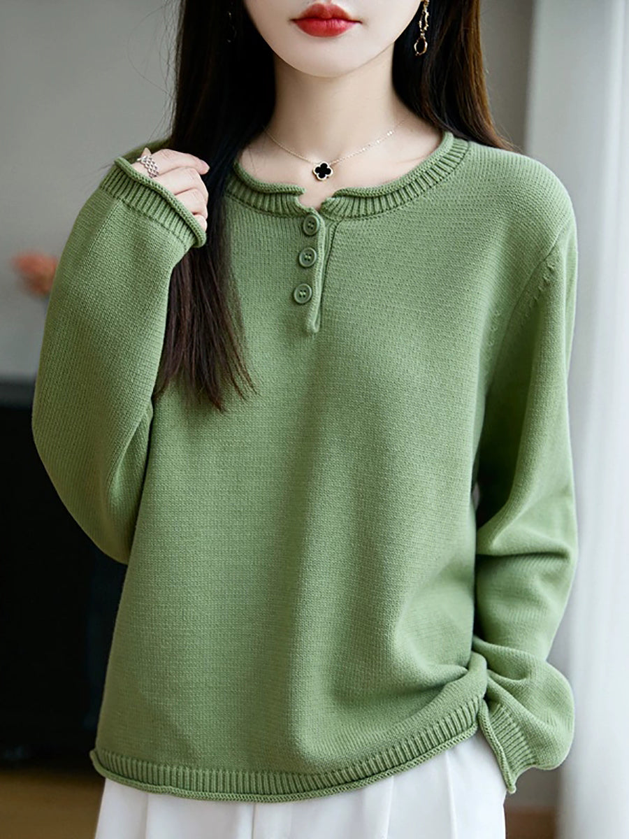 レディース 冬用 ピュアカラー Oネック ニット 100%コットン セーター