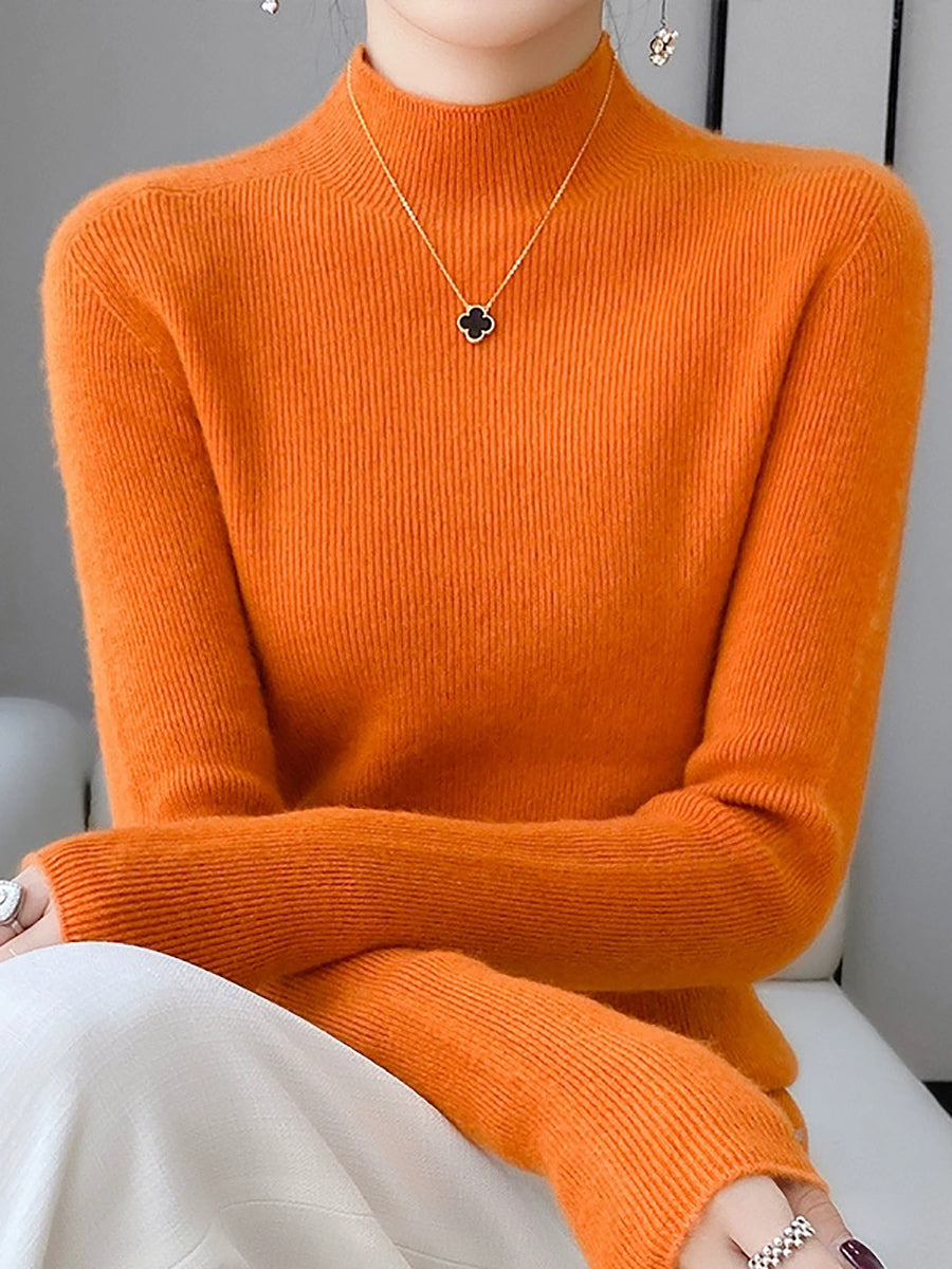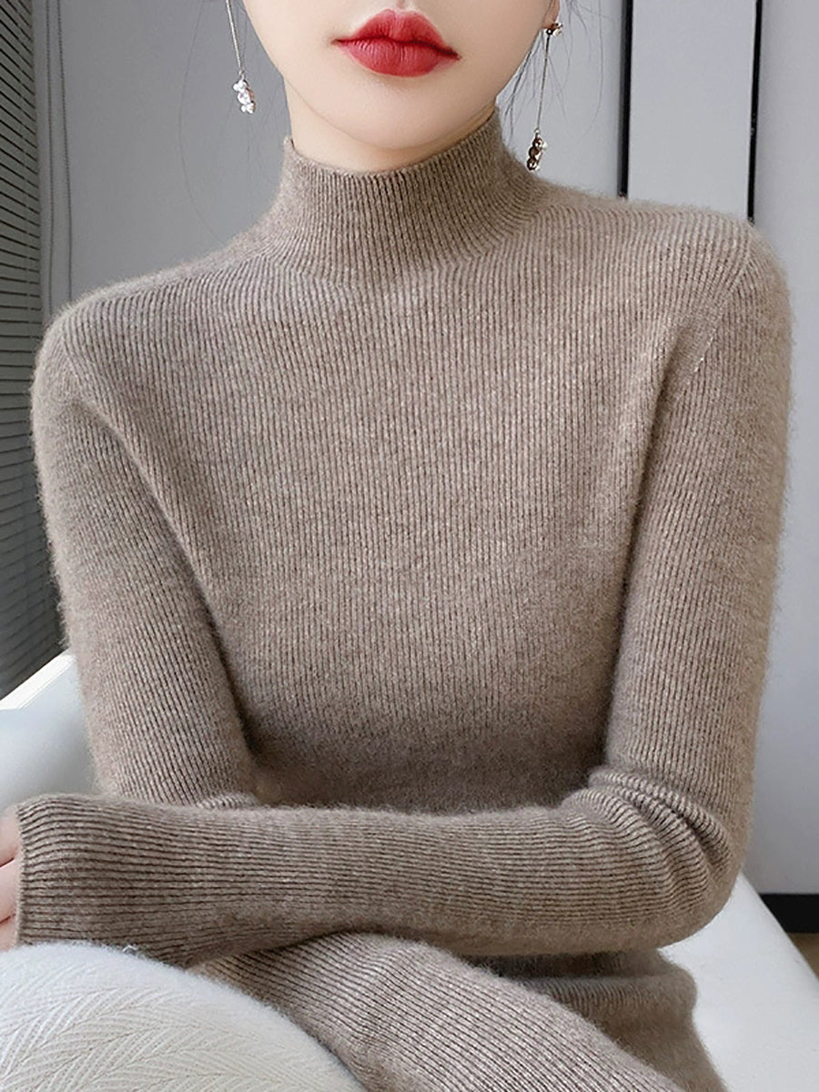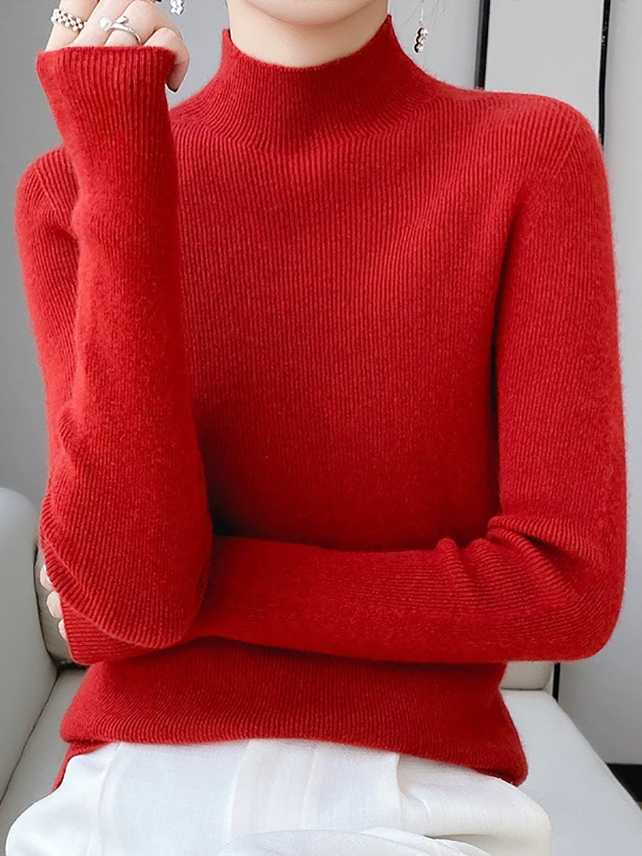 レディース 冬用 ピュアカラー ウール ハーフタートルネック セーター