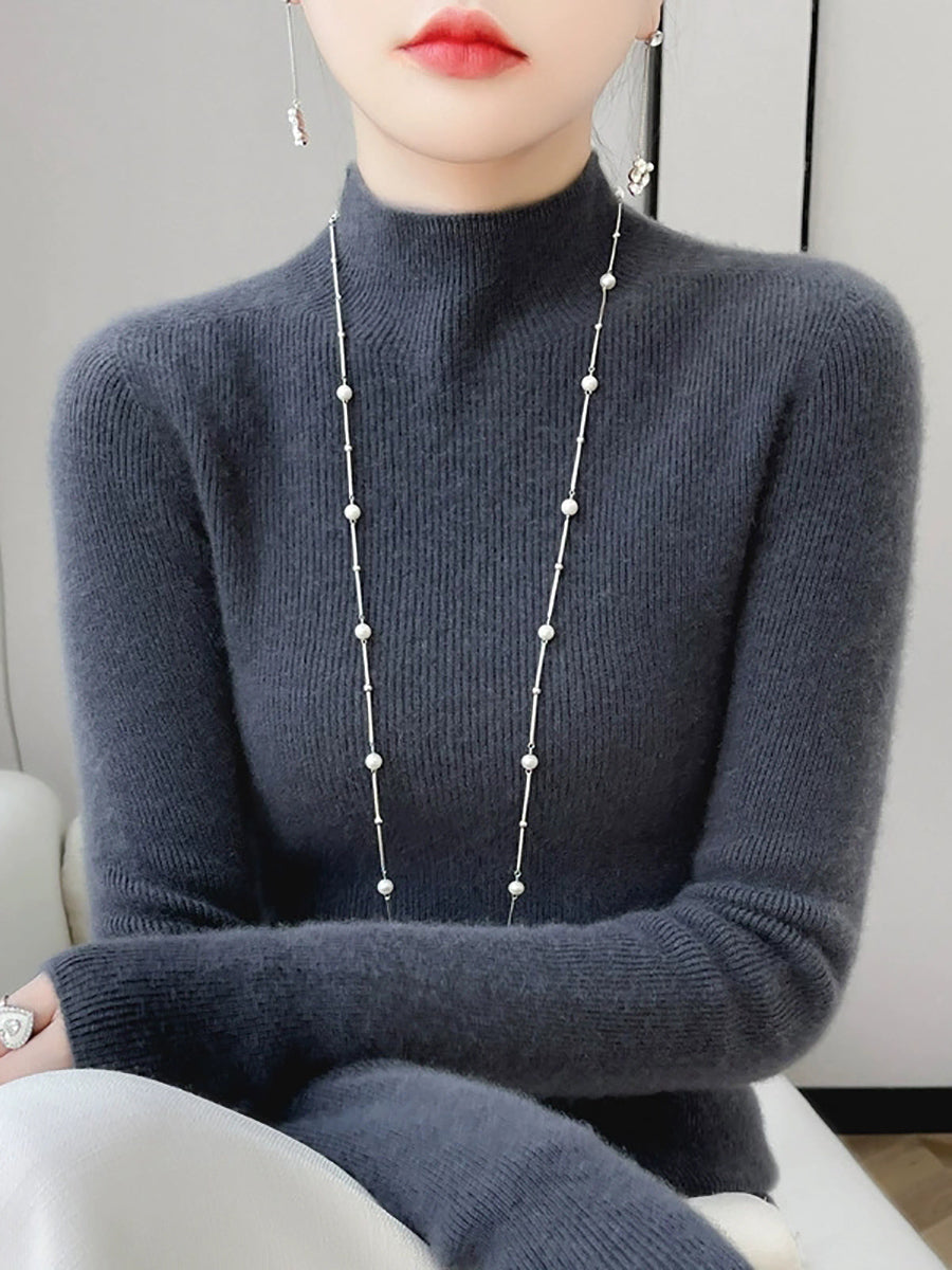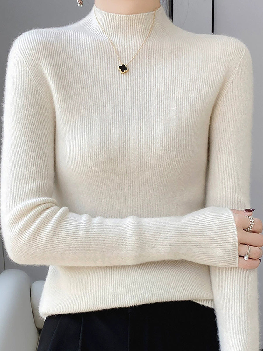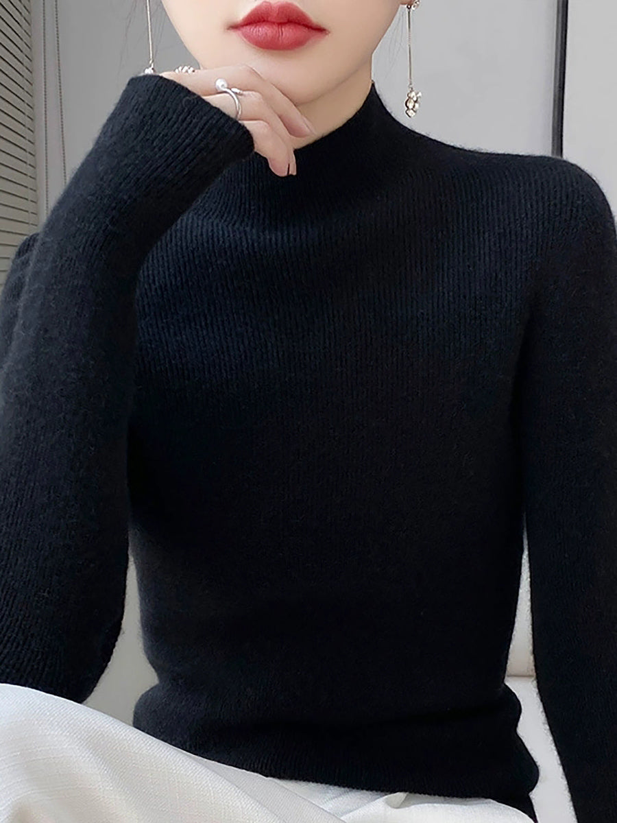 レディース 冬用 ピュアカラー ウール ハーフタートルネック セーター