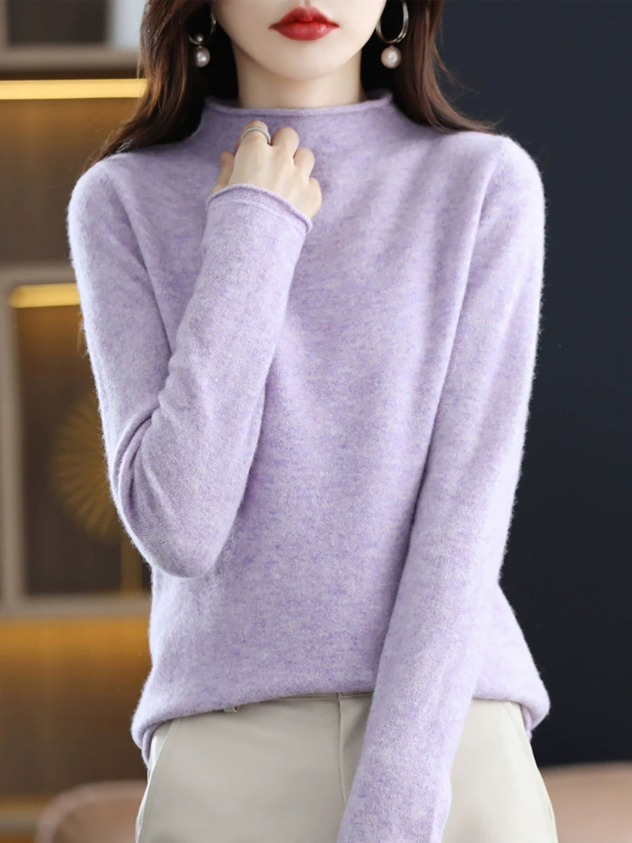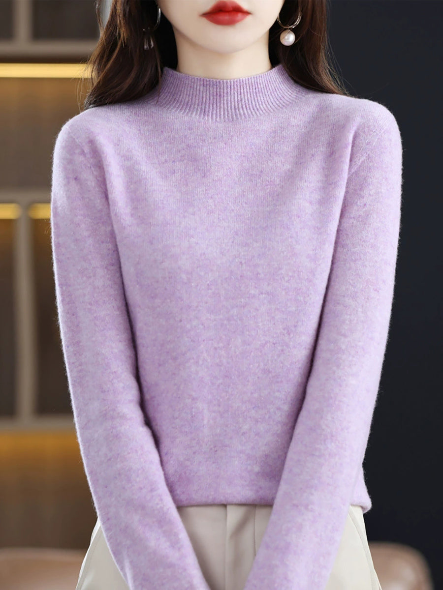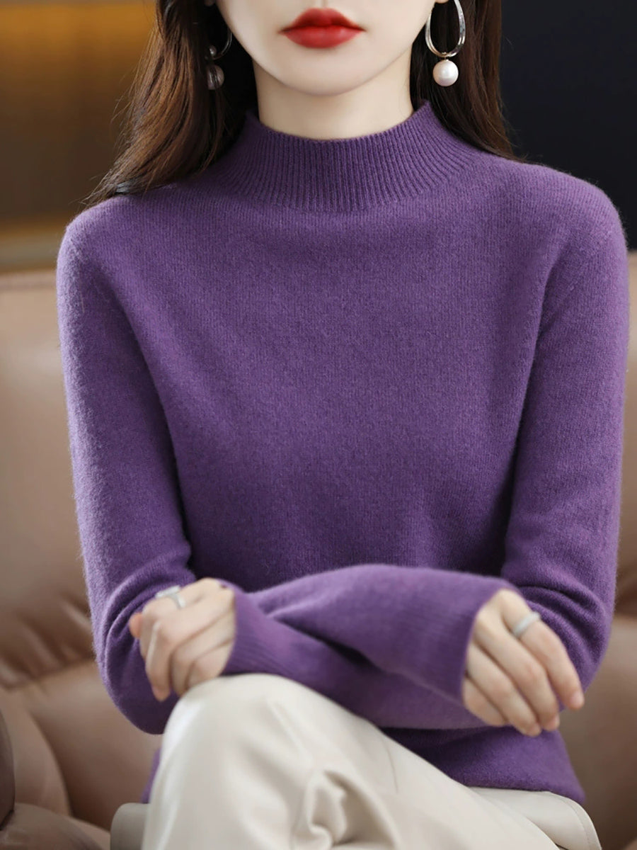 レディース 冬用 ピュアカラー ウール ハーフタートルネック セーター