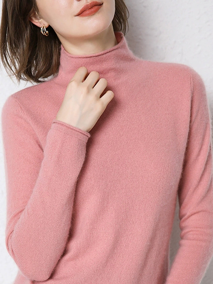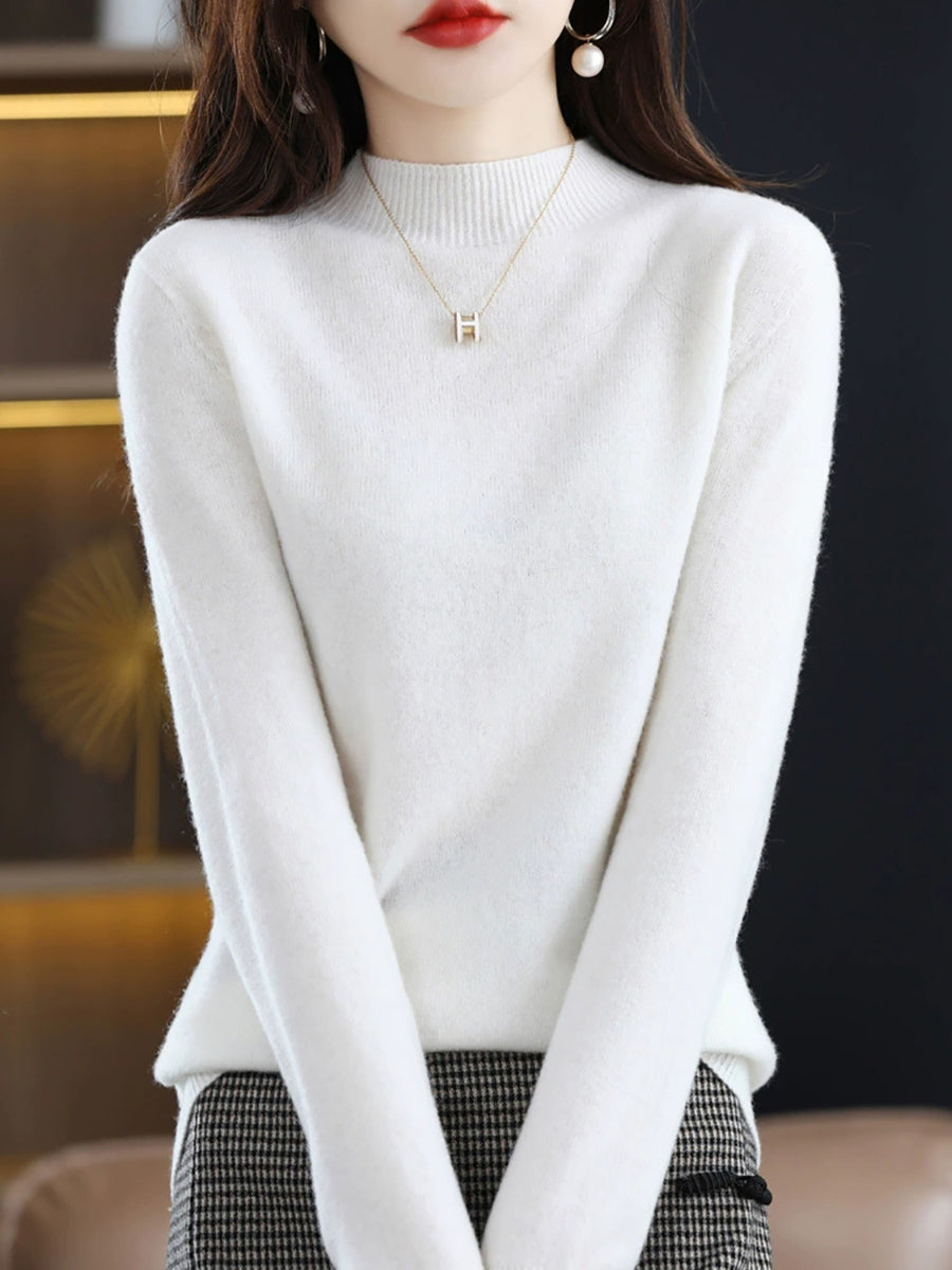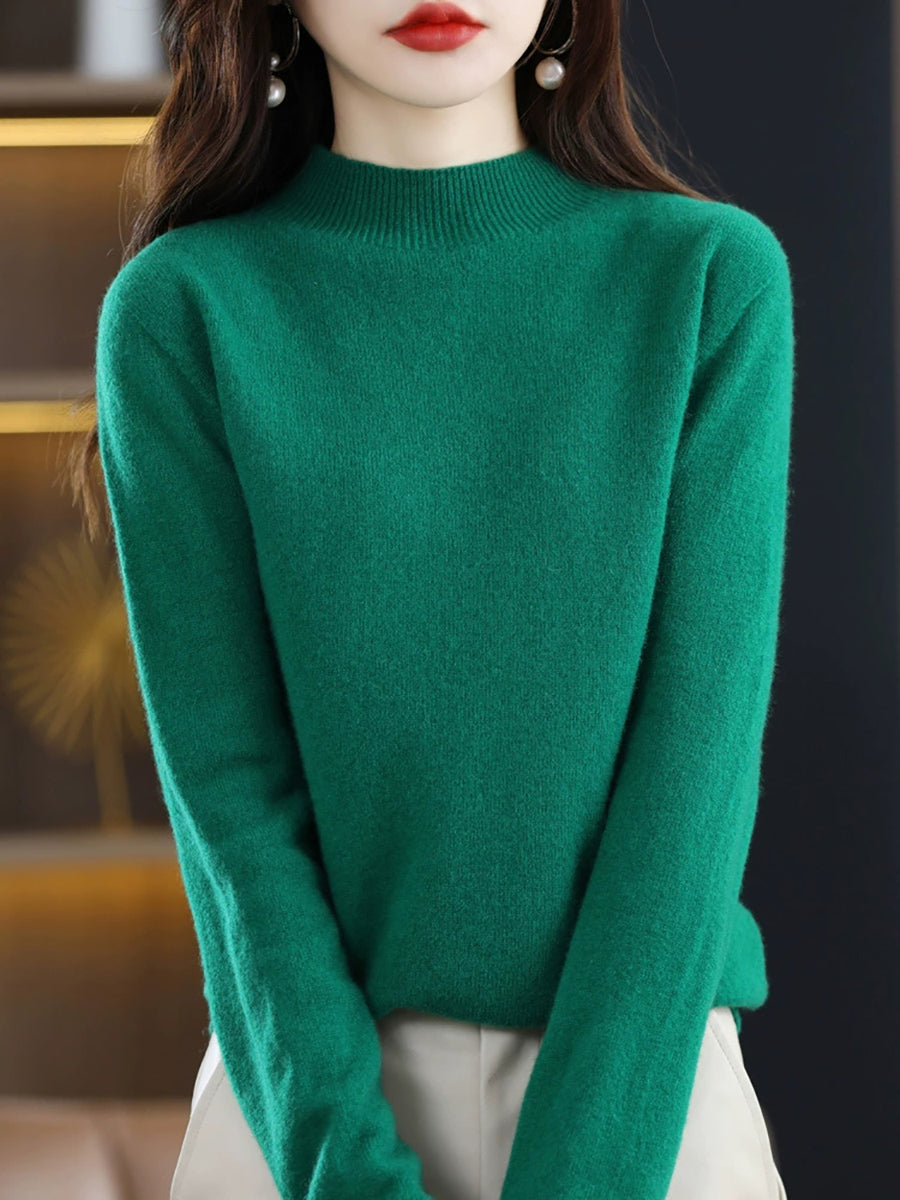 レディース 冬用 ピュアカラー ウール ハーフタートルネック セーター