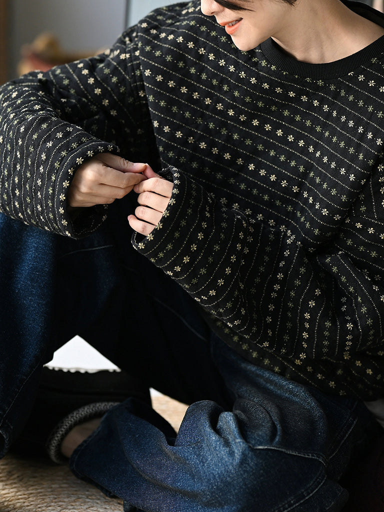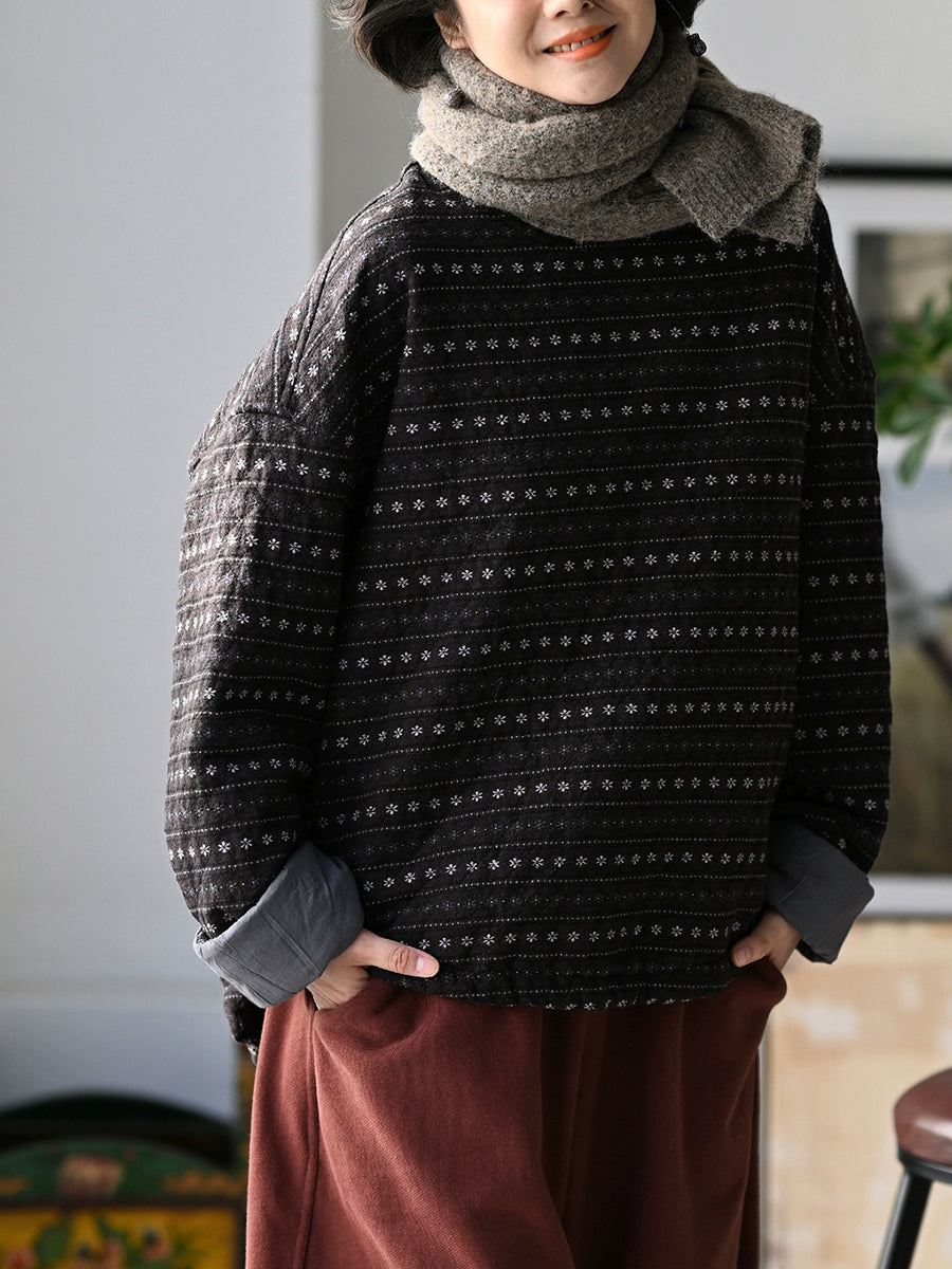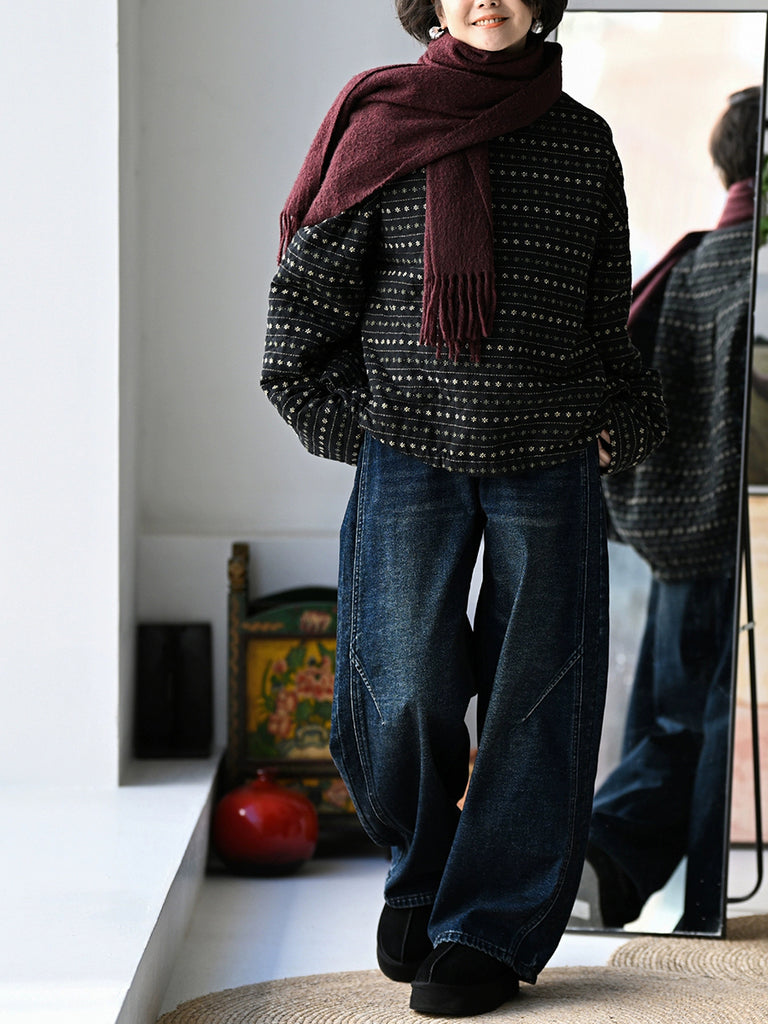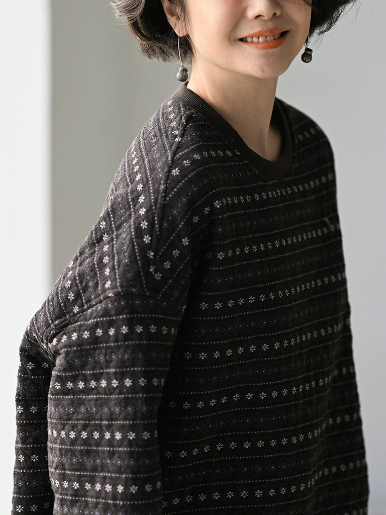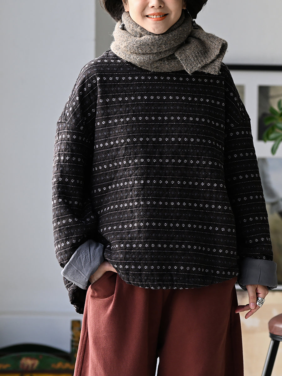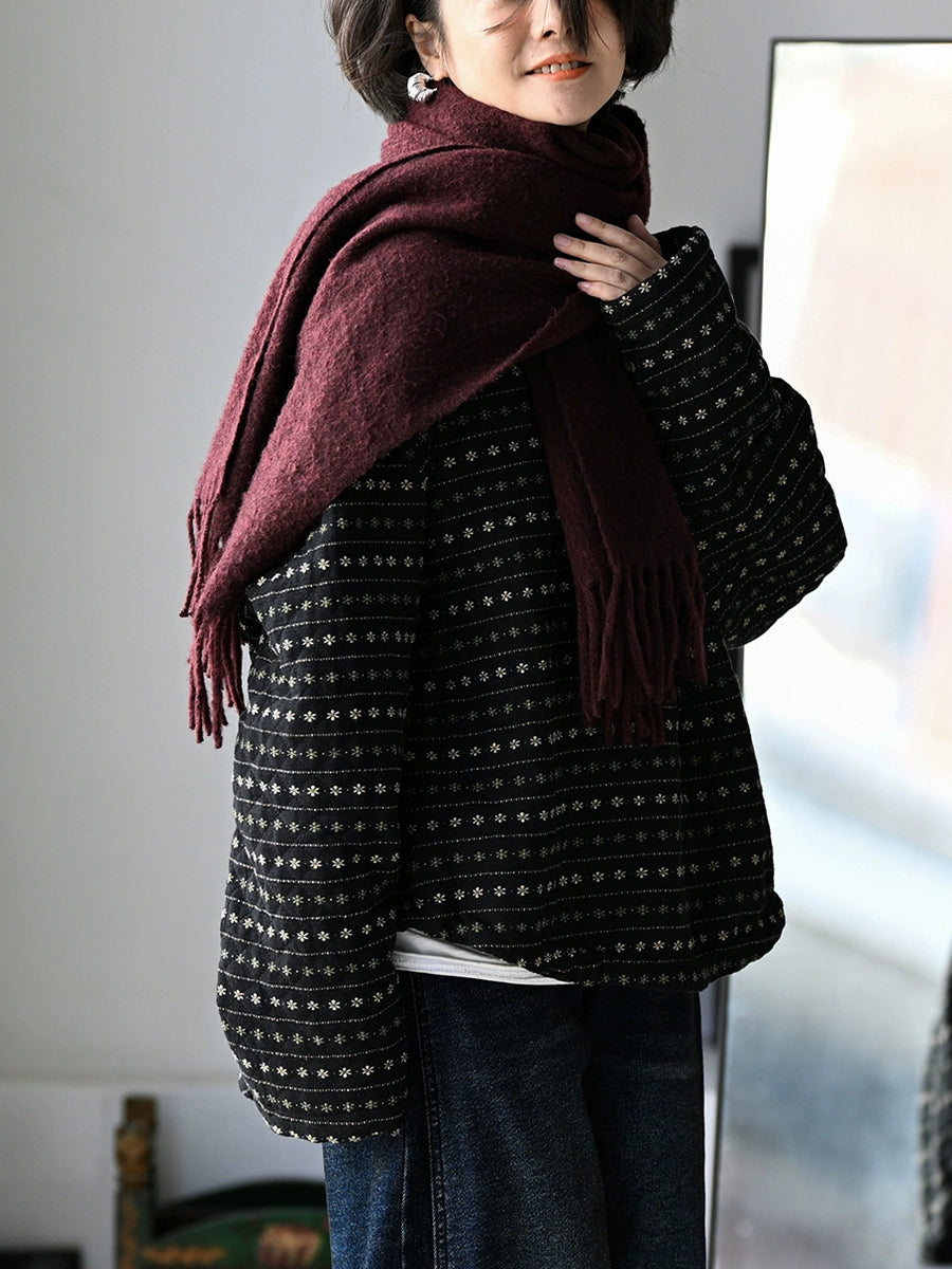 レディース 冬用 レトロフローラルストライプ Oネック パッド入りコート