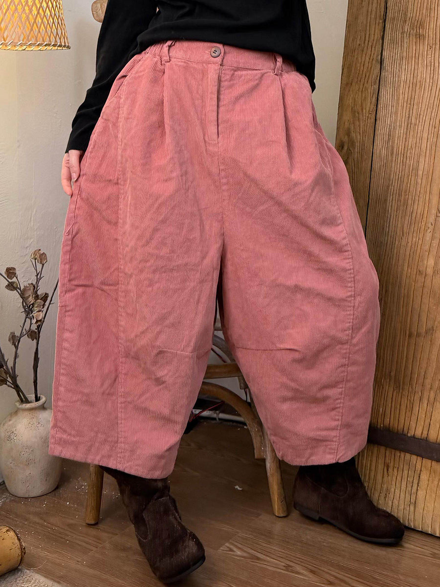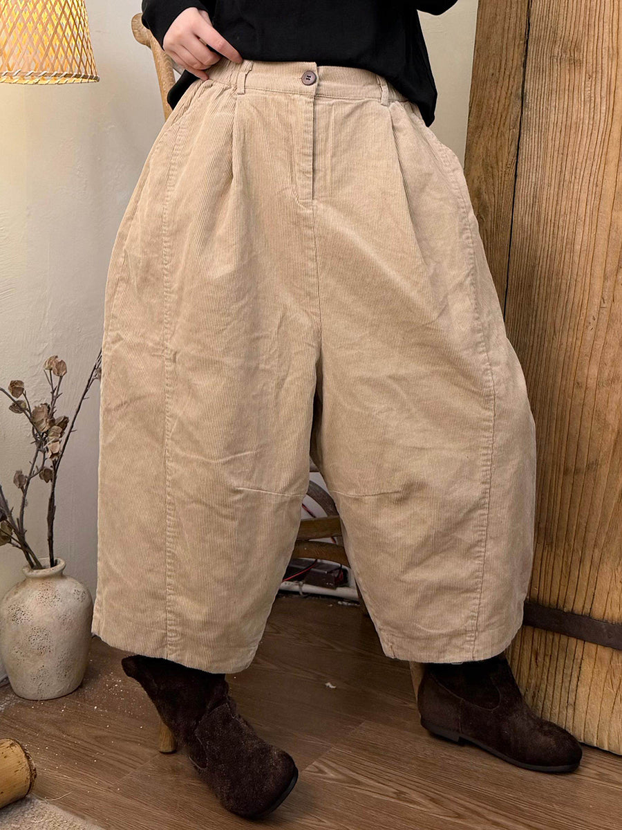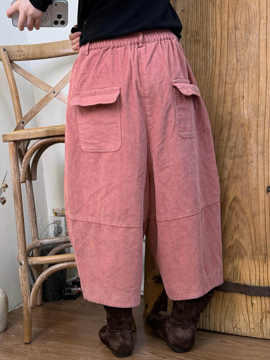 レディース 冬 レトロ ピュアカラー コーデュロイ ハーレムパンツ