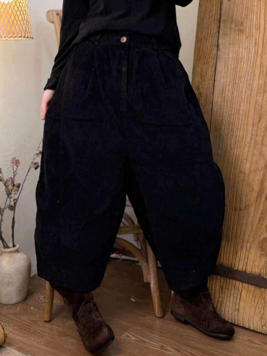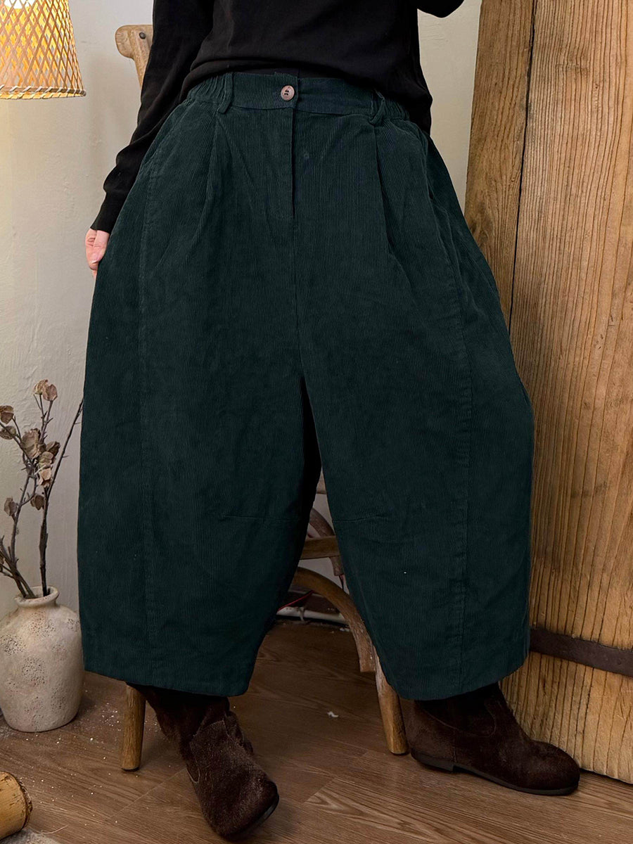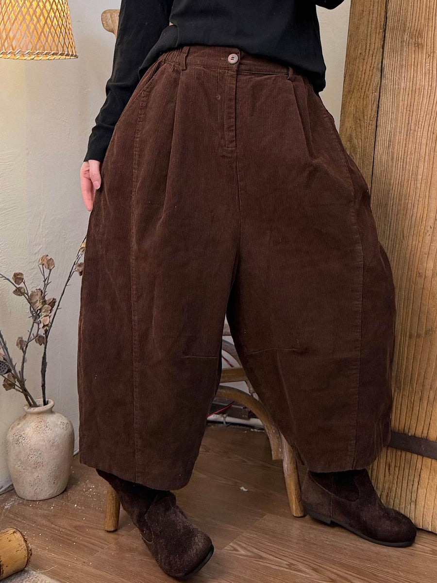 レディース 冬 レトロ ピュアカラー コーデュロイ ハーレムパンツ