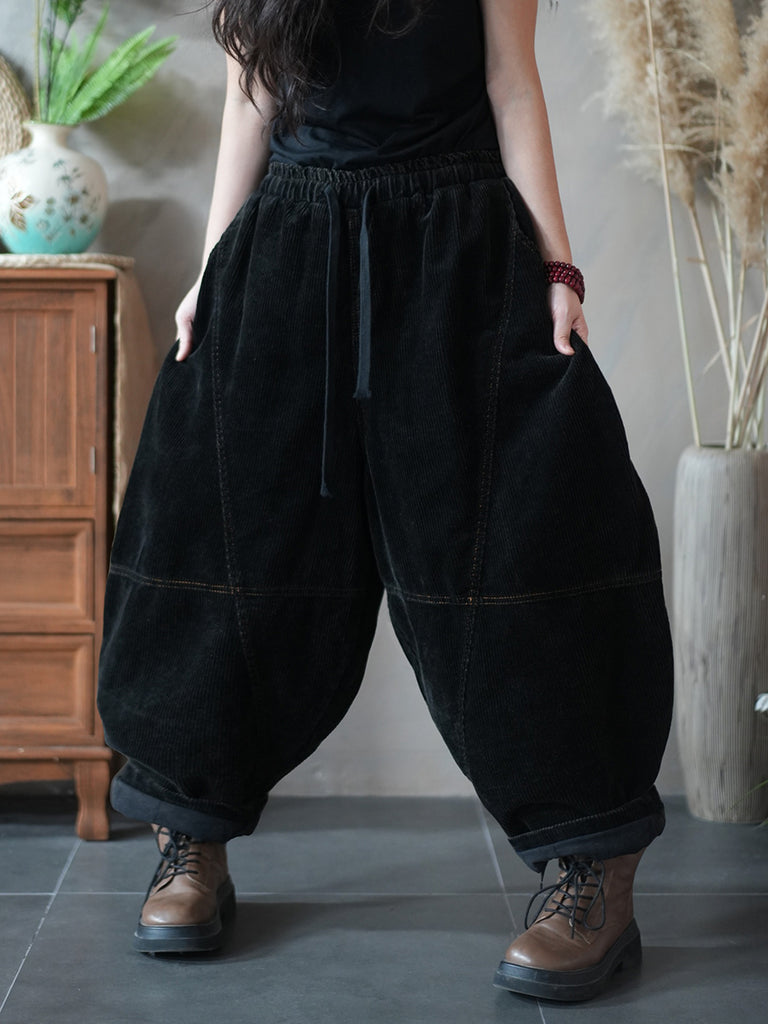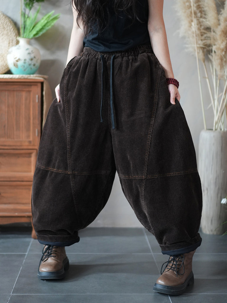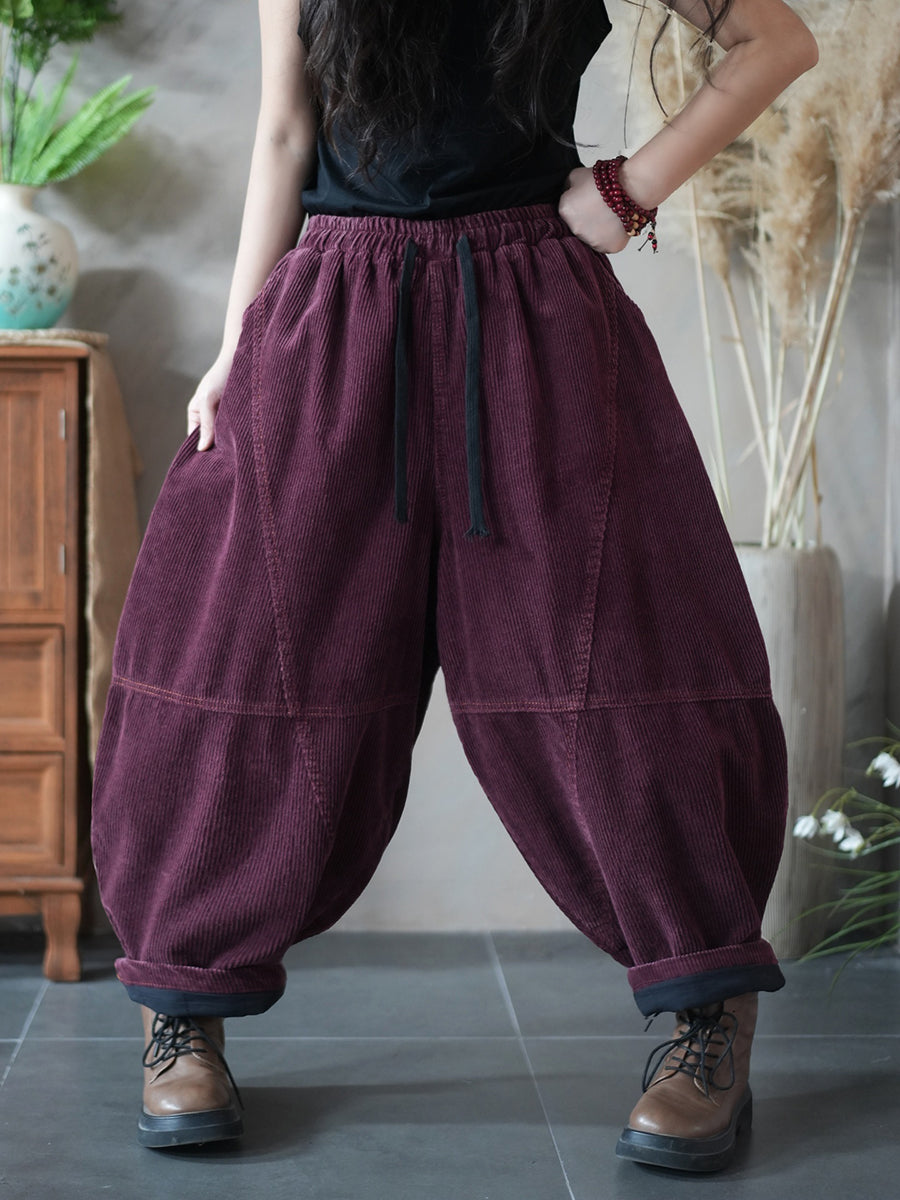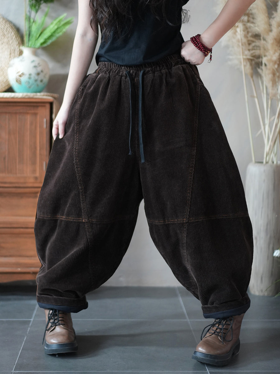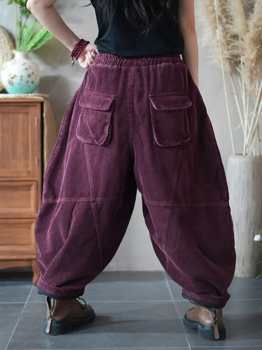 レディース 冬用 レトロ ピュアカラー コーデュロイ パッド入り ブルマー