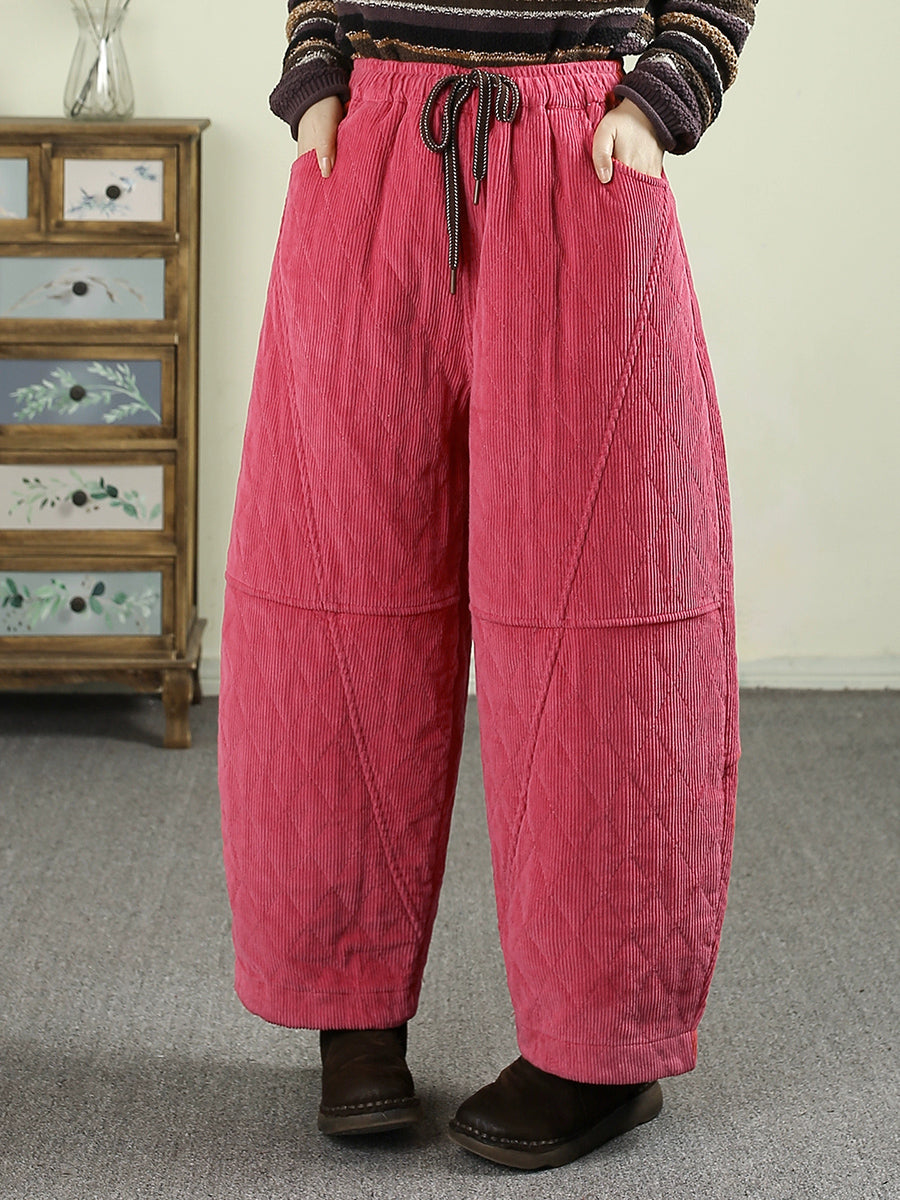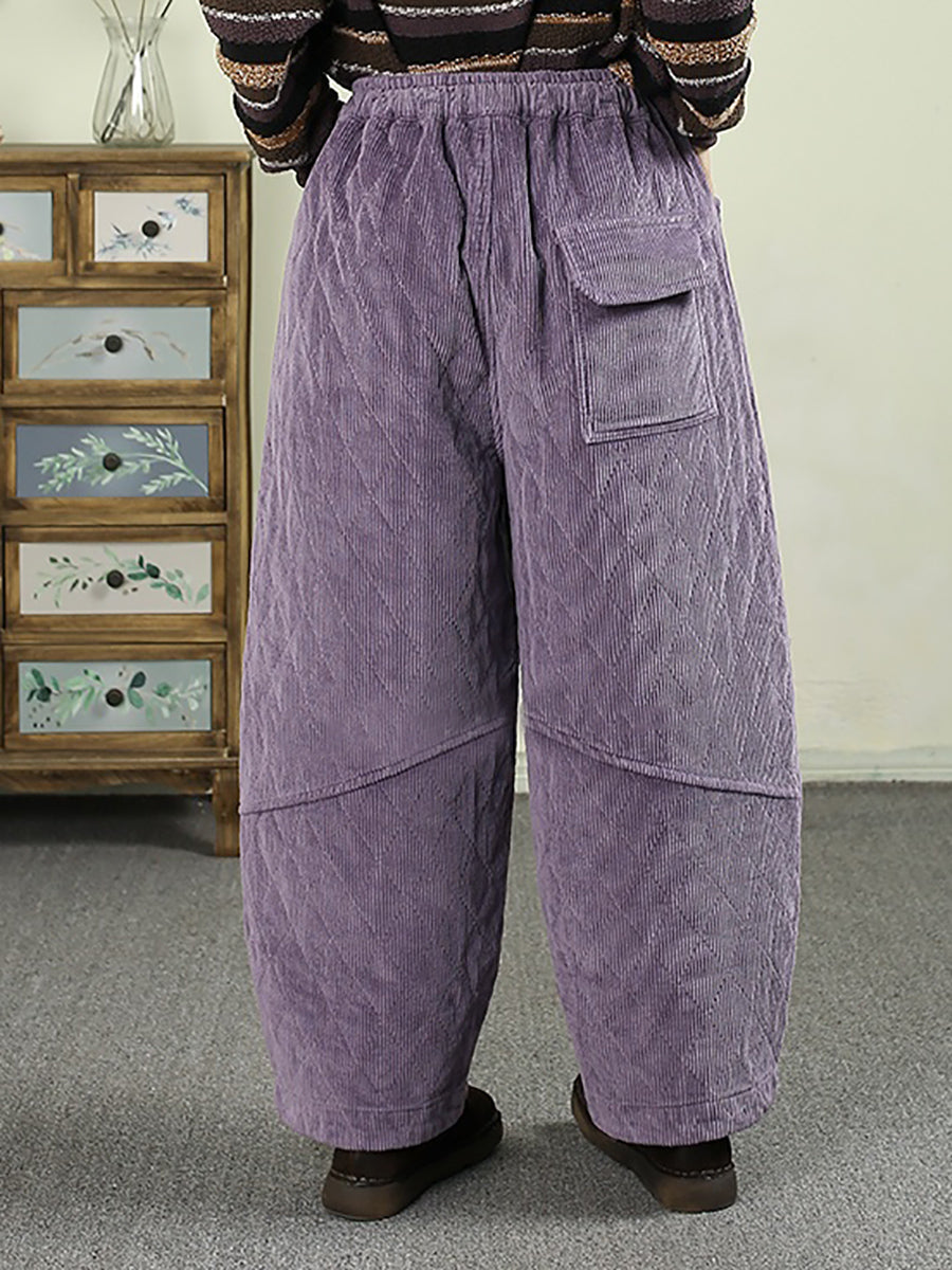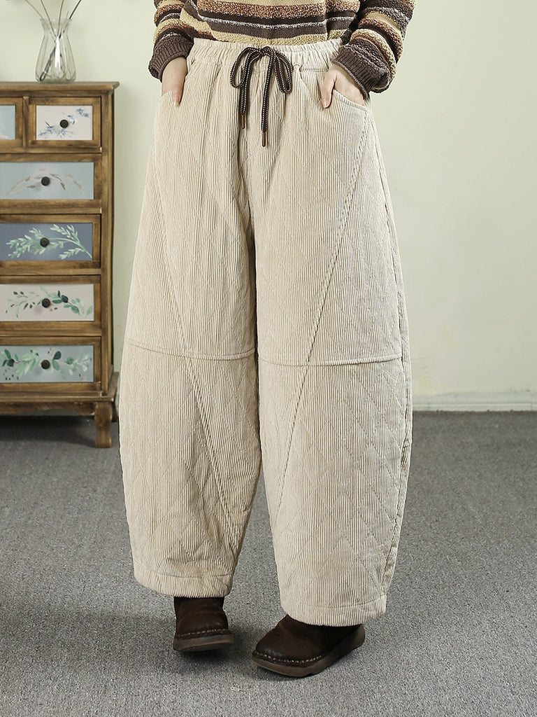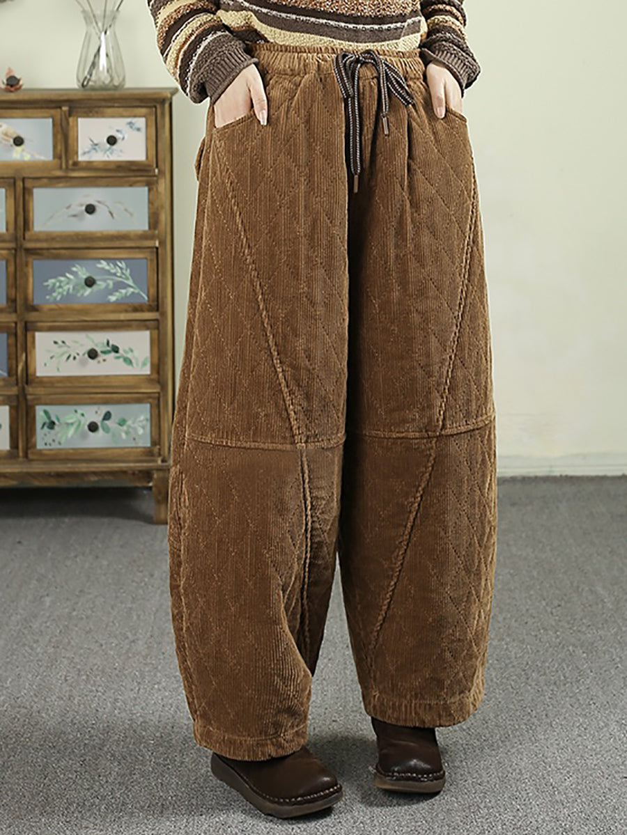レディース 冬 レトロ ピュアカラー コーデュロイ パッド入り ハーレムパンツ