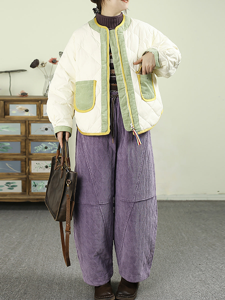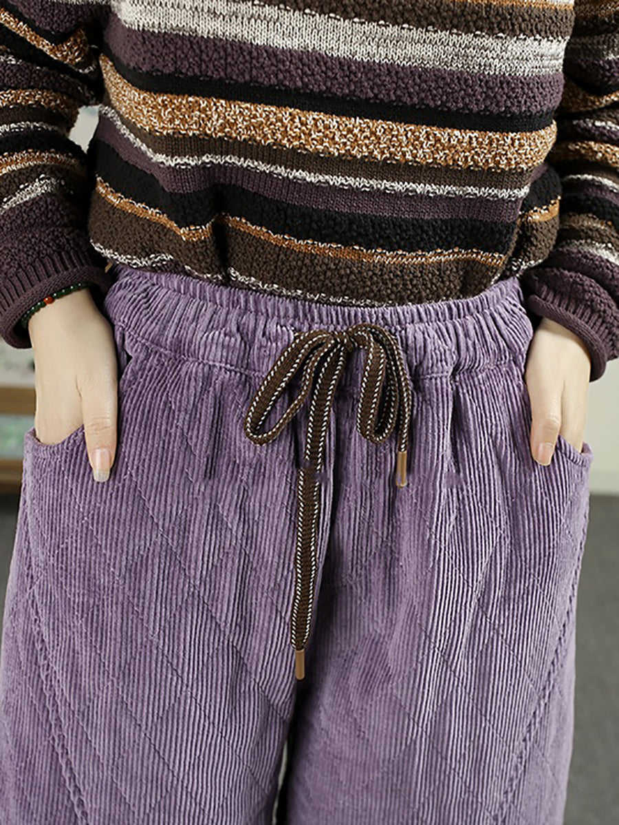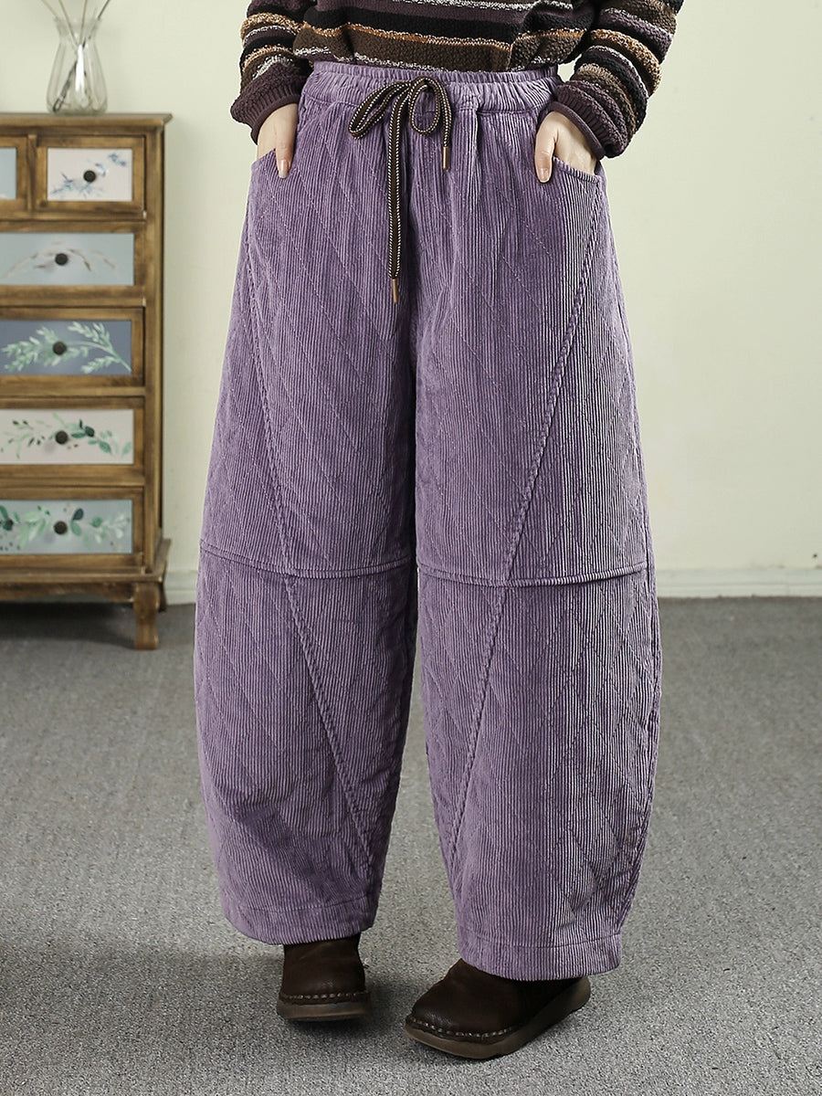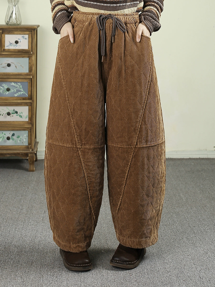 レディース 冬 レトロ ピュアカラー コーデュロイ パッド入り ハーレムパンツ